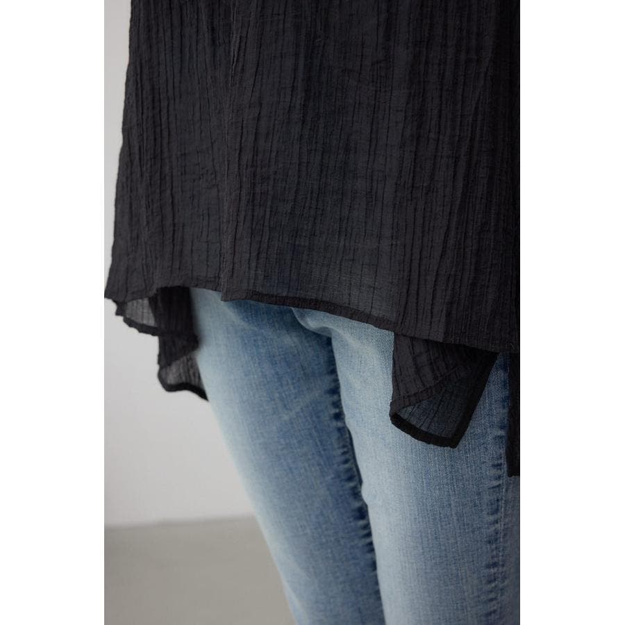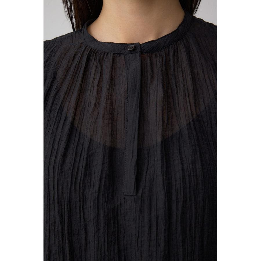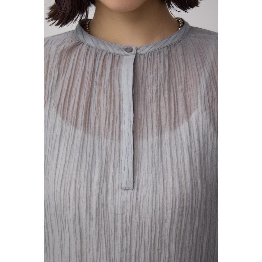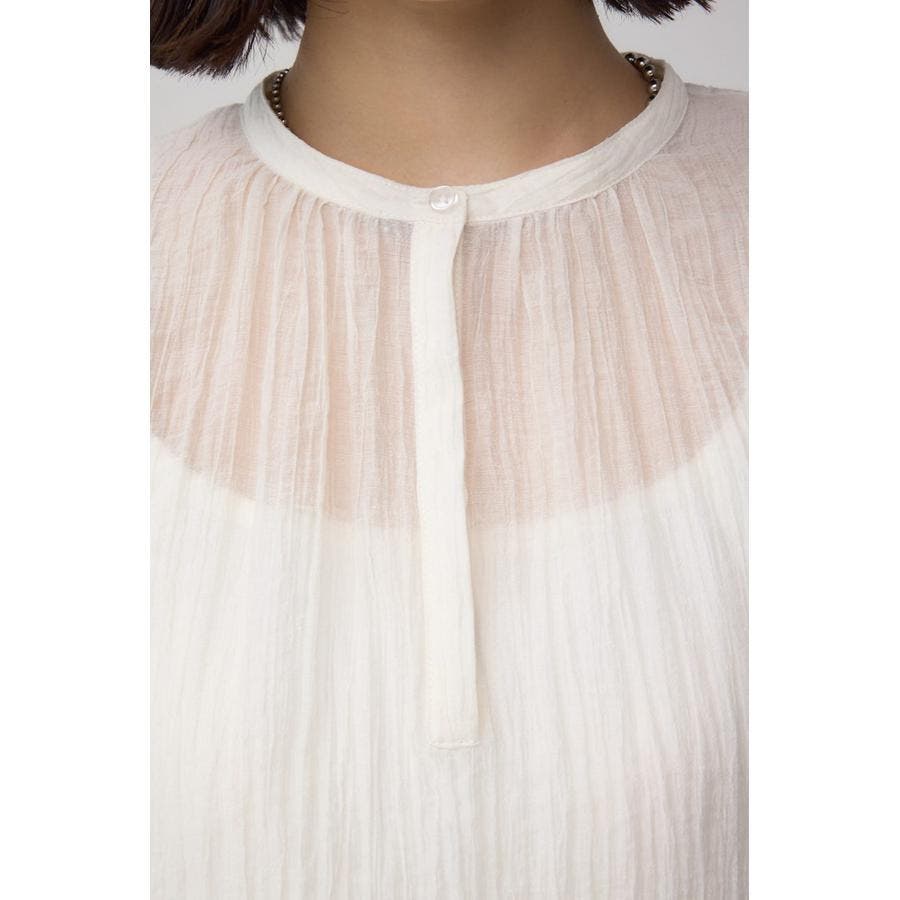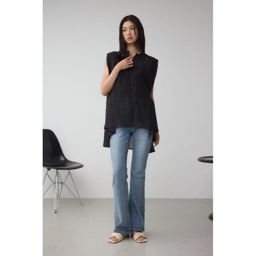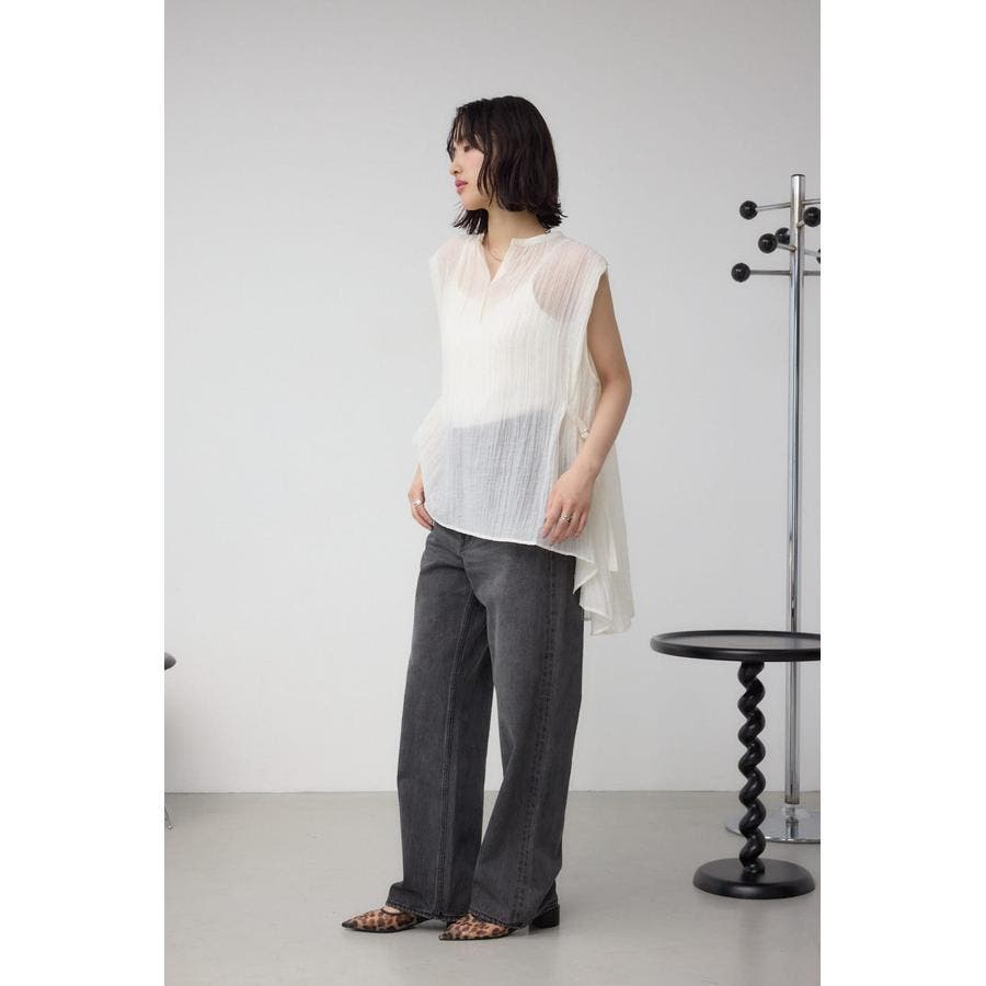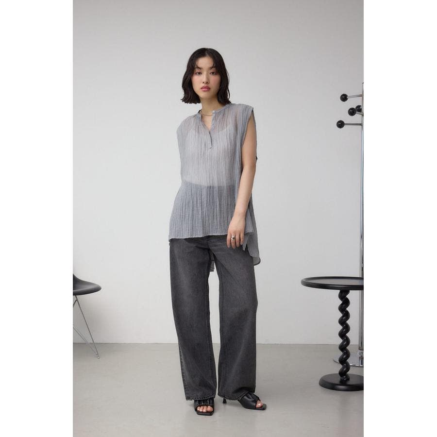 シアー感が少しある接触冷感機能素材を使用したノースリーブブラウス。