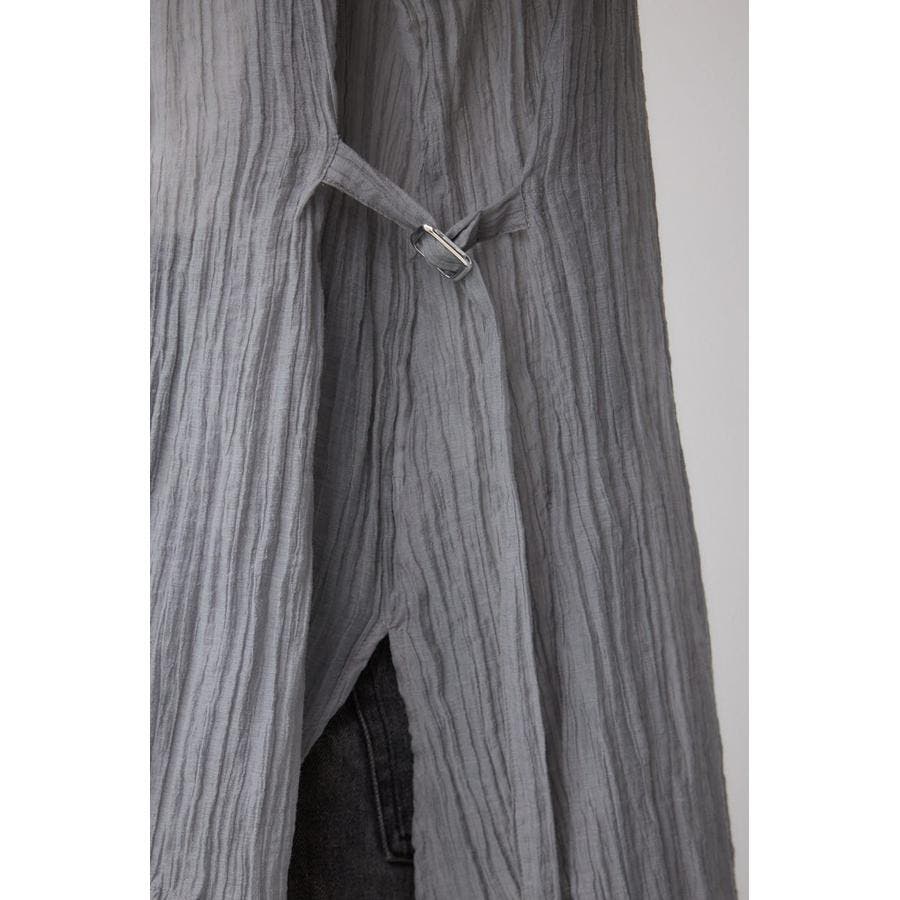 襟のボタンをあけて着用するとすっきりした印象になります。
