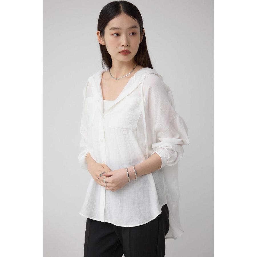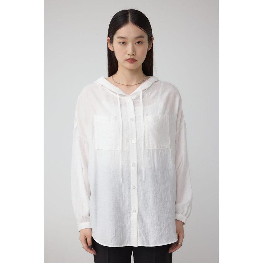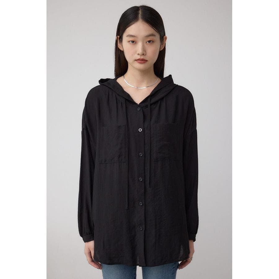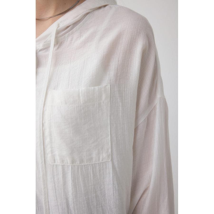 1枚着でも羽織としても使用できるフード付きシャツ。