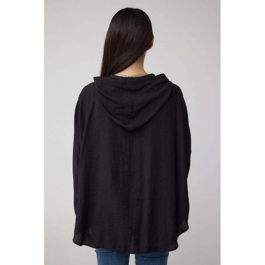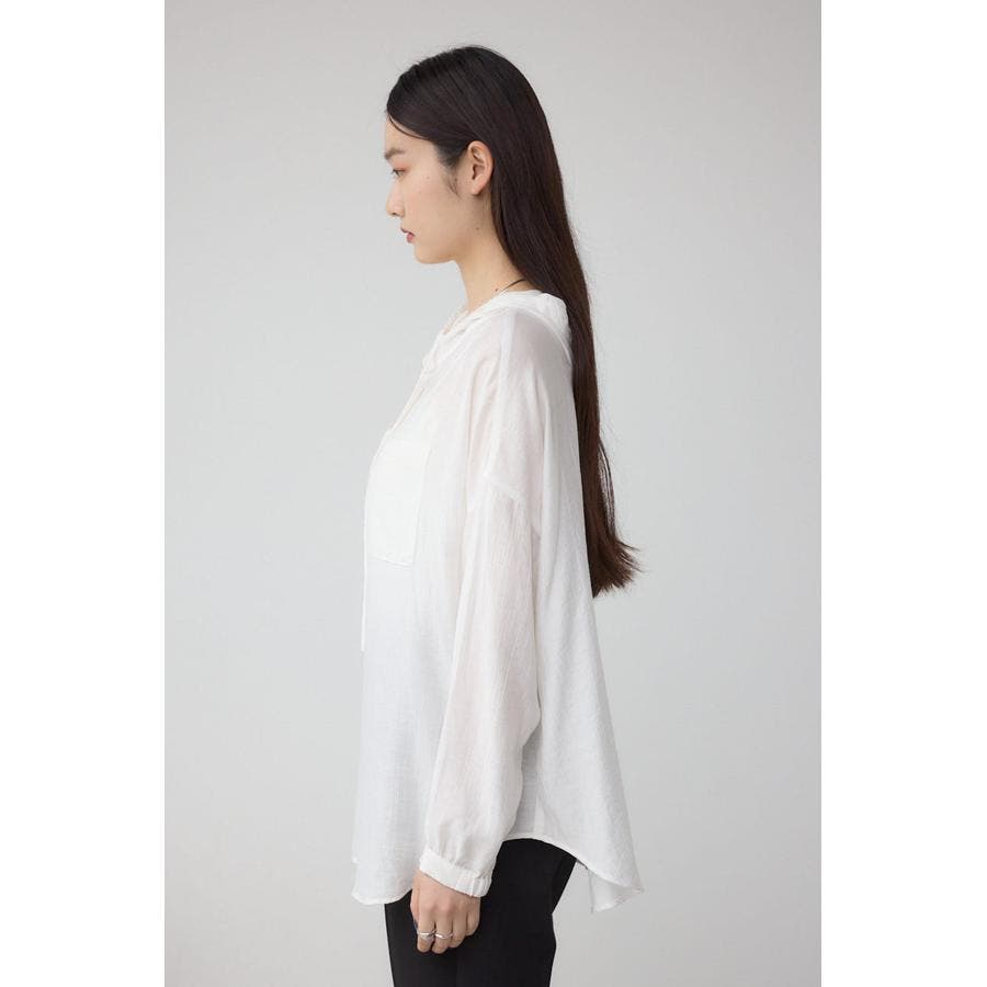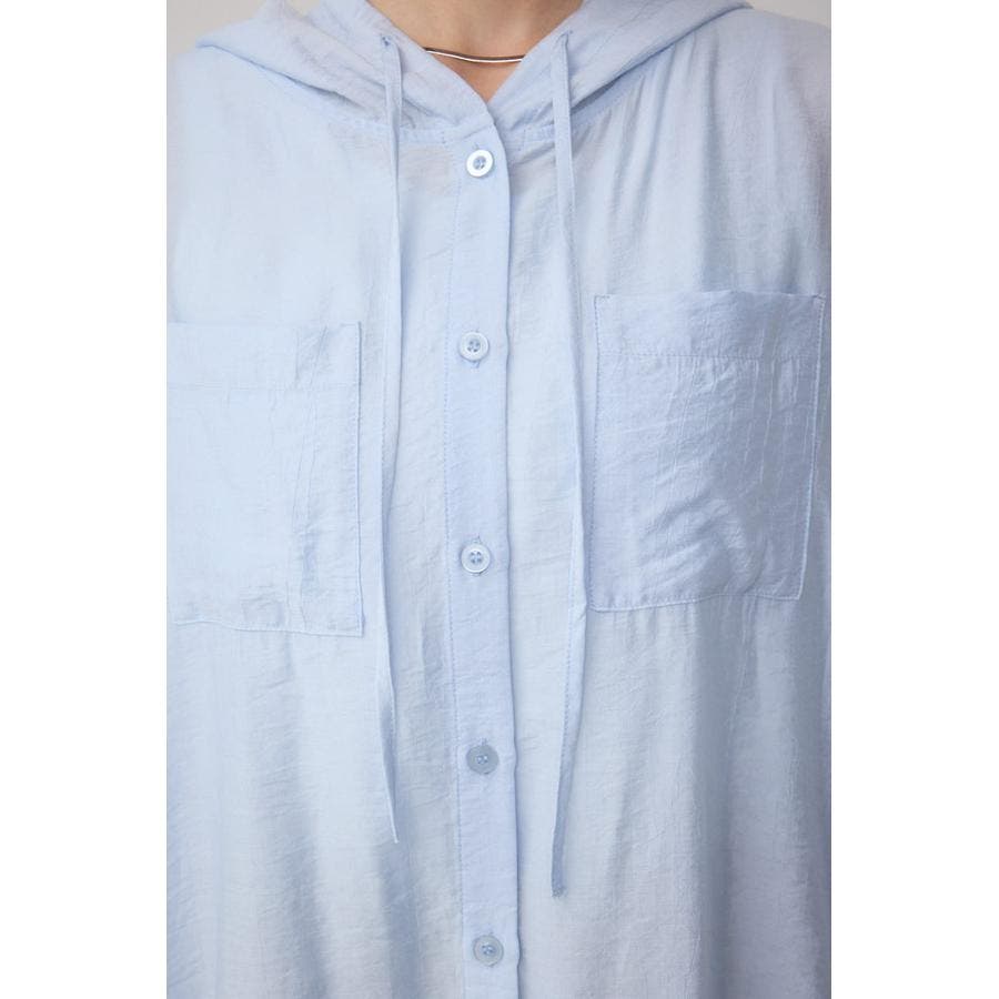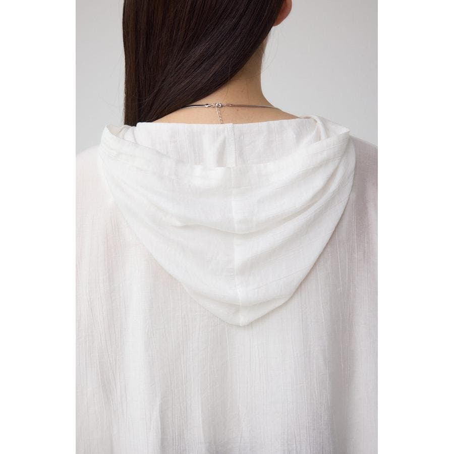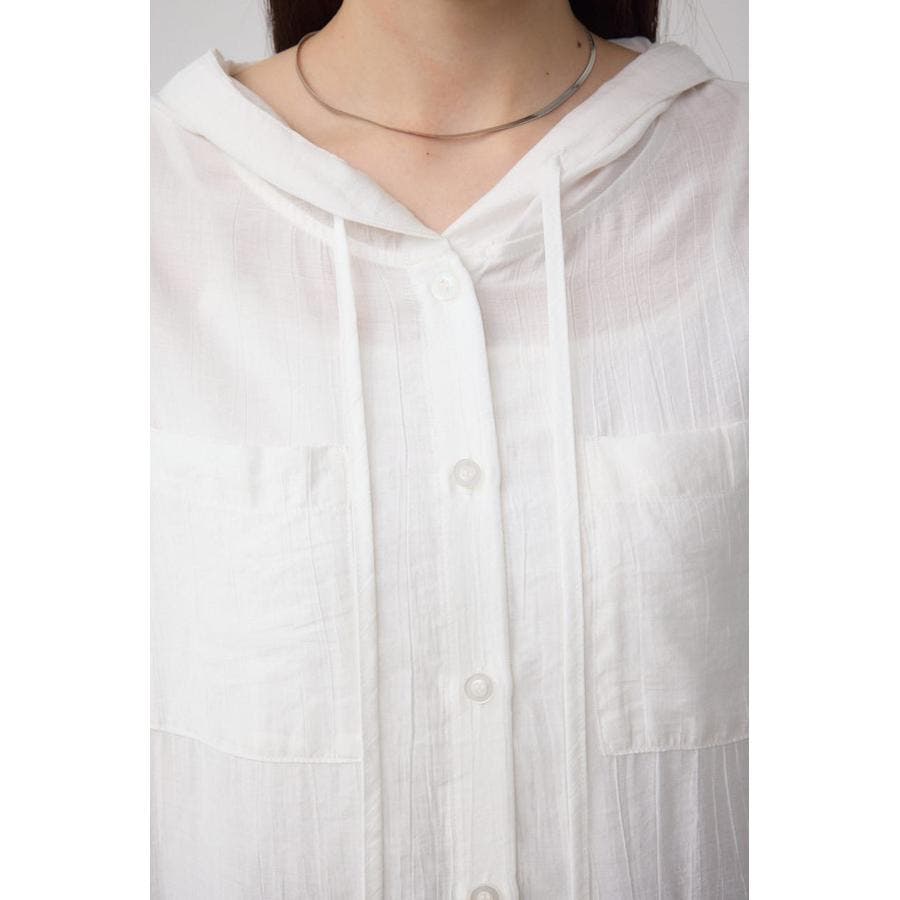 1枚着でも羽織としても使用できるフード付きシャツ。