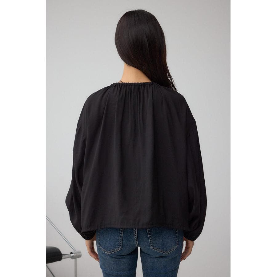 シンプルなデザインですが、ネック周りのギャザーやスピンドルがアクセントに。