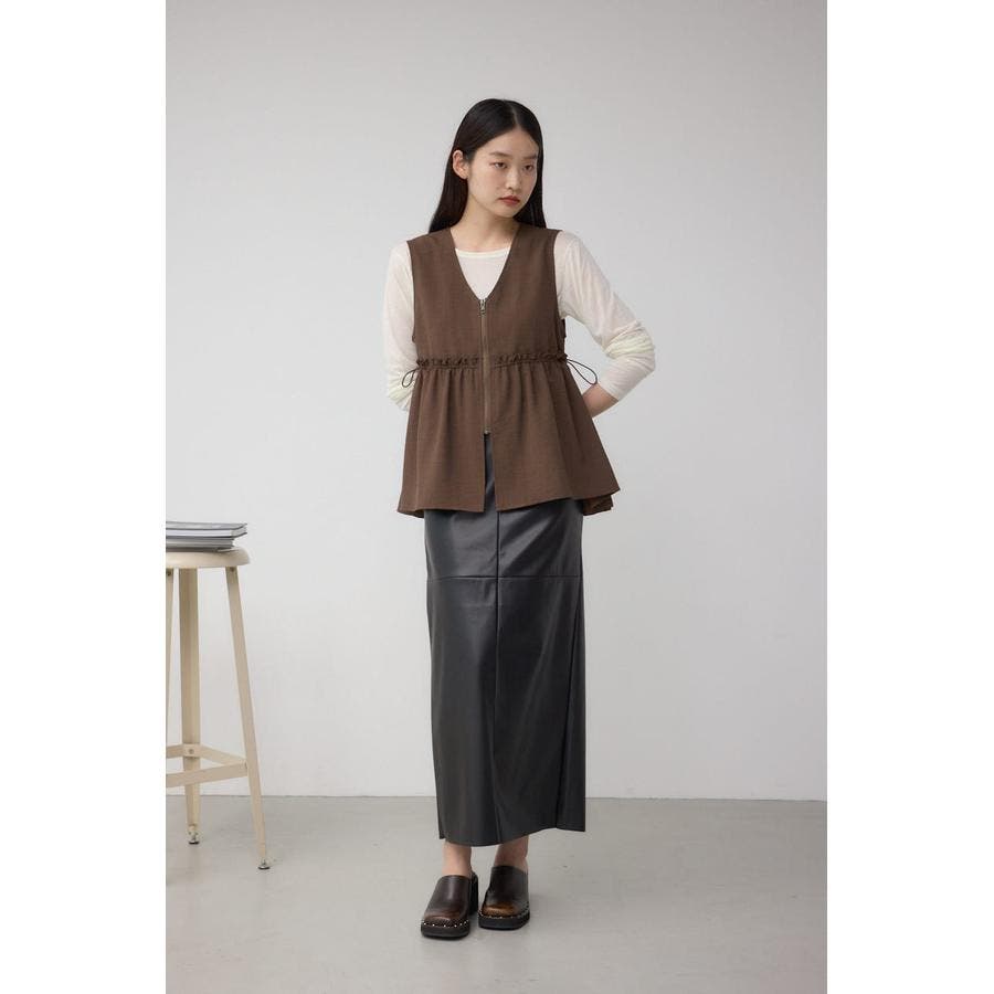 同素材のパンツ(250IAB31-2971 ウエストイージーワイドパンツ)とのセットアップがおすすめです。