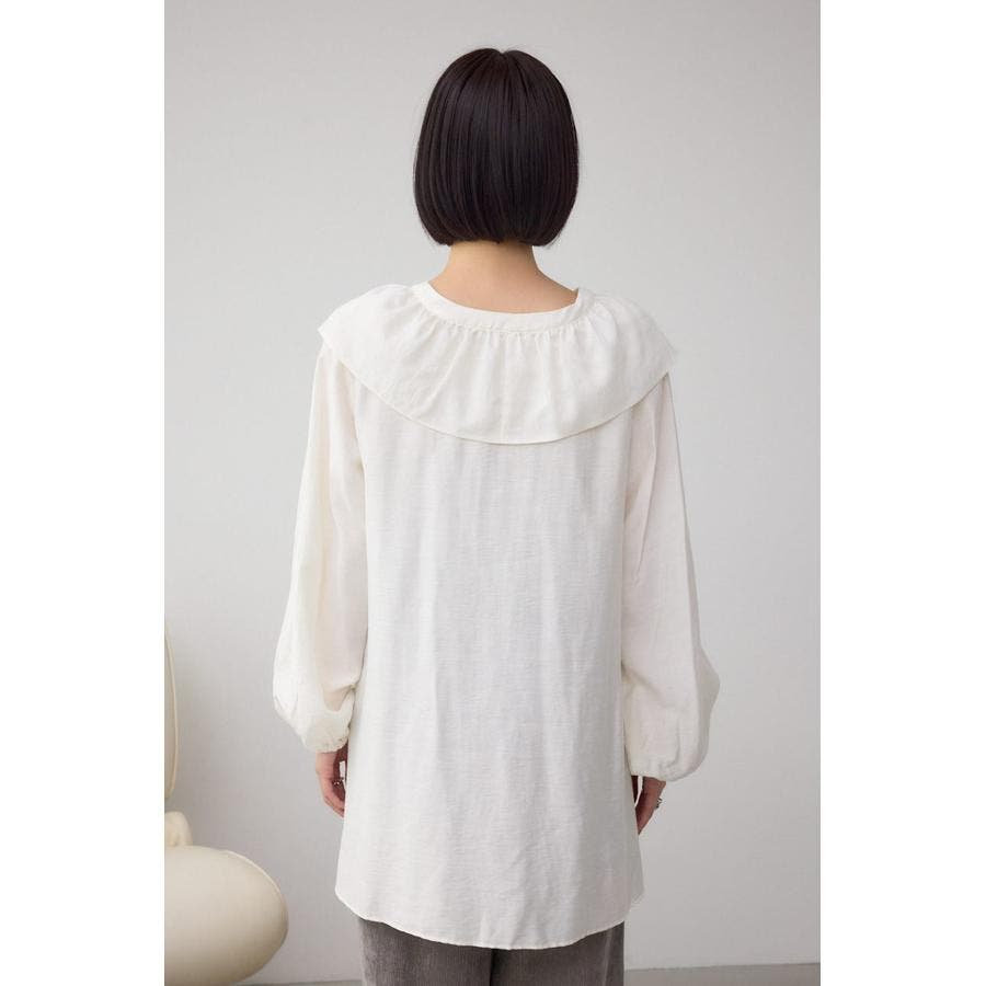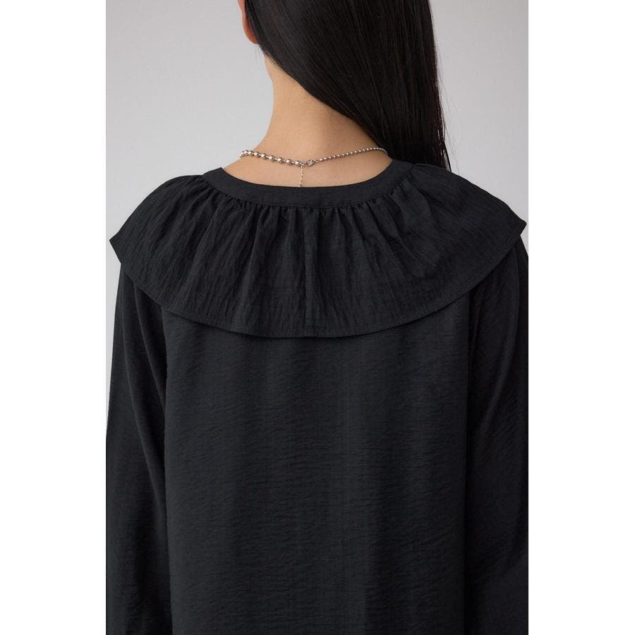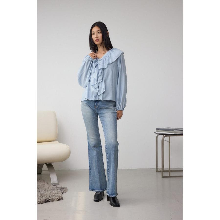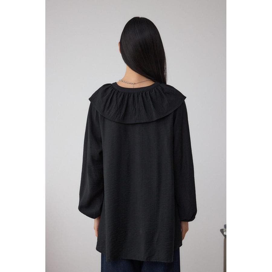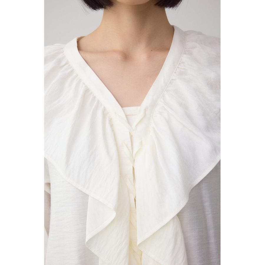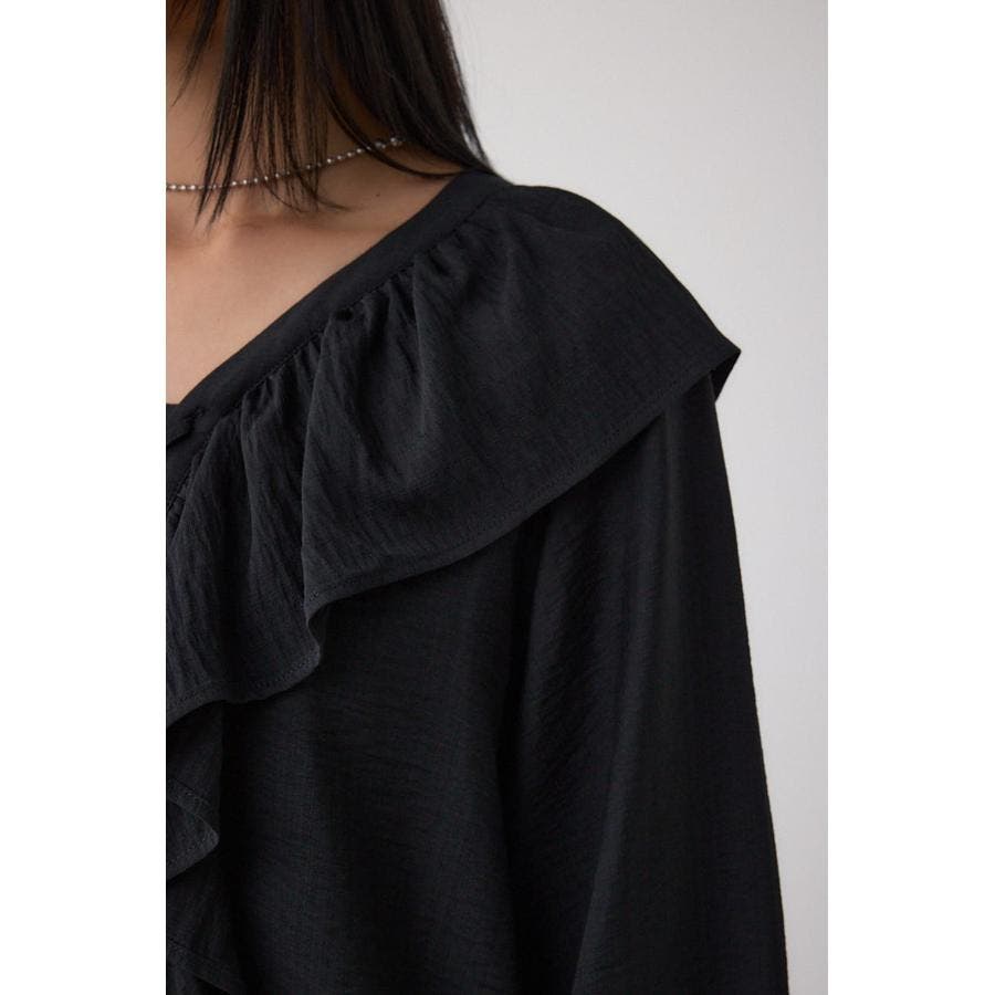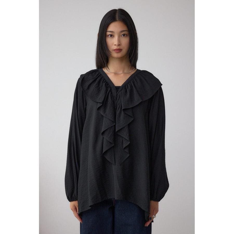 大き目のフリルディテールで、女性らしさを引き立てるラッフルブラウス。