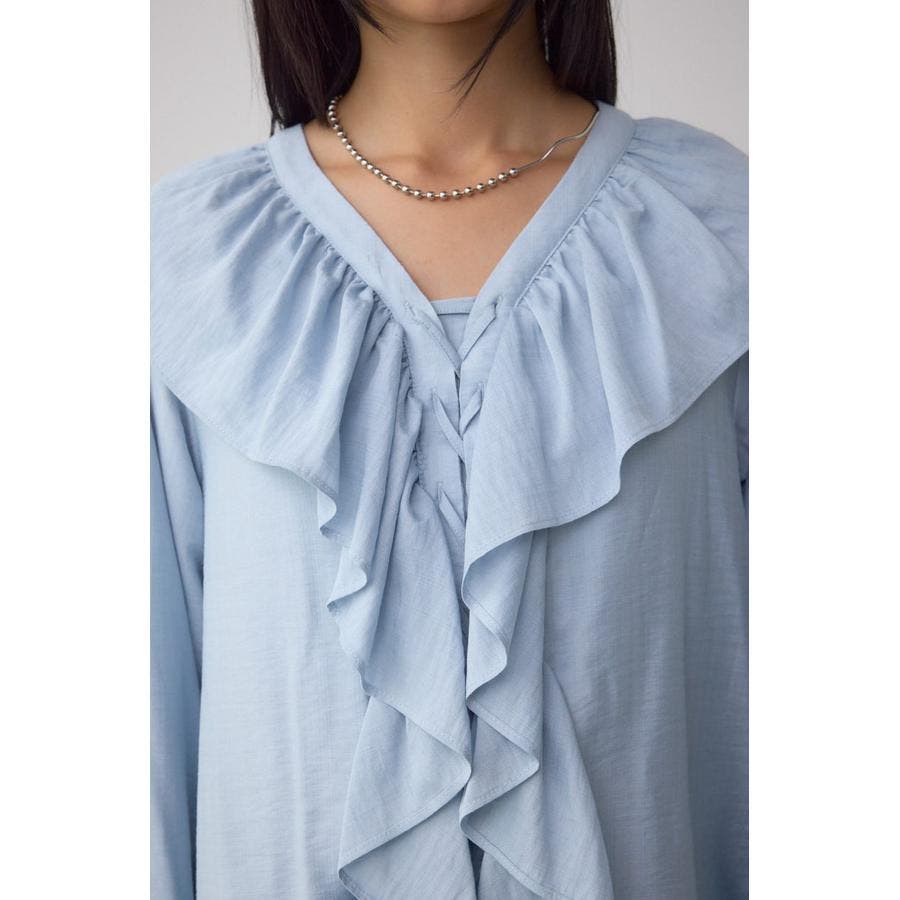 レースアップラッフルブラウス