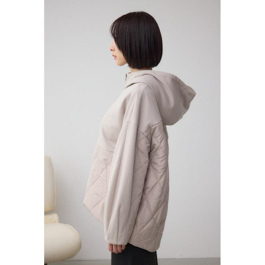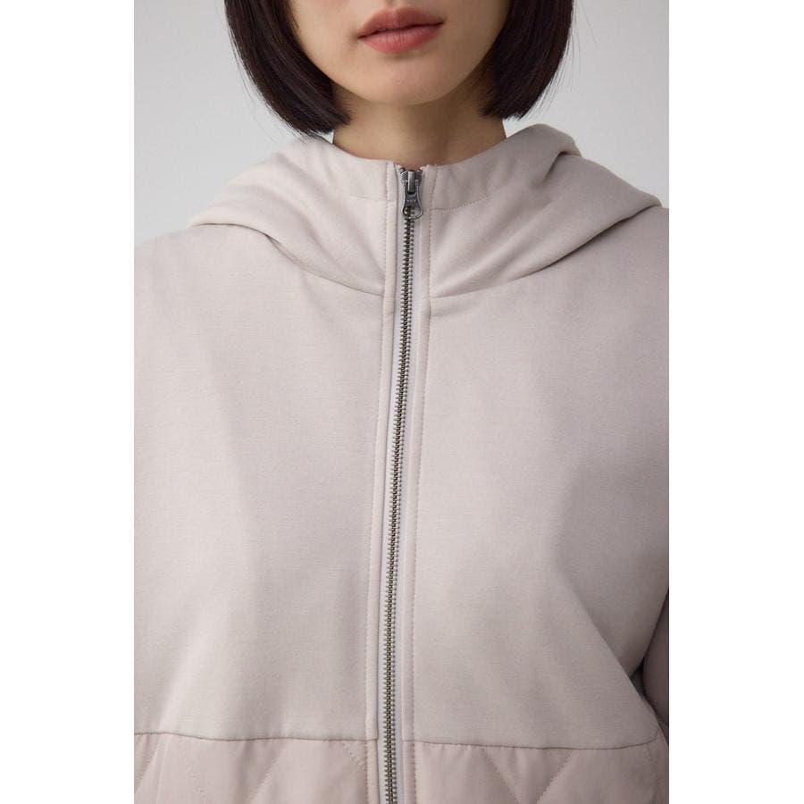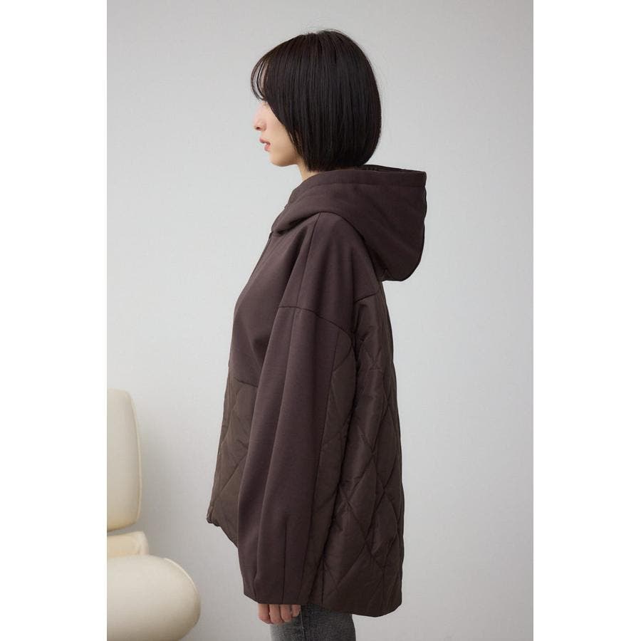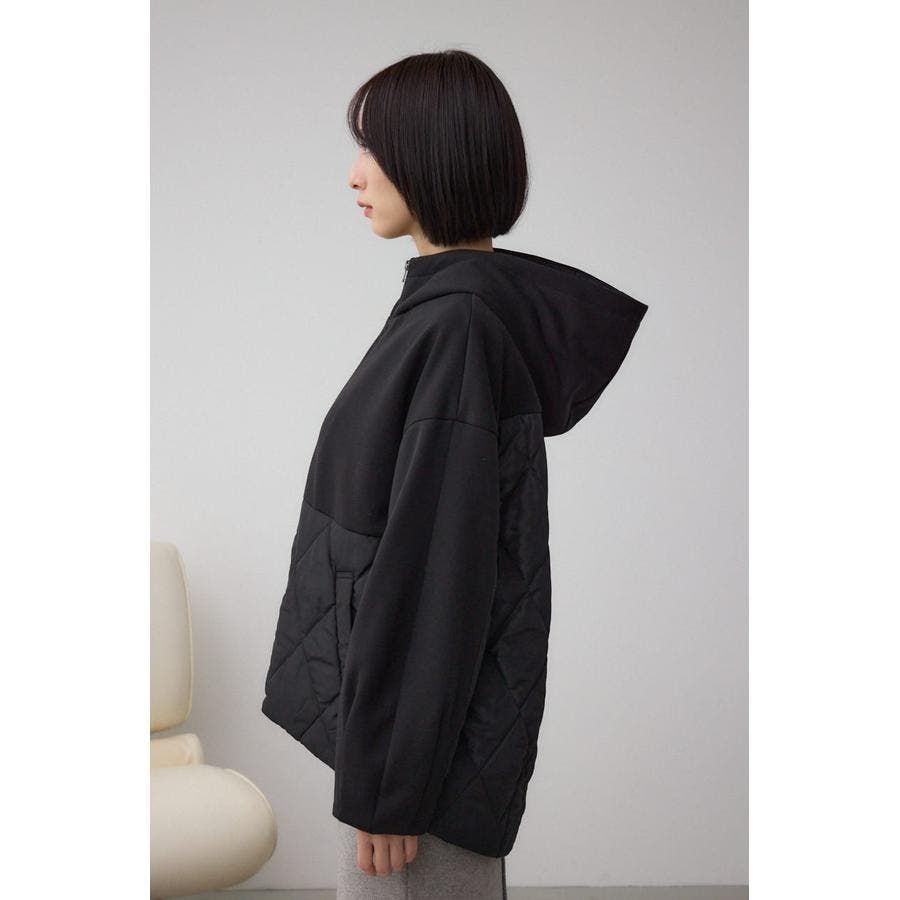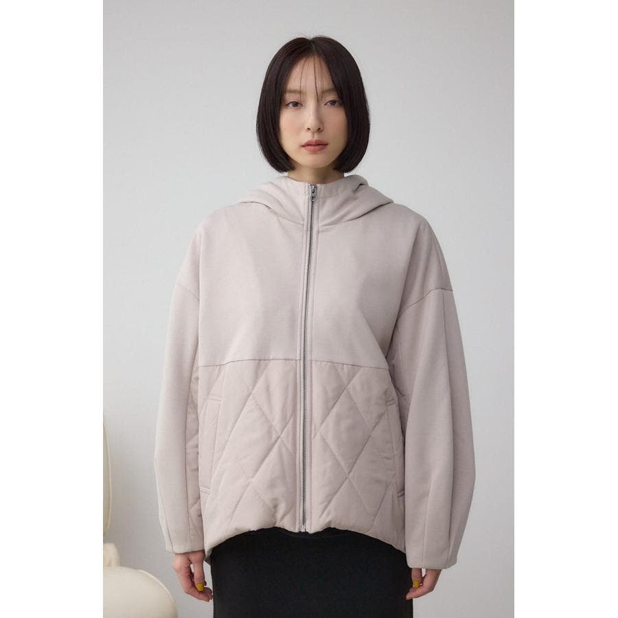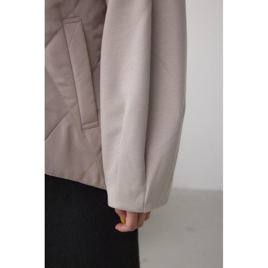 上身頃は滑らかなポンチ生地、下身頃はキルティング切替で立体感を演出。