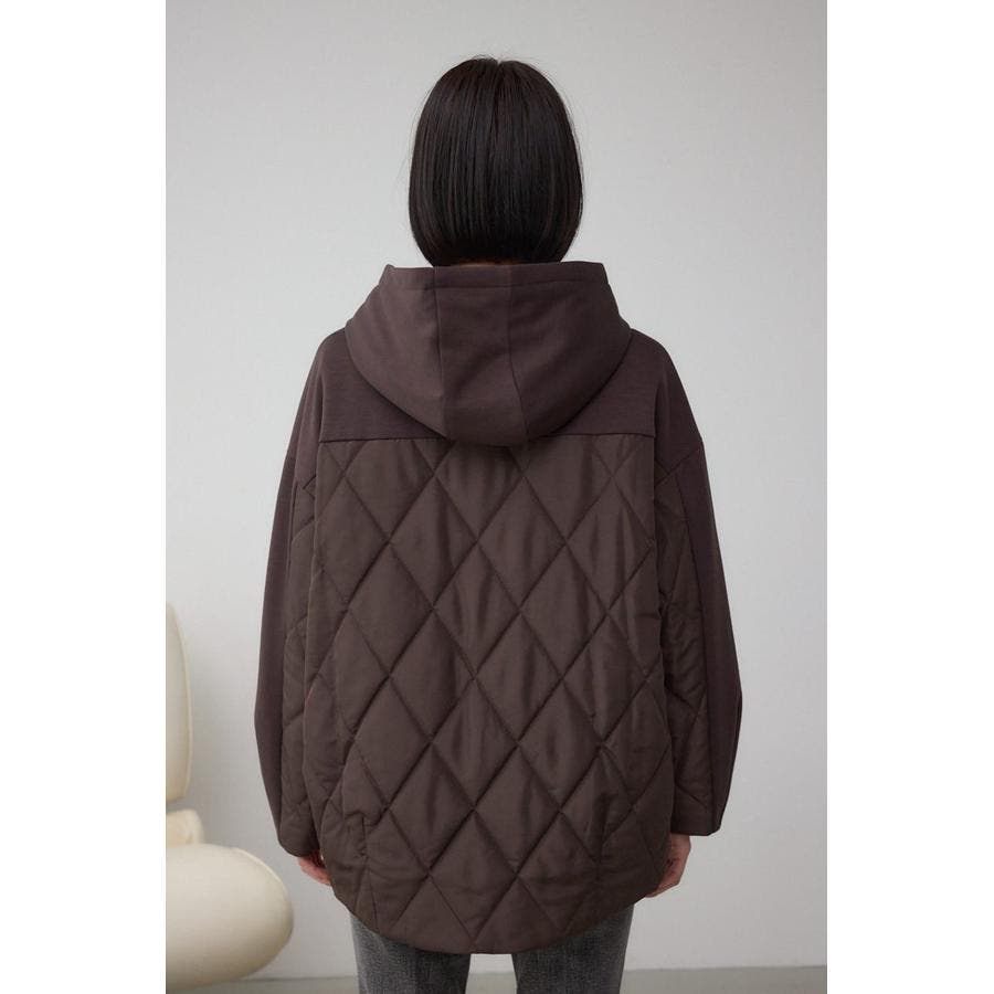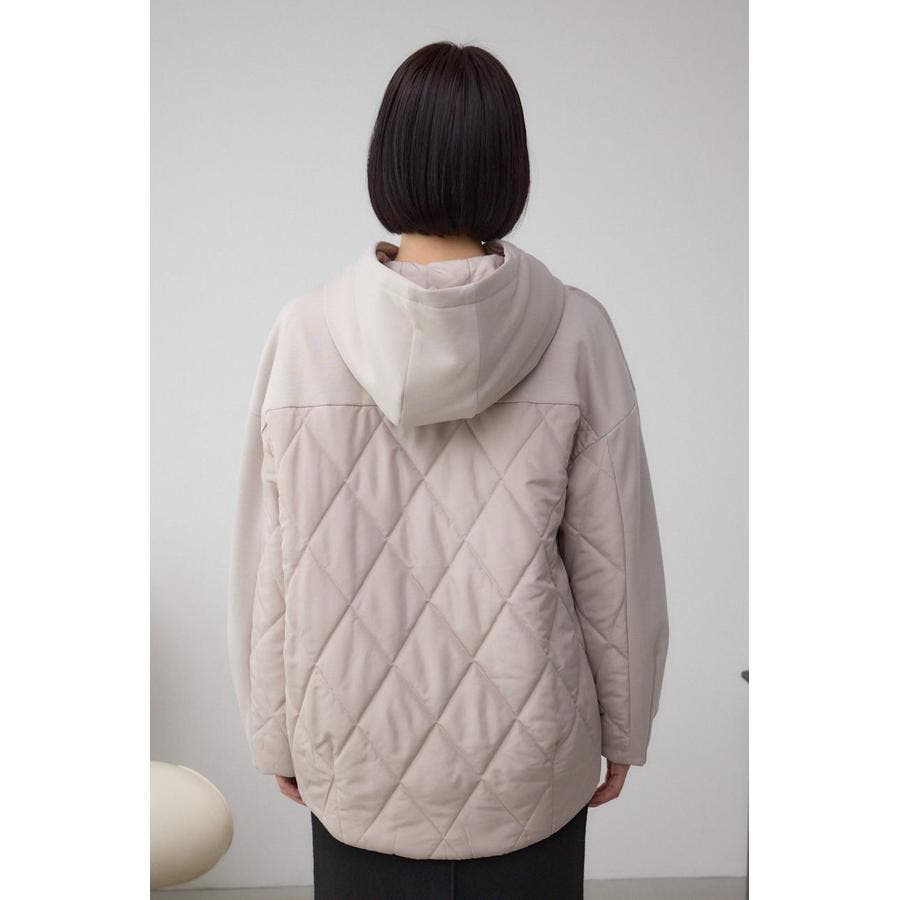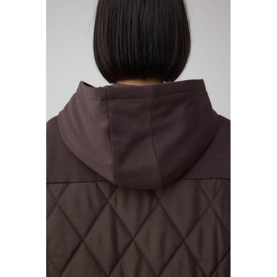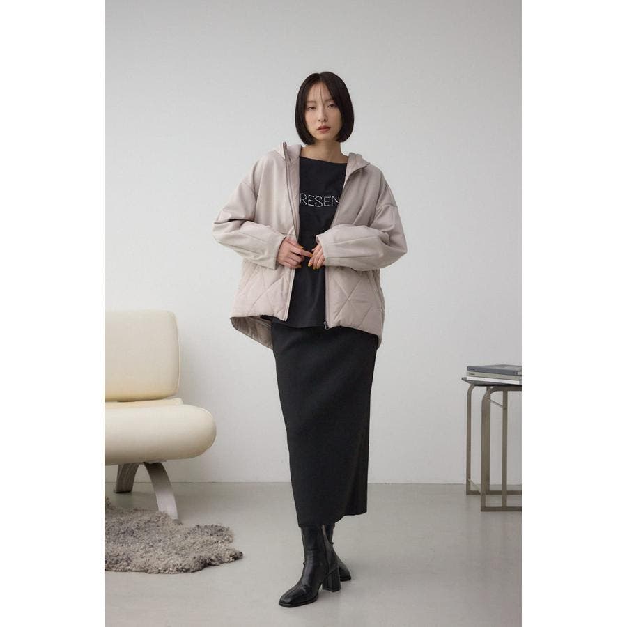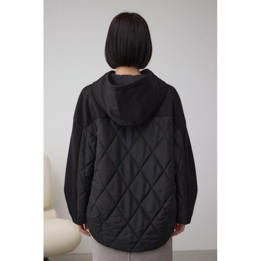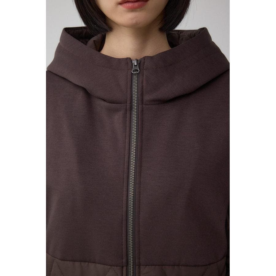 上身頃は滑らかなポンチ生地、下身頃はキルティング切替で立体感を演出。