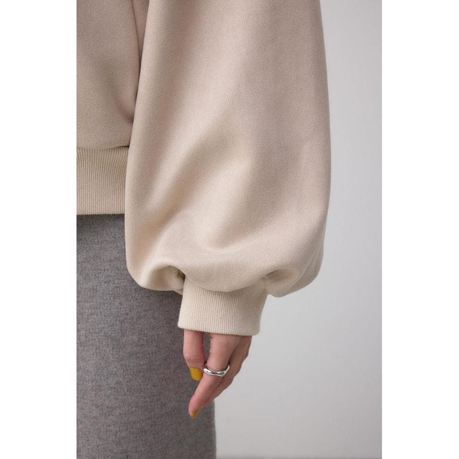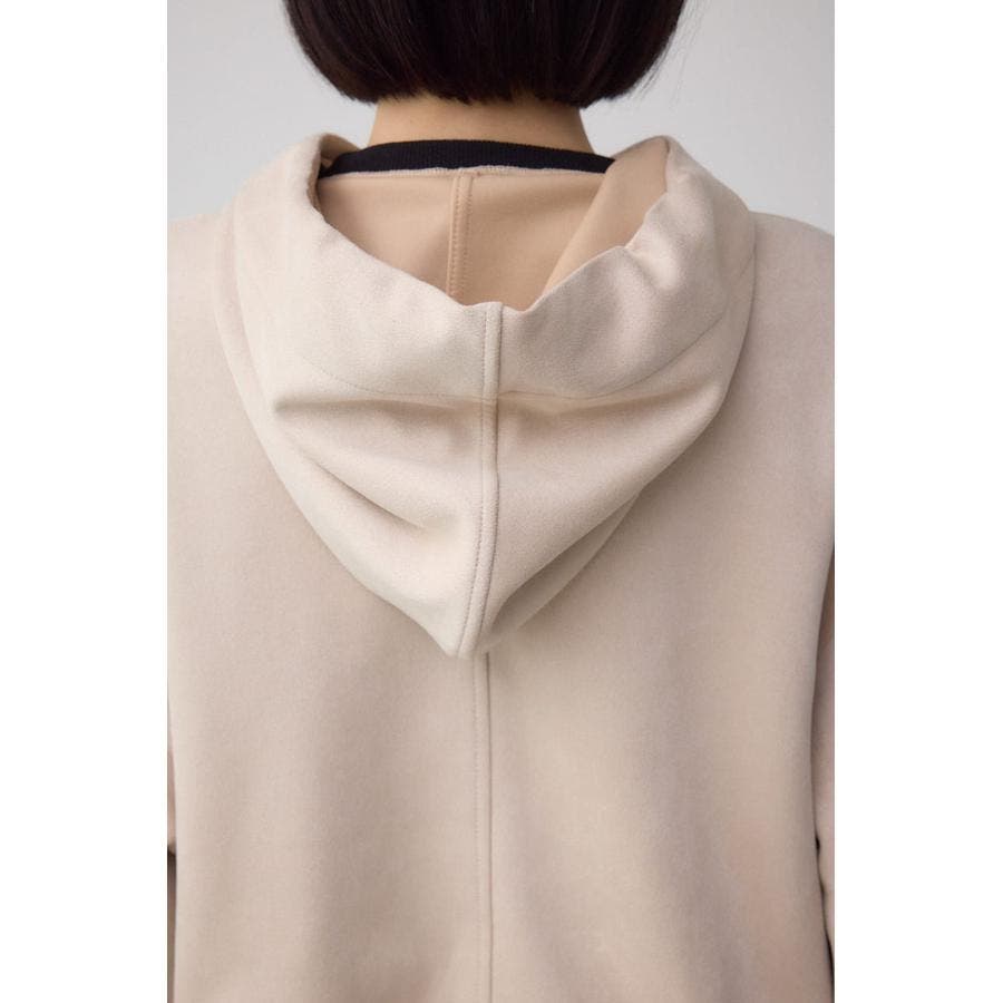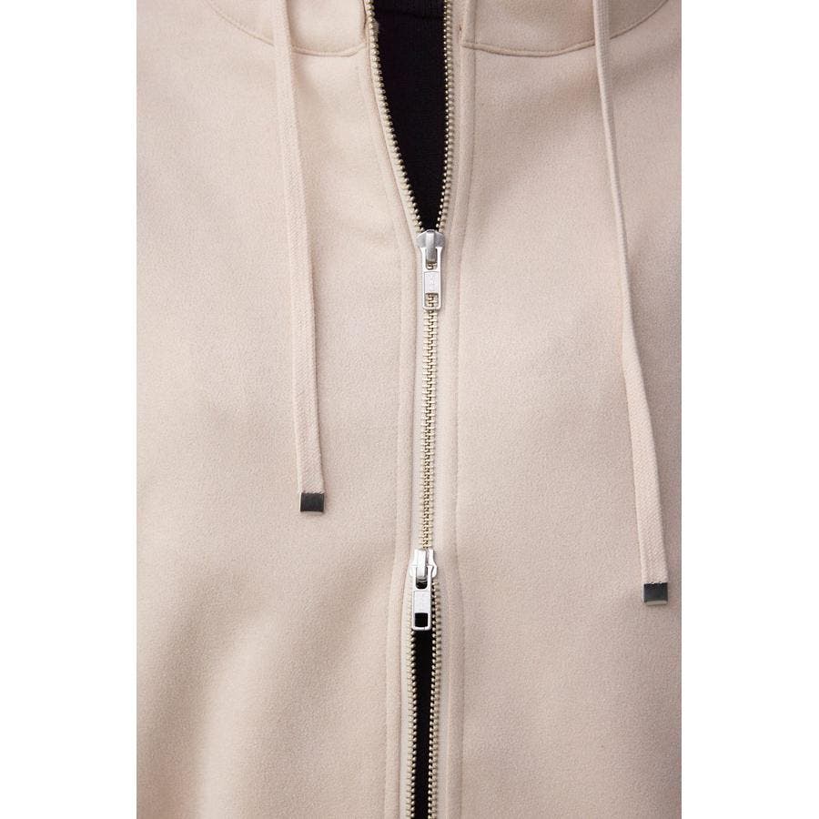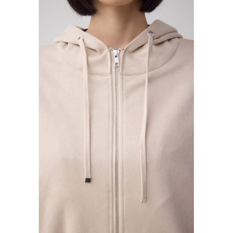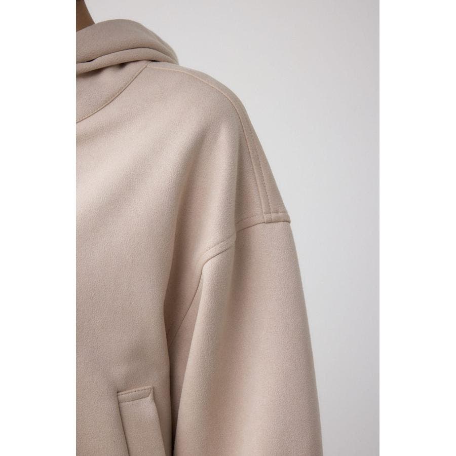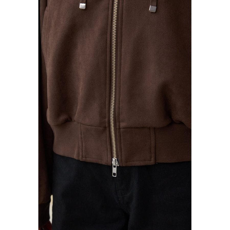 スエード素材で大人っぽさを演出するフーディーブルゾン。