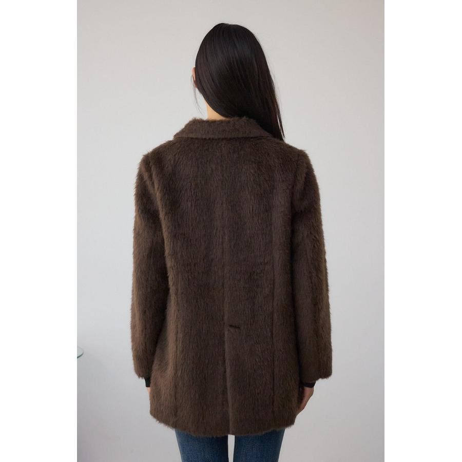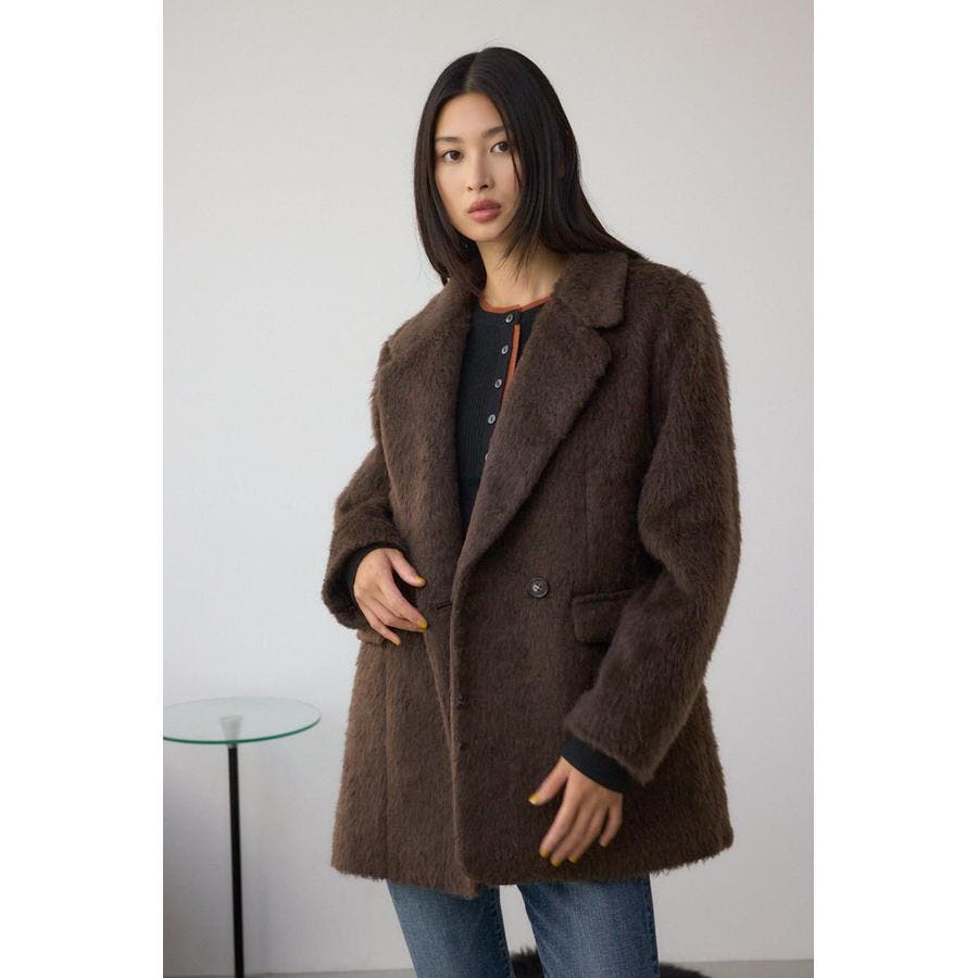 ふんわりとしたシャギー素材とジャケットライクな仕立てで、大人の抜け感と上品さを両立したコート。