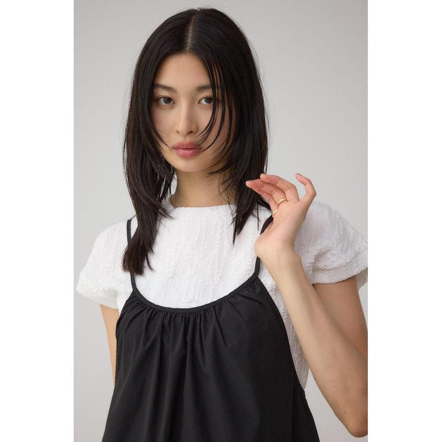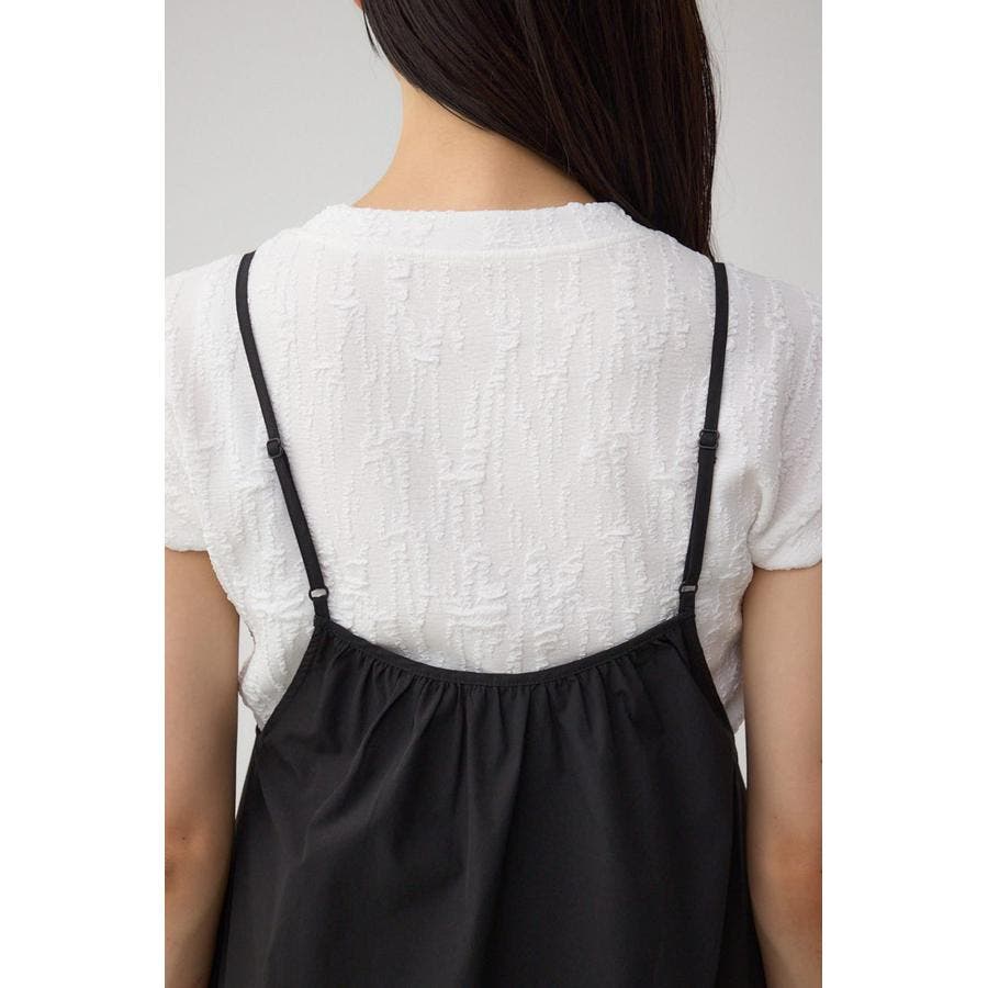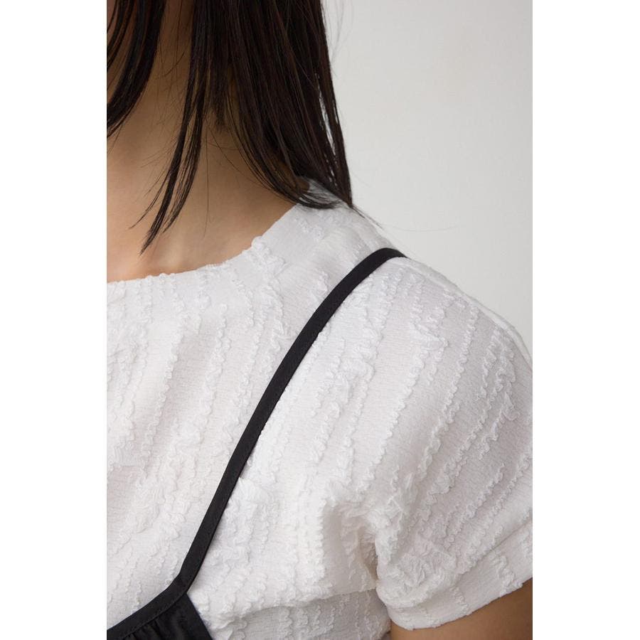 インナーは表面感がある素材を使用したフレンチスリーブカットソーになっています。