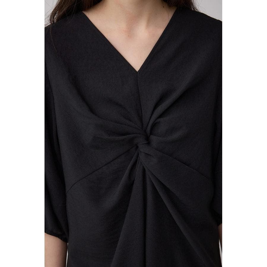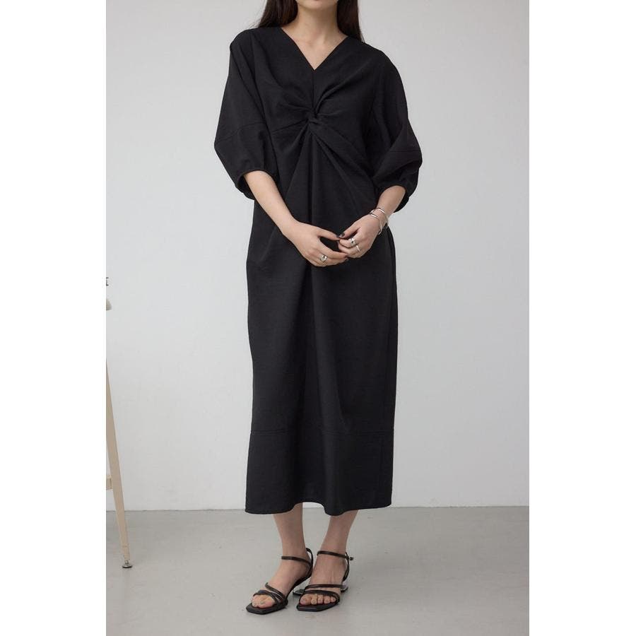 前後で異なるデザインを取り入れた1枚着用するだけでさまになるワンピース。