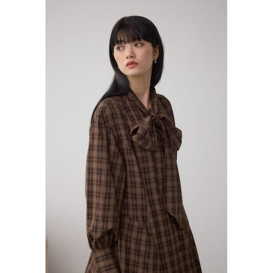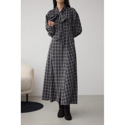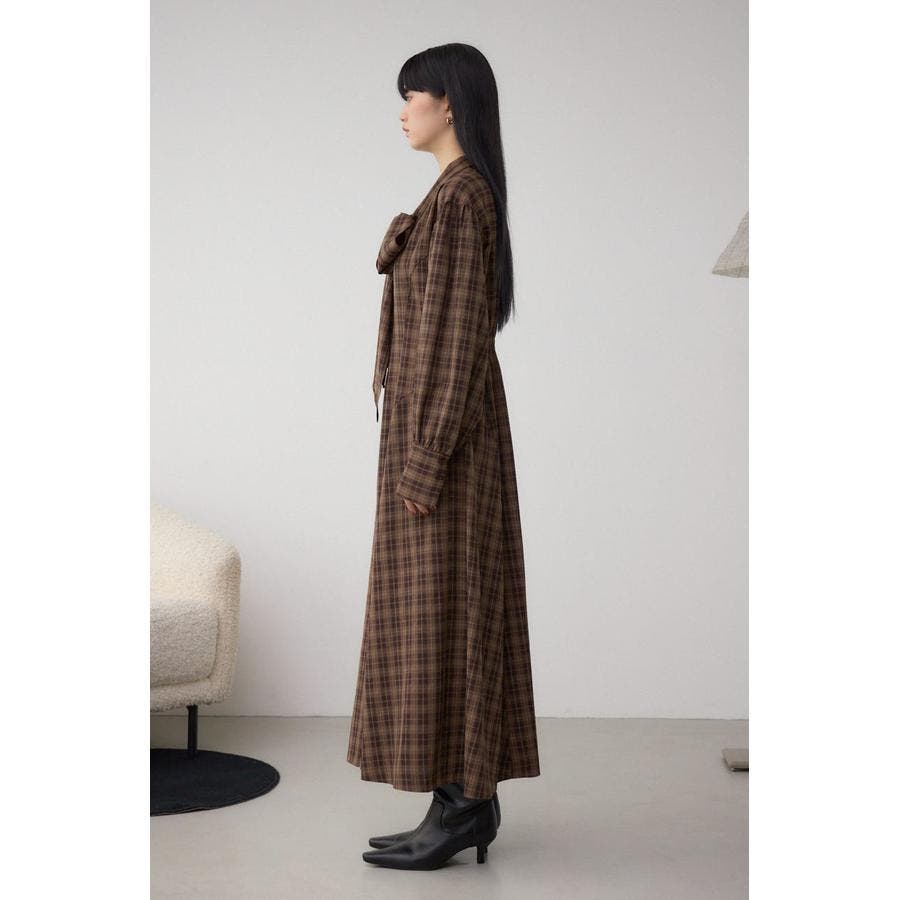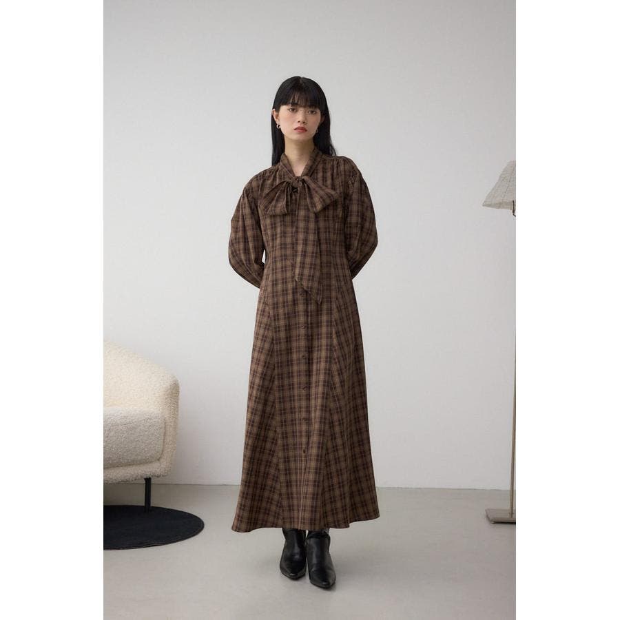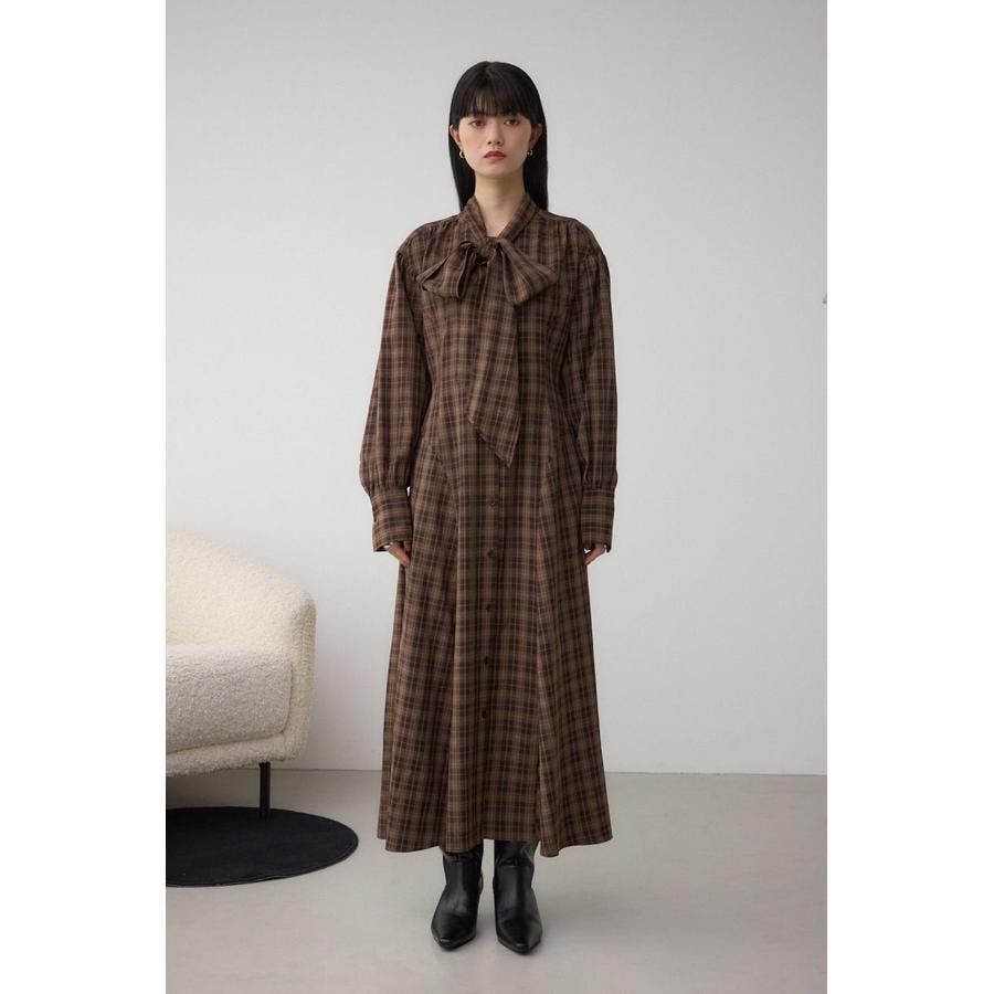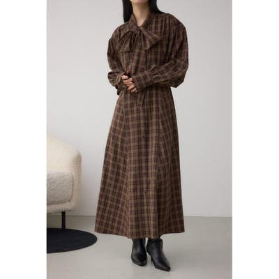 秋冬に注目のボウタイデザインのクラシカルムード漂うチェック柄ワンピース。