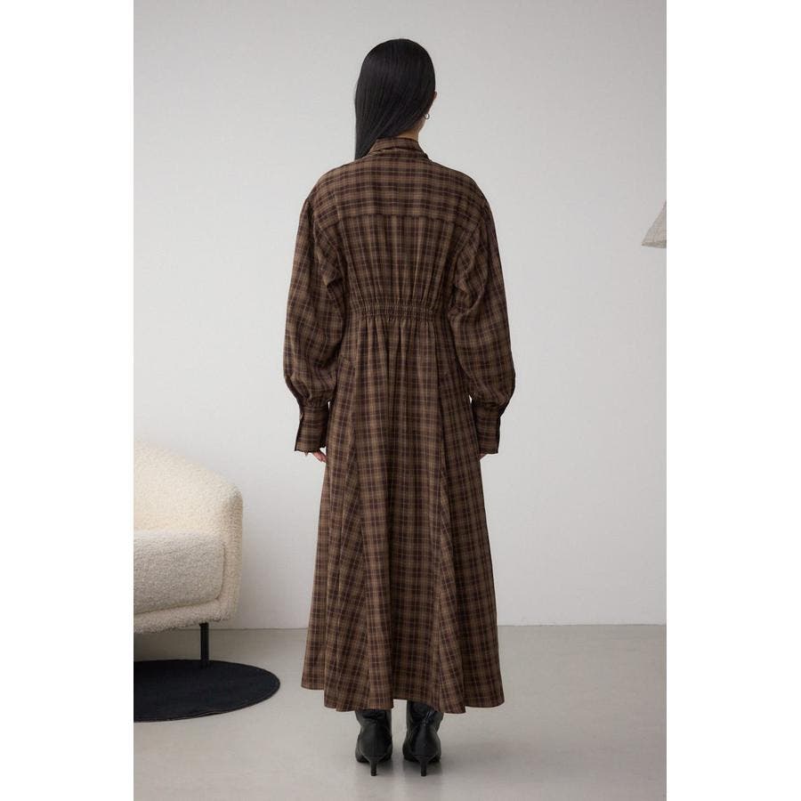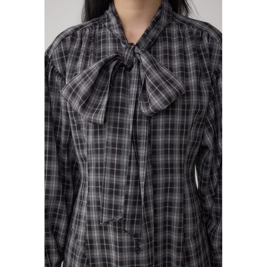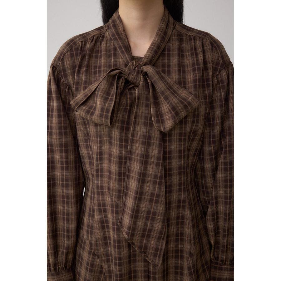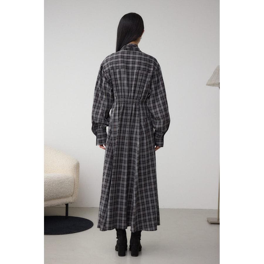 秋冬に注目のボウタイデザインのクラシカルムード漂うチェック柄ワンピース。
