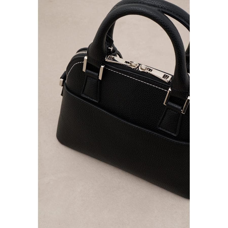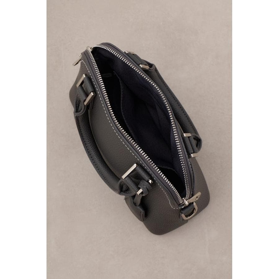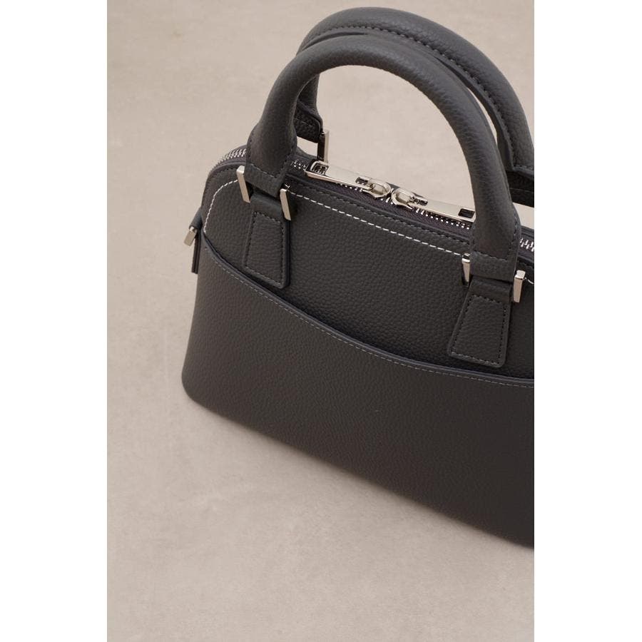 しぼ感のあるレザー調素材で高見えするハンドバッグ。