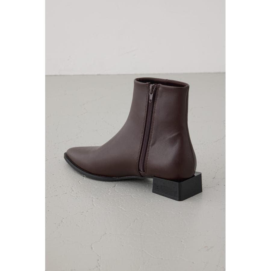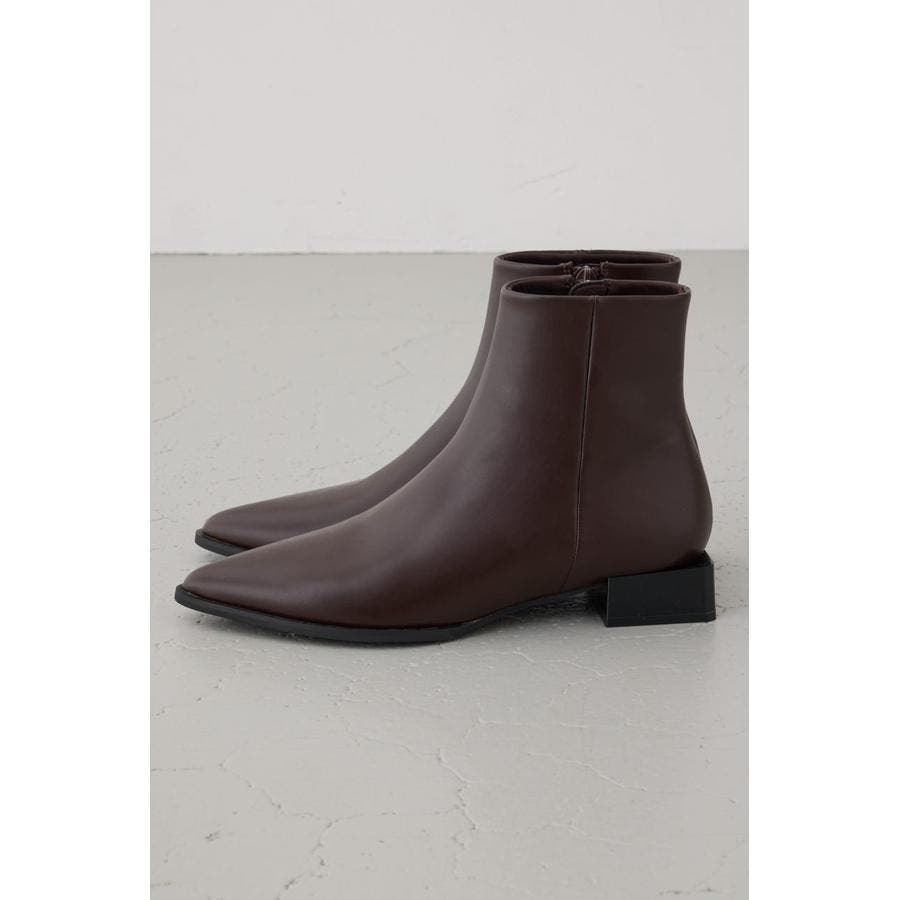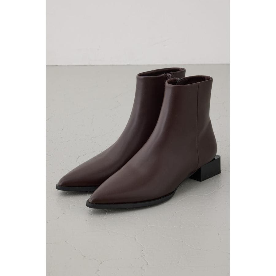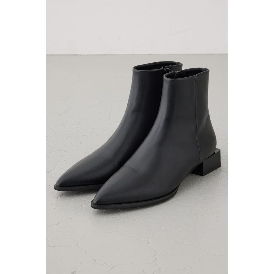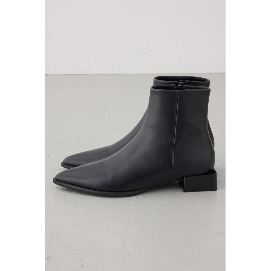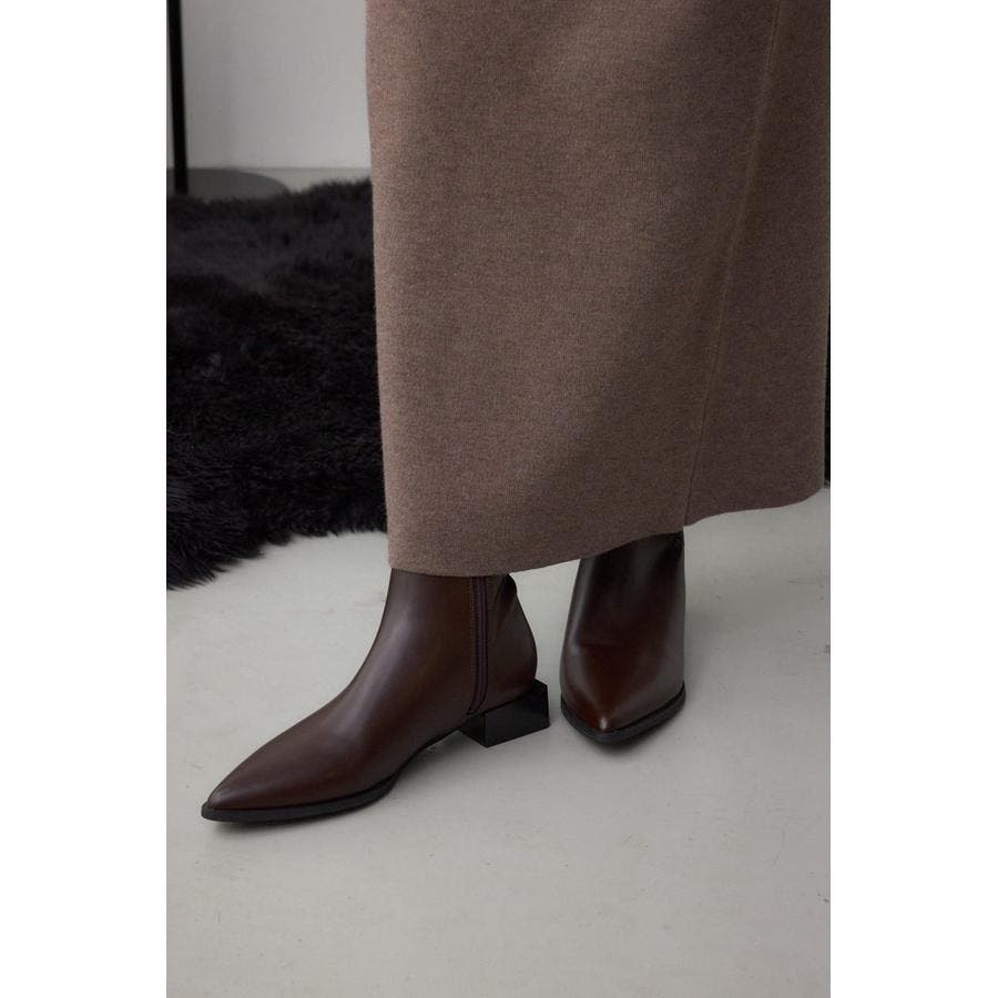 ブロックヒールとポインテッドトゥで上品さを叶えつつ、シンプルデザインでどんなスタイリングにも合わせやすいローヒールブーツ。