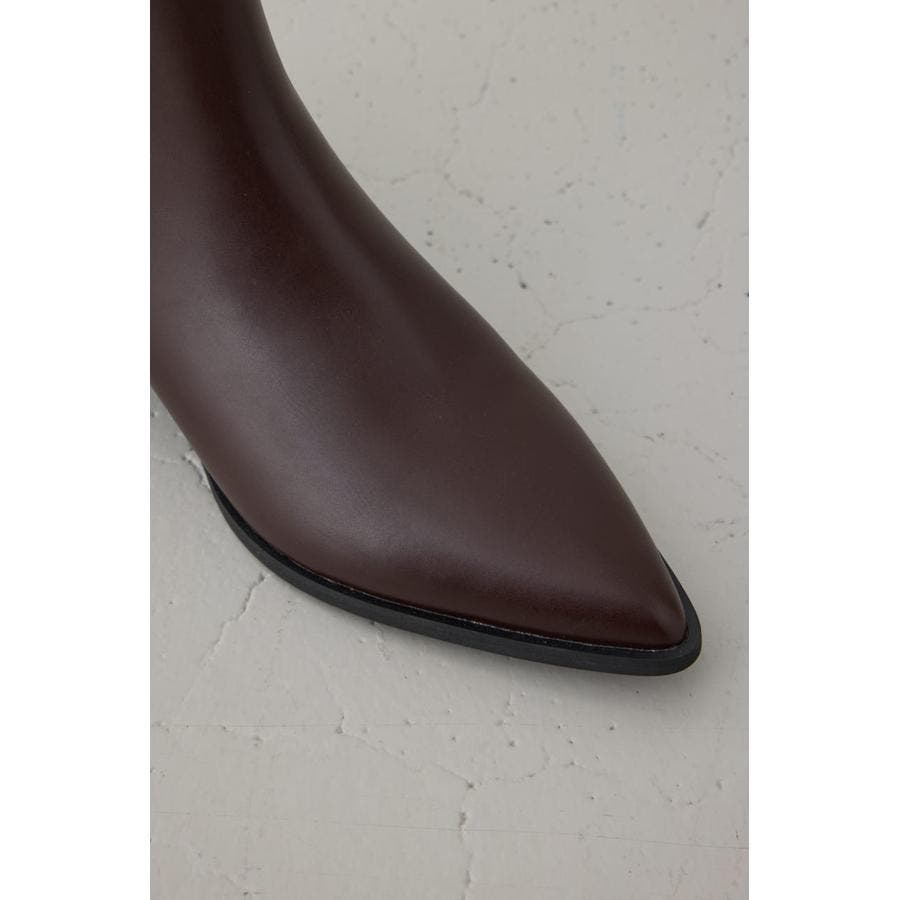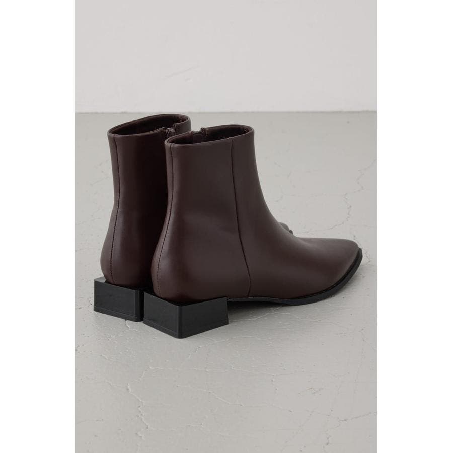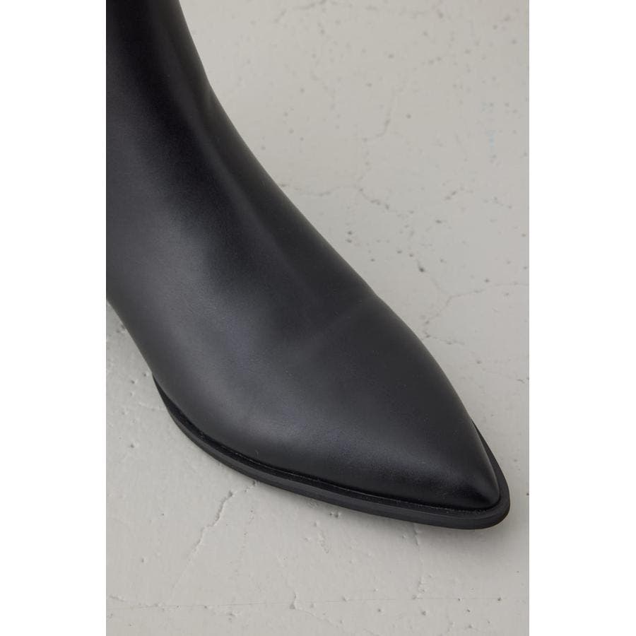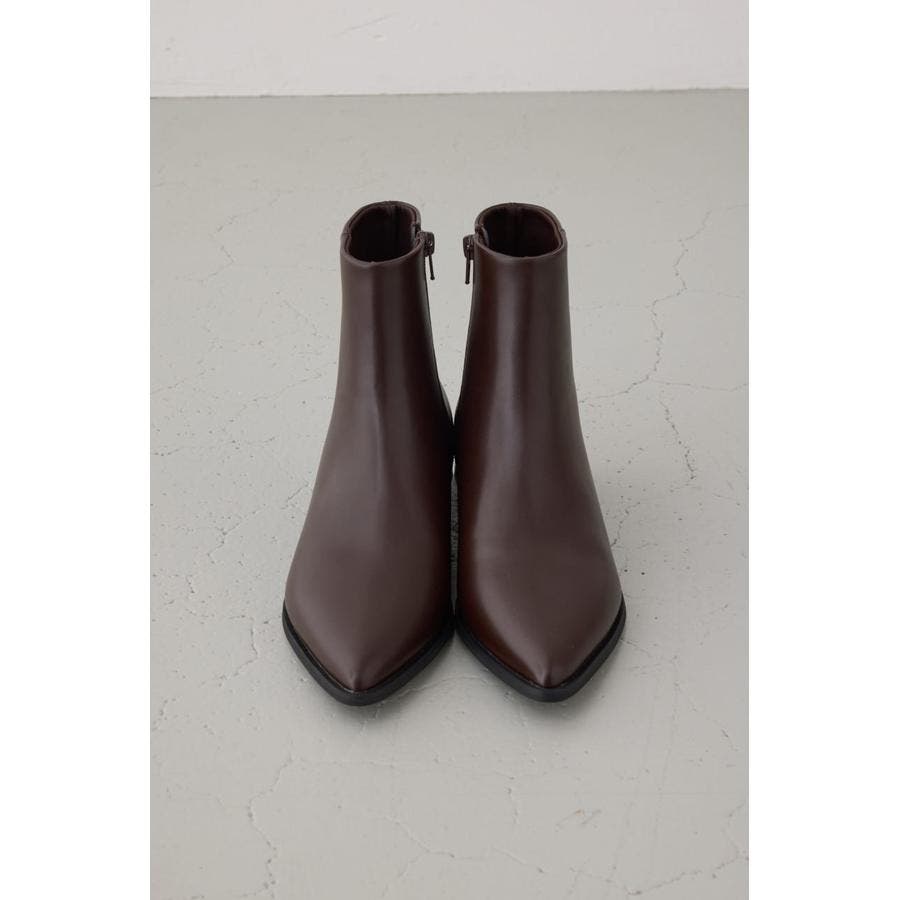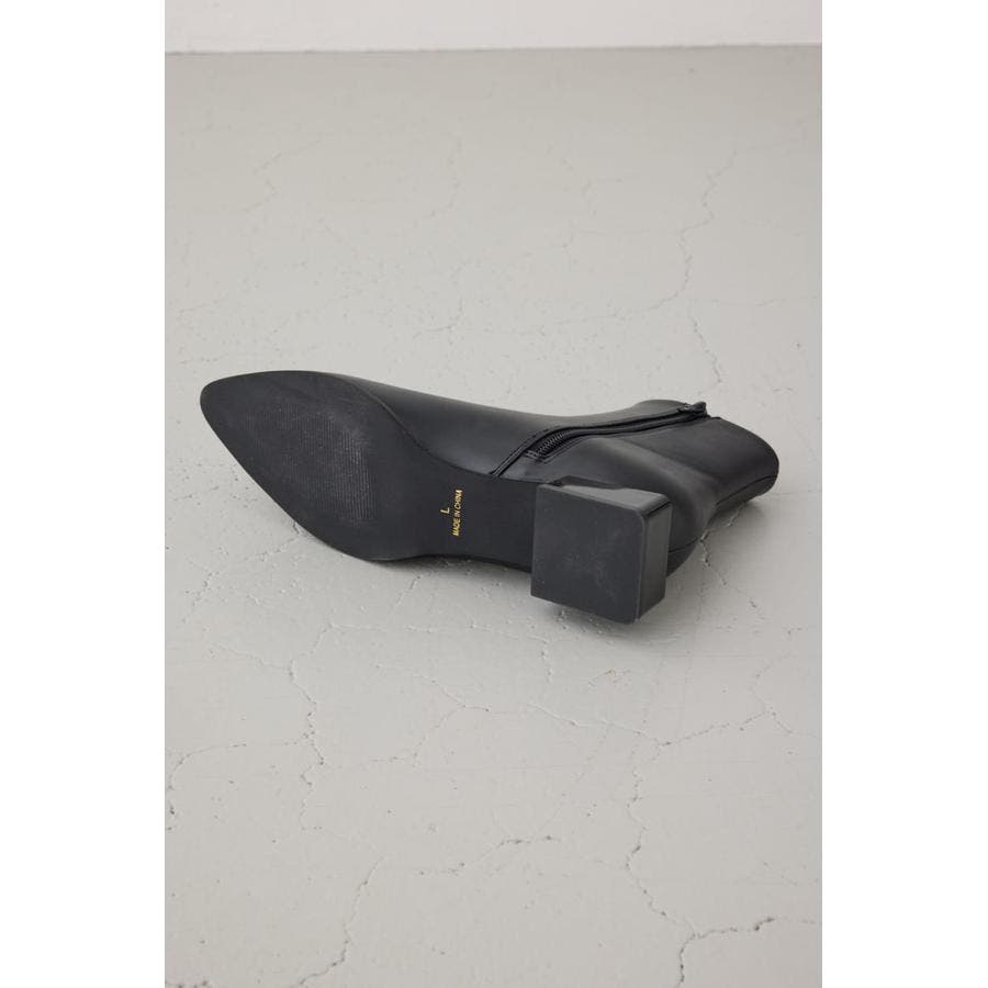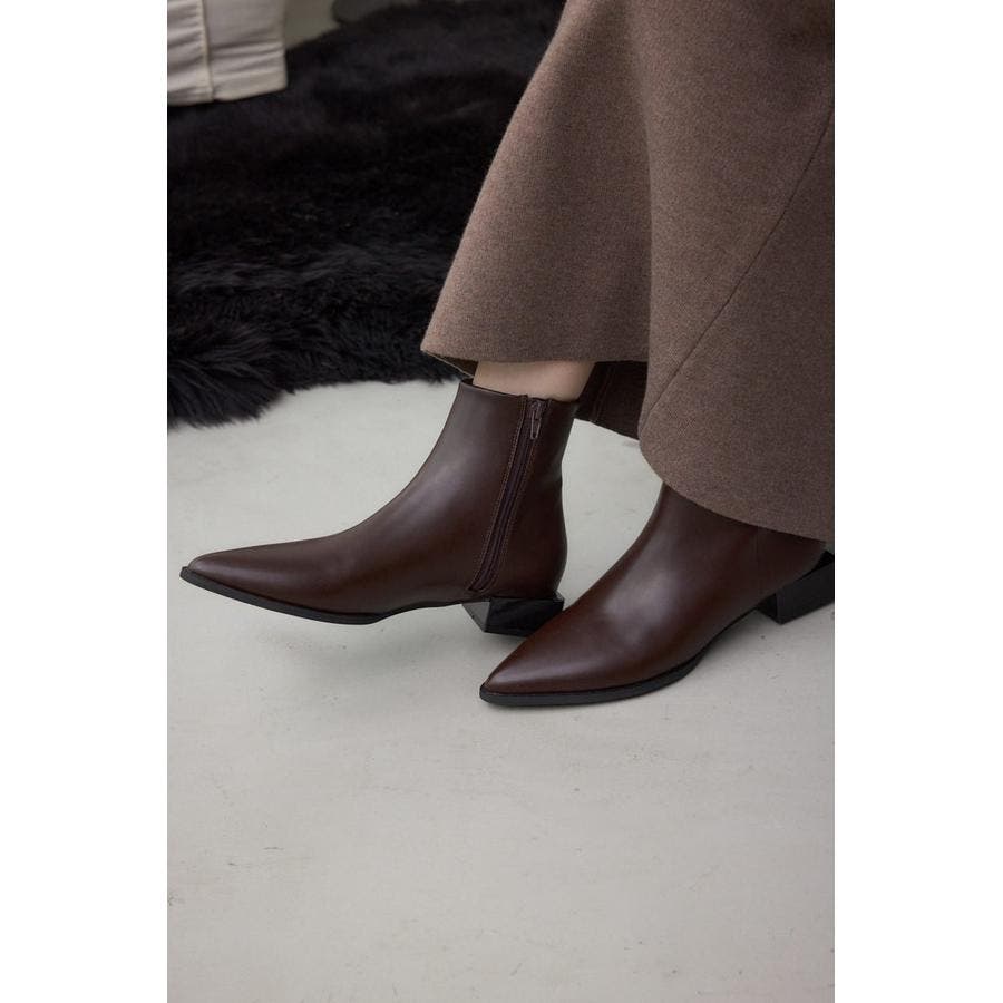 ブロックヒールとポインテッドトゥで上品さを叶えつつ、シンプルデザインでどんなスタイリングにも合わせやすいローヒールブーツ。