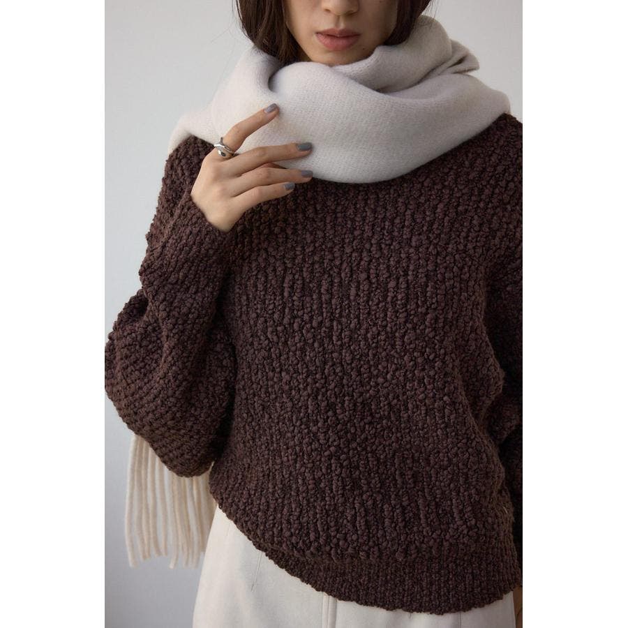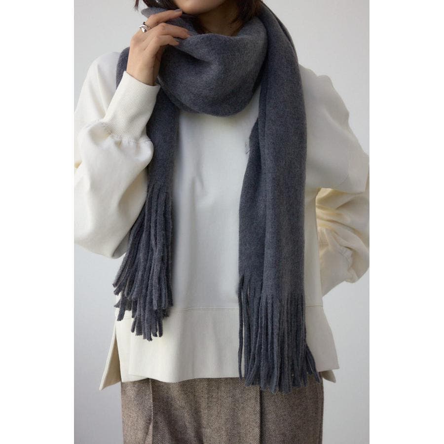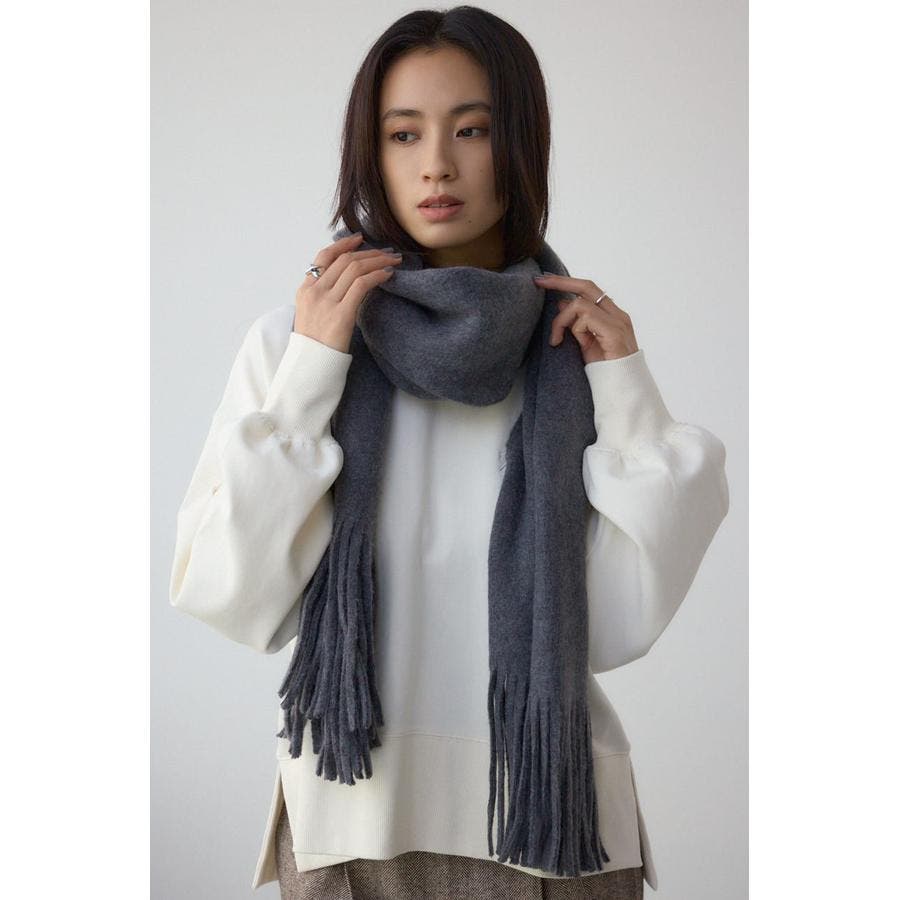 柔らかなニット素材とフリンジが可愛らしいアクセントのソフトタッチストール。