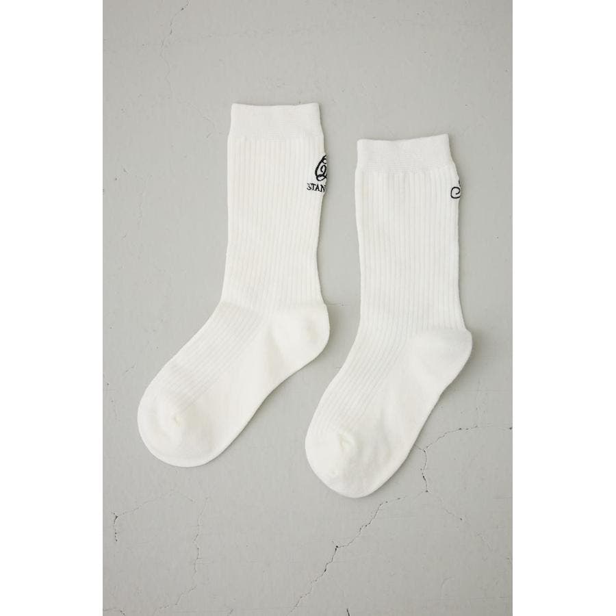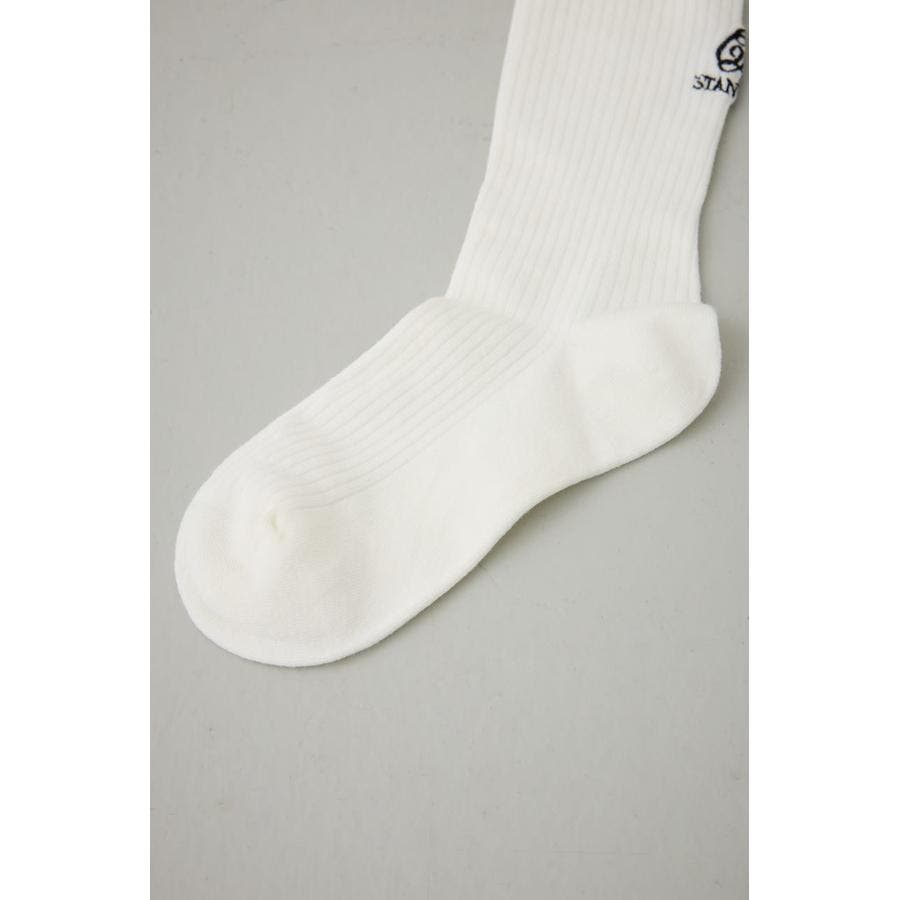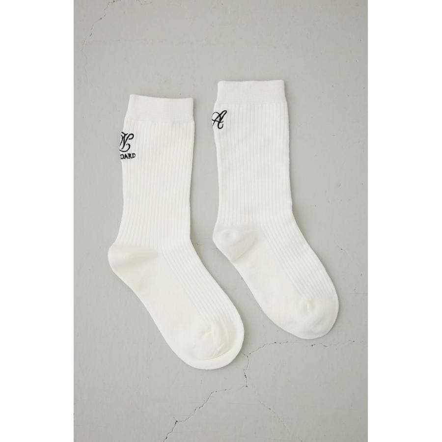 ベースはシンプルなホワイトソックスながら、左右で異なる刺繍モチーフが目を引くデザイン。