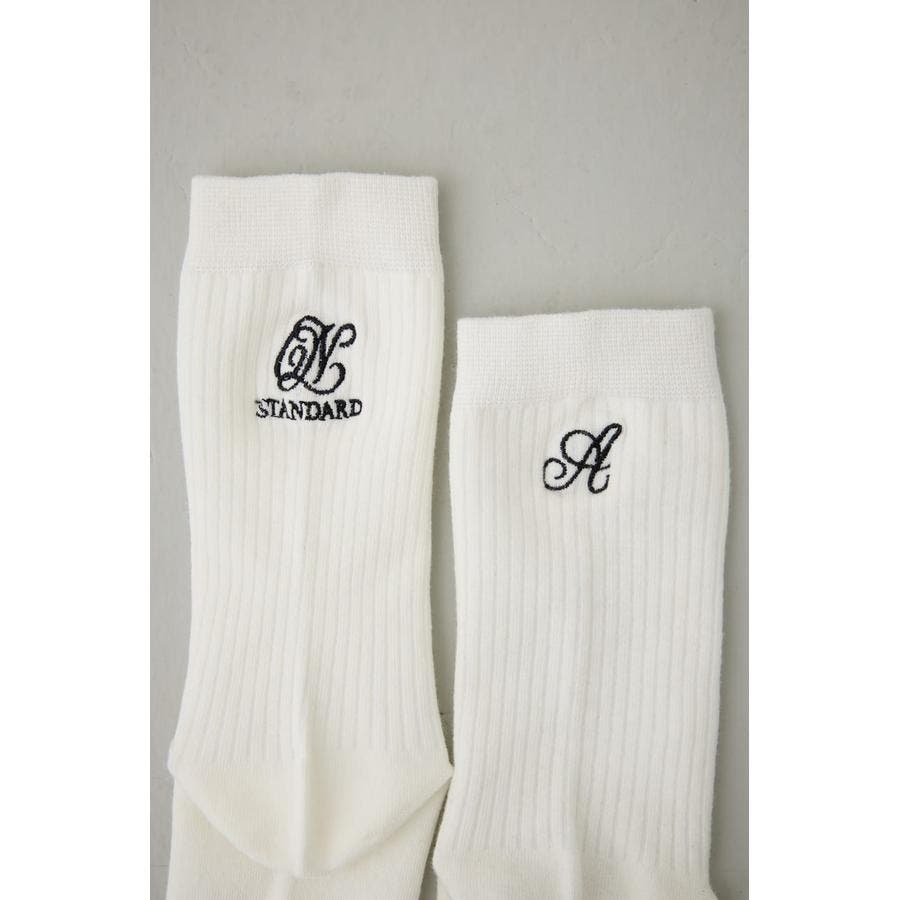左右で異なる刺繍モチーフがアクセントになった、遊び心あふれるワンポイントソックス。