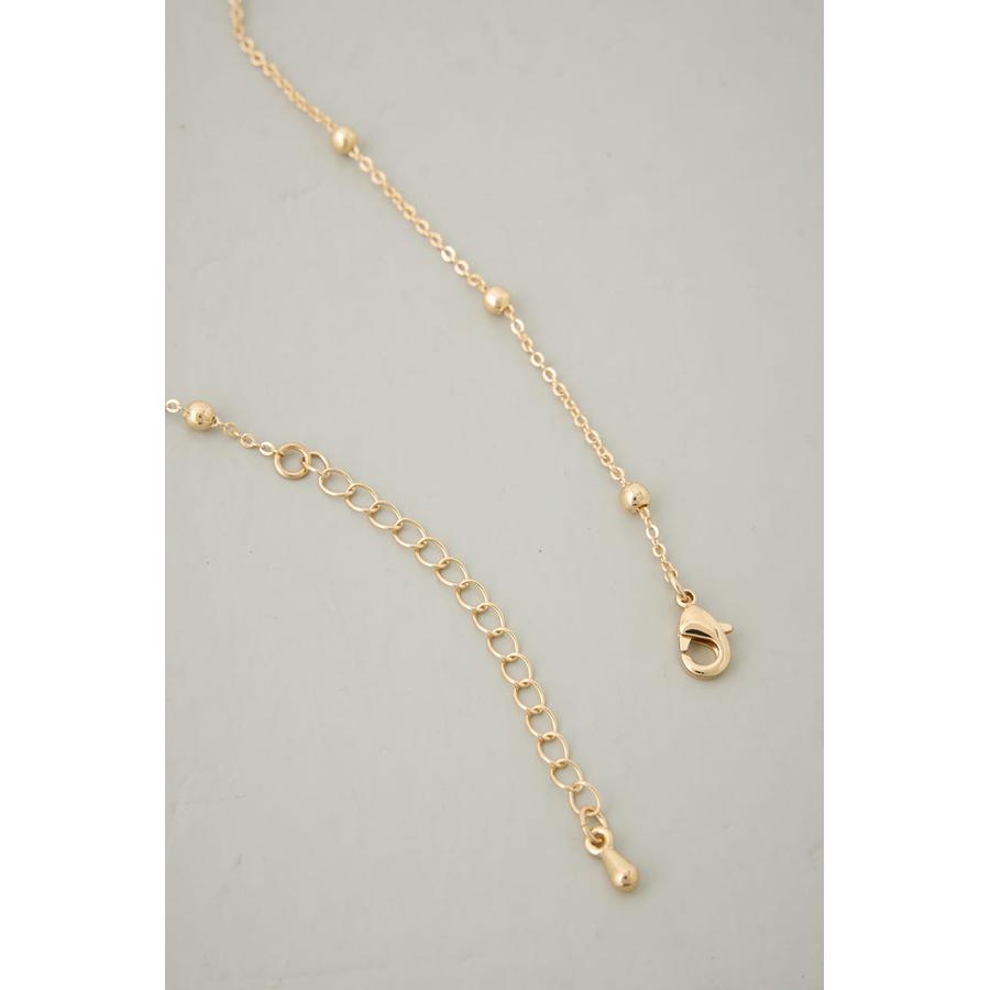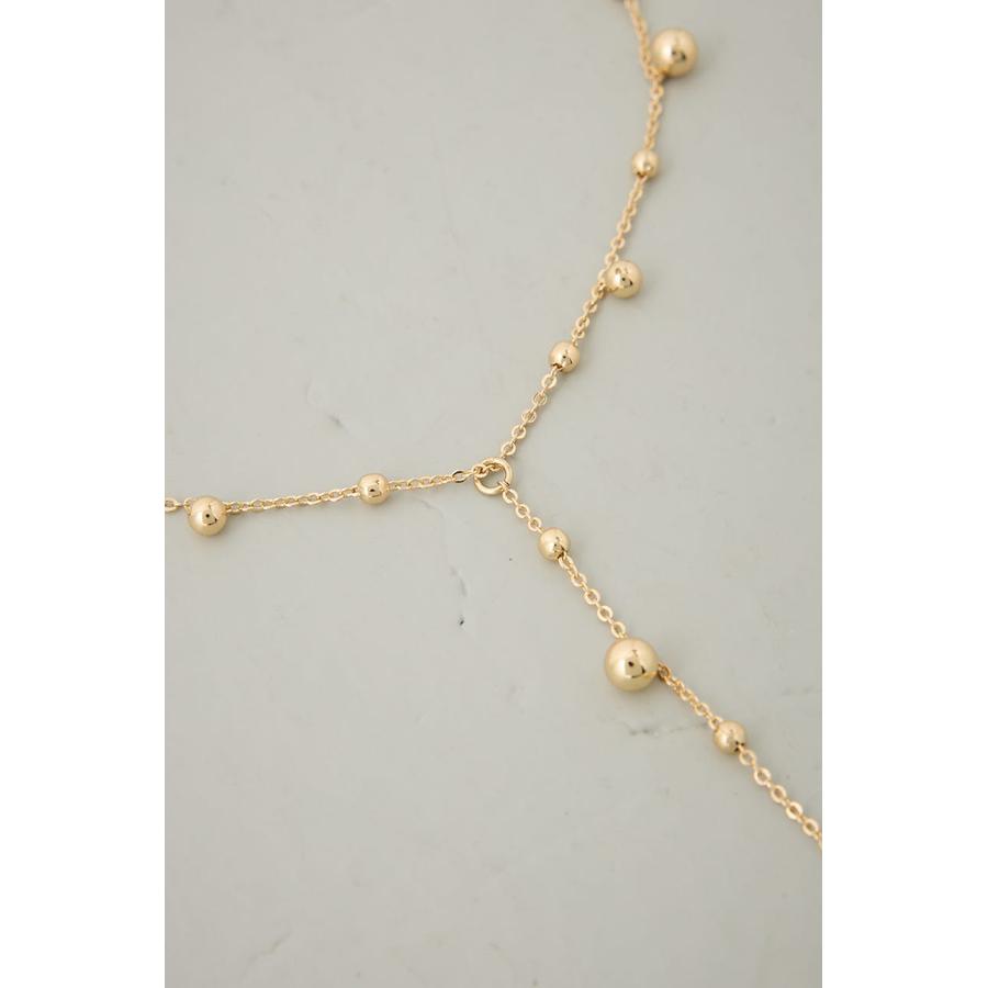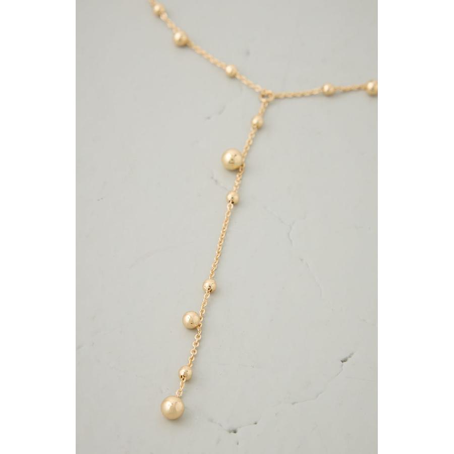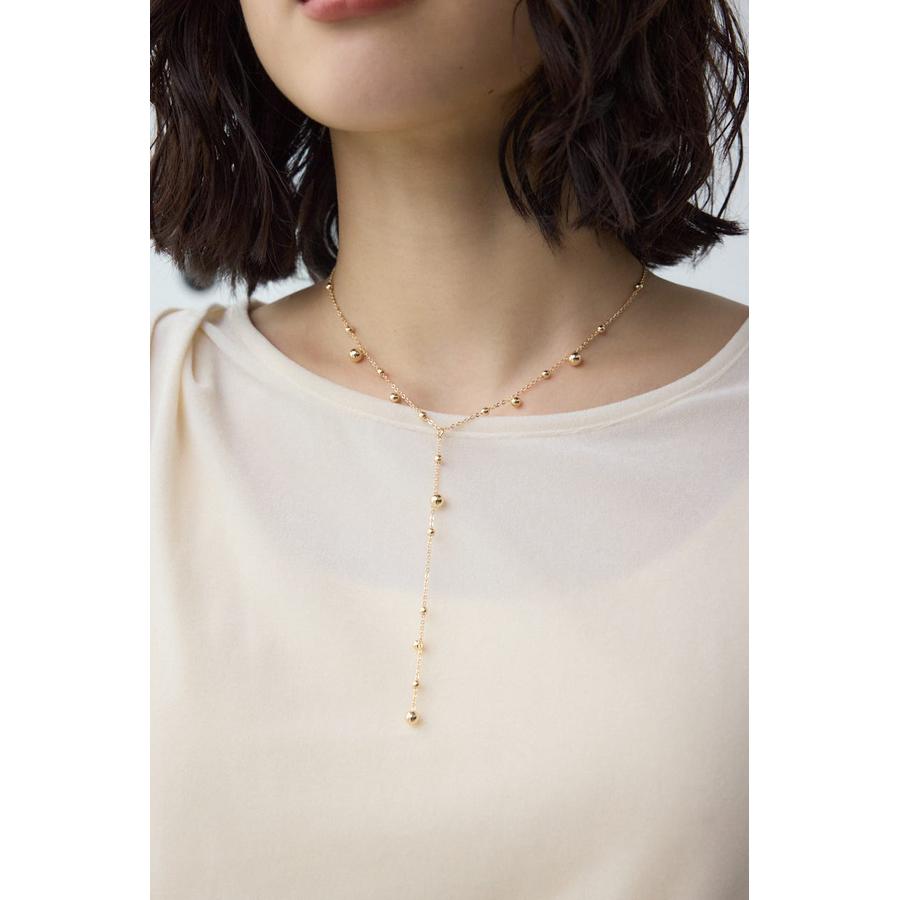 繊細なチェーンに、丸みのあるメタルビーズを配置した上品なY字ネックレス。