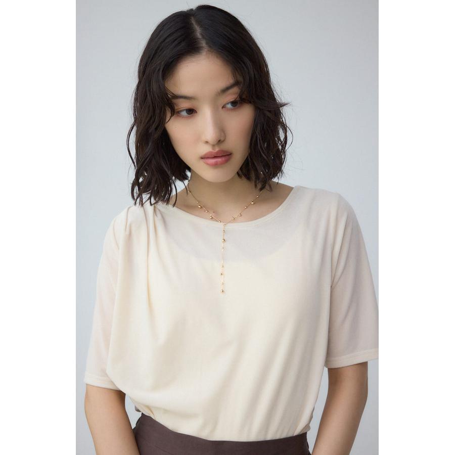 胸元で揺れるドロップチェーンが視線を集め、シンプルながら印象的なスタイリングが叶う1本です。