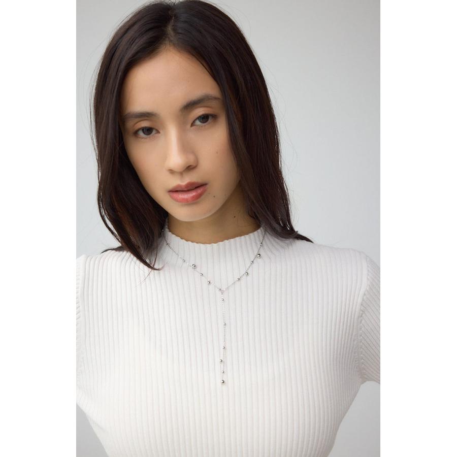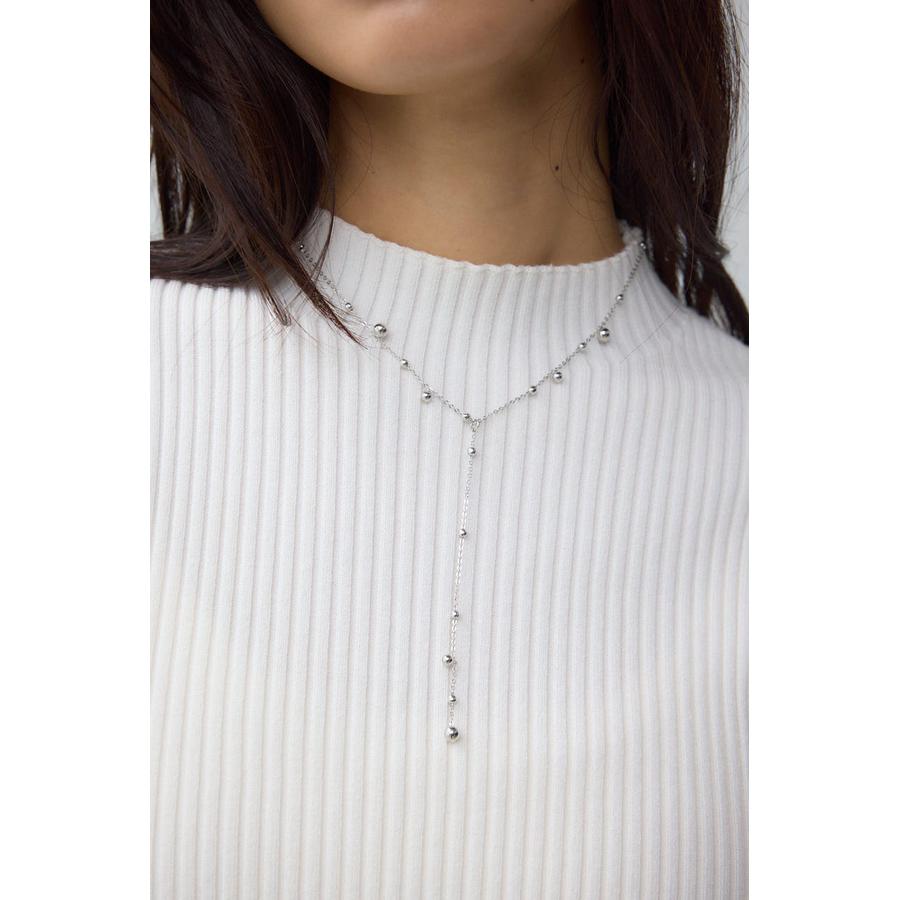 メタルの粒モチーフを等間隔にあしらったY字シルエットが特徴的な1連ネックレス。