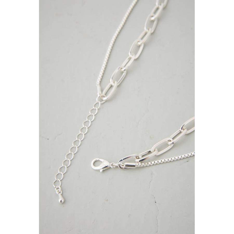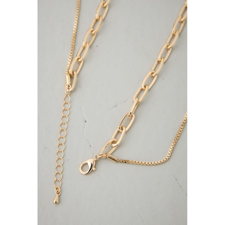大ぶりのオーバルチェーンと、繊細なボックスチェーンを組み合わせた2連ネックレス。