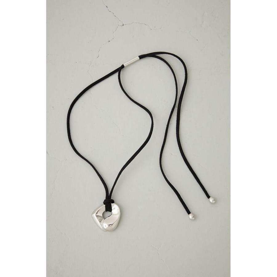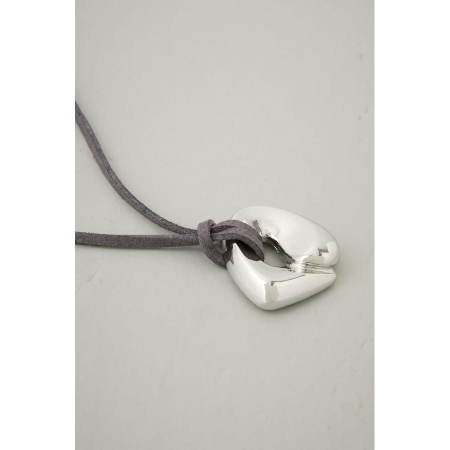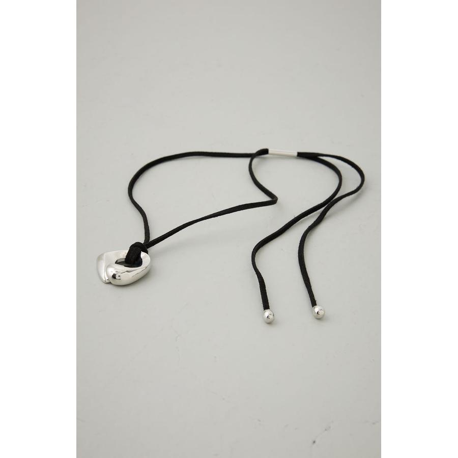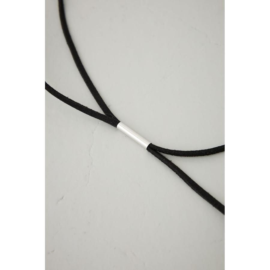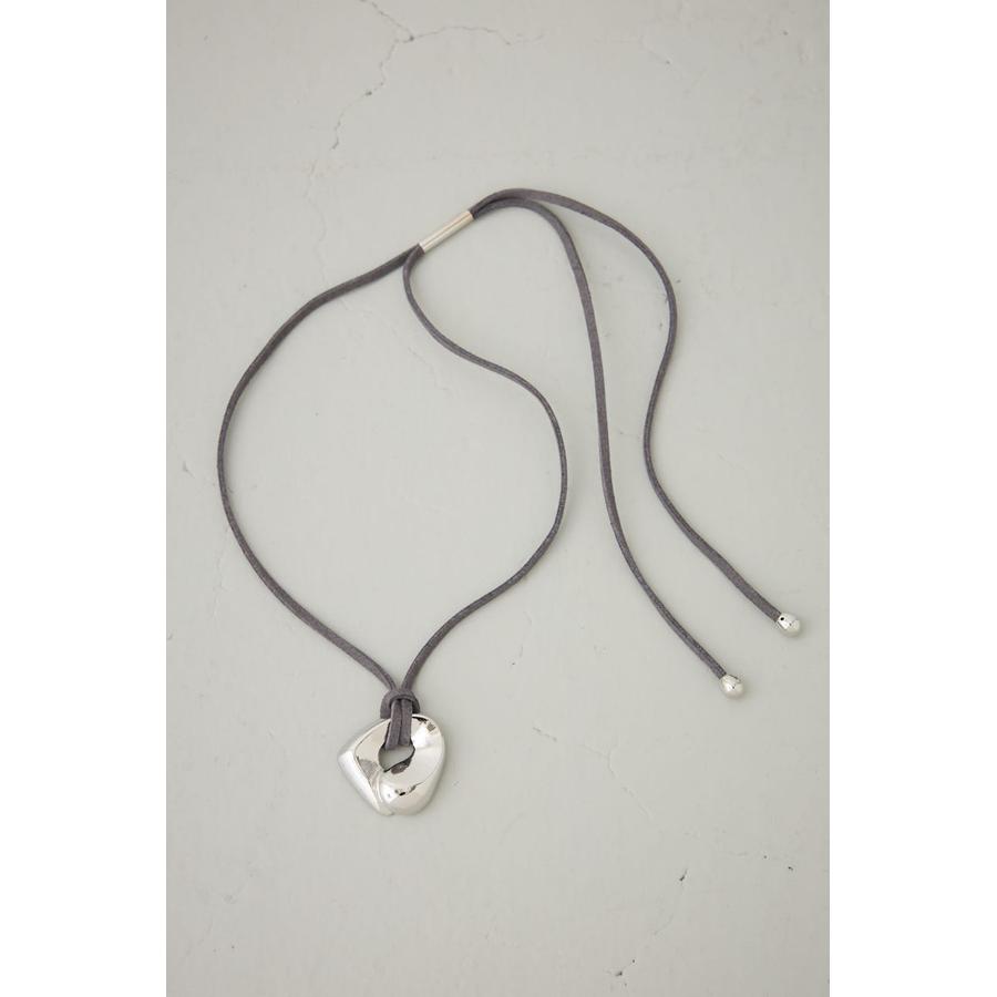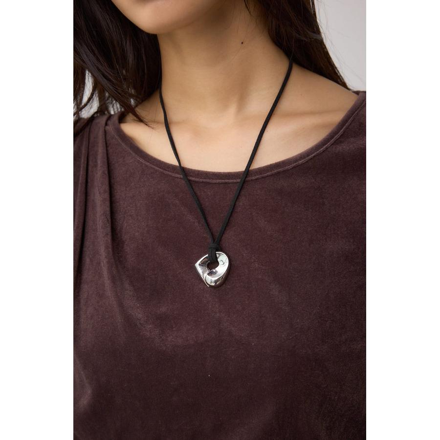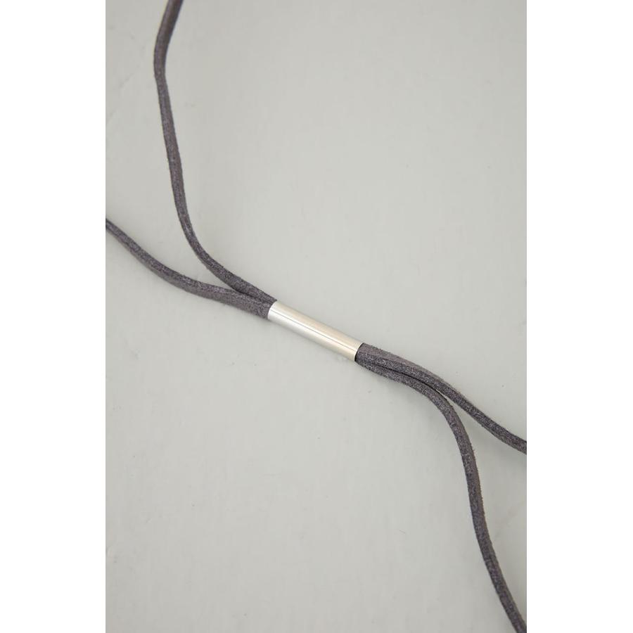しなやかなスエード調コードと、艶やかなシルバートーンのメタルモチーフを組み合わせたネックレス。