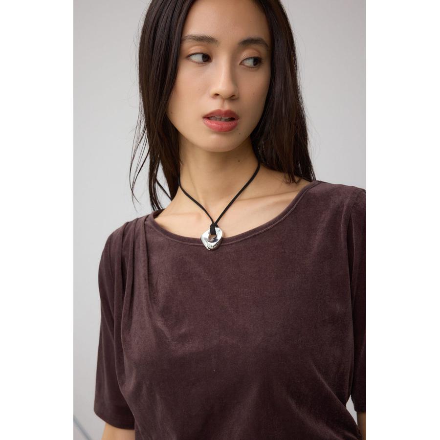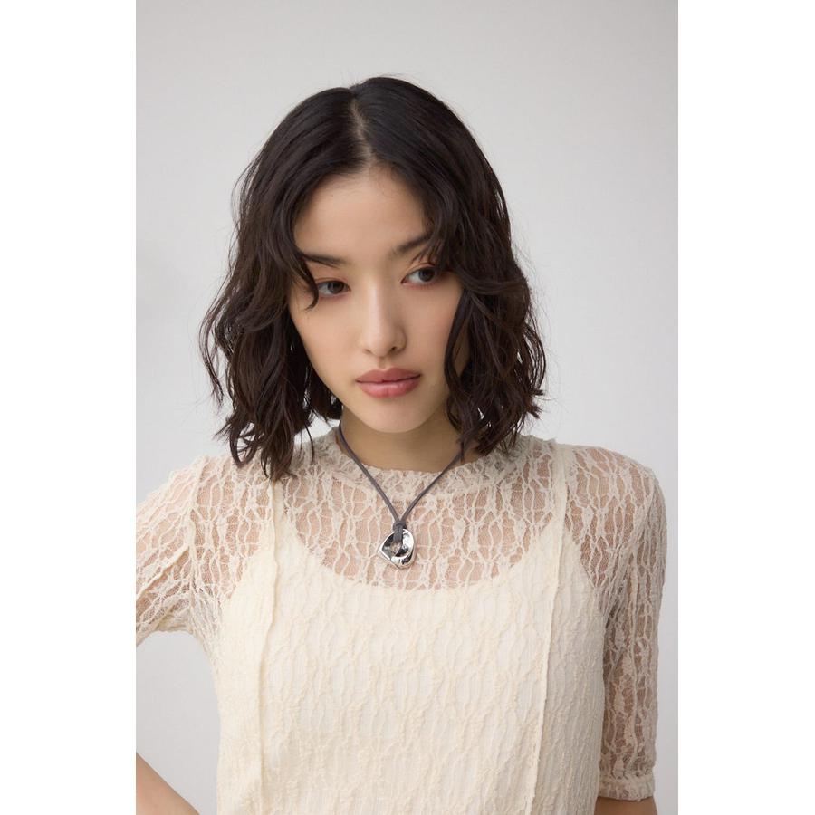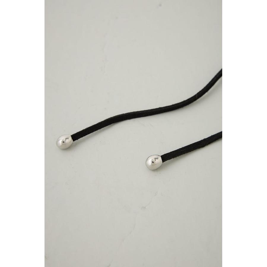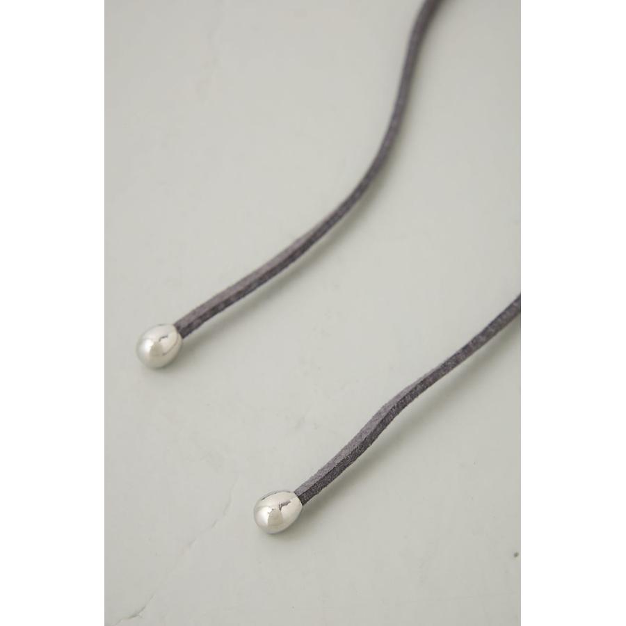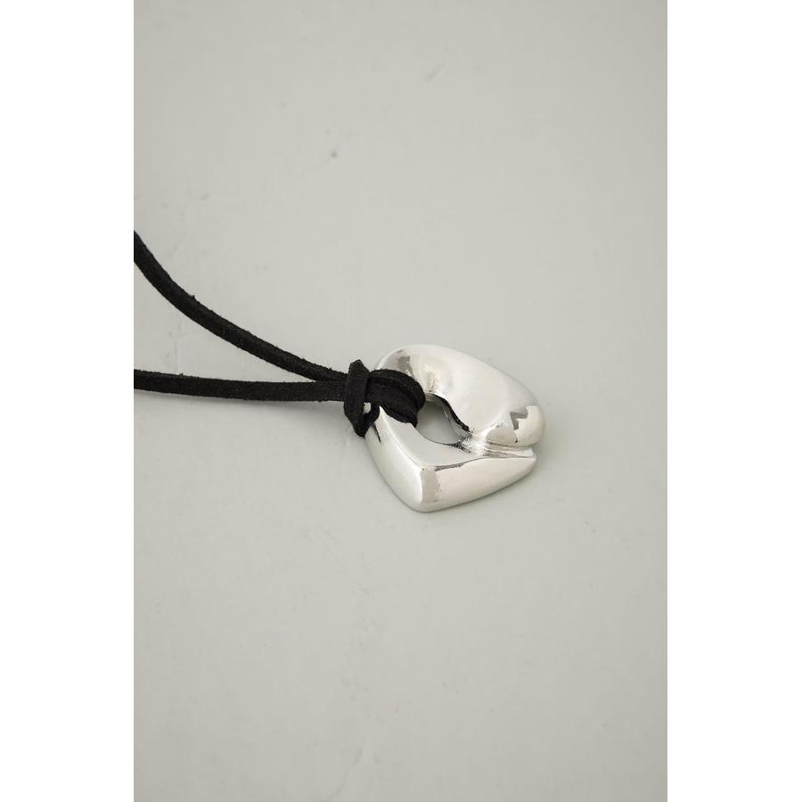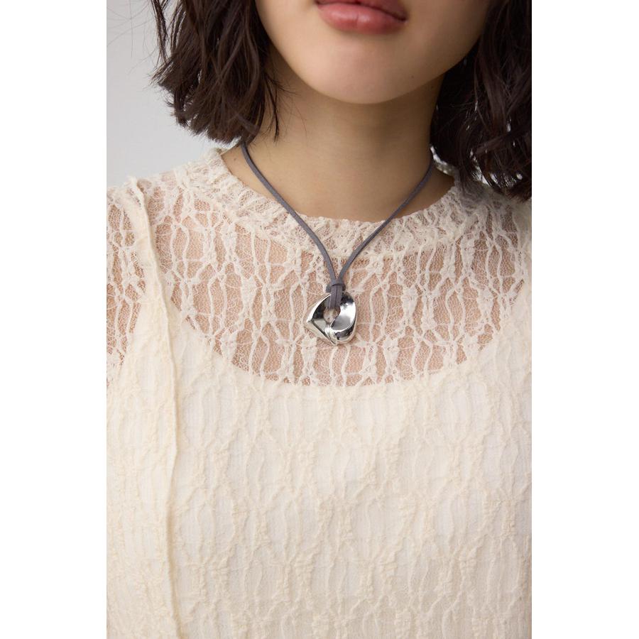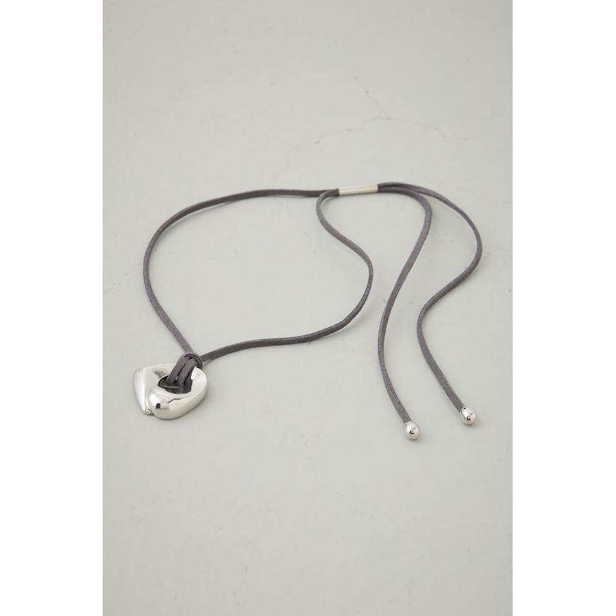 しなやかなスエード調コードと、艶やかなシルバートーンのメタルモチーフを組み合わせたネックレス。