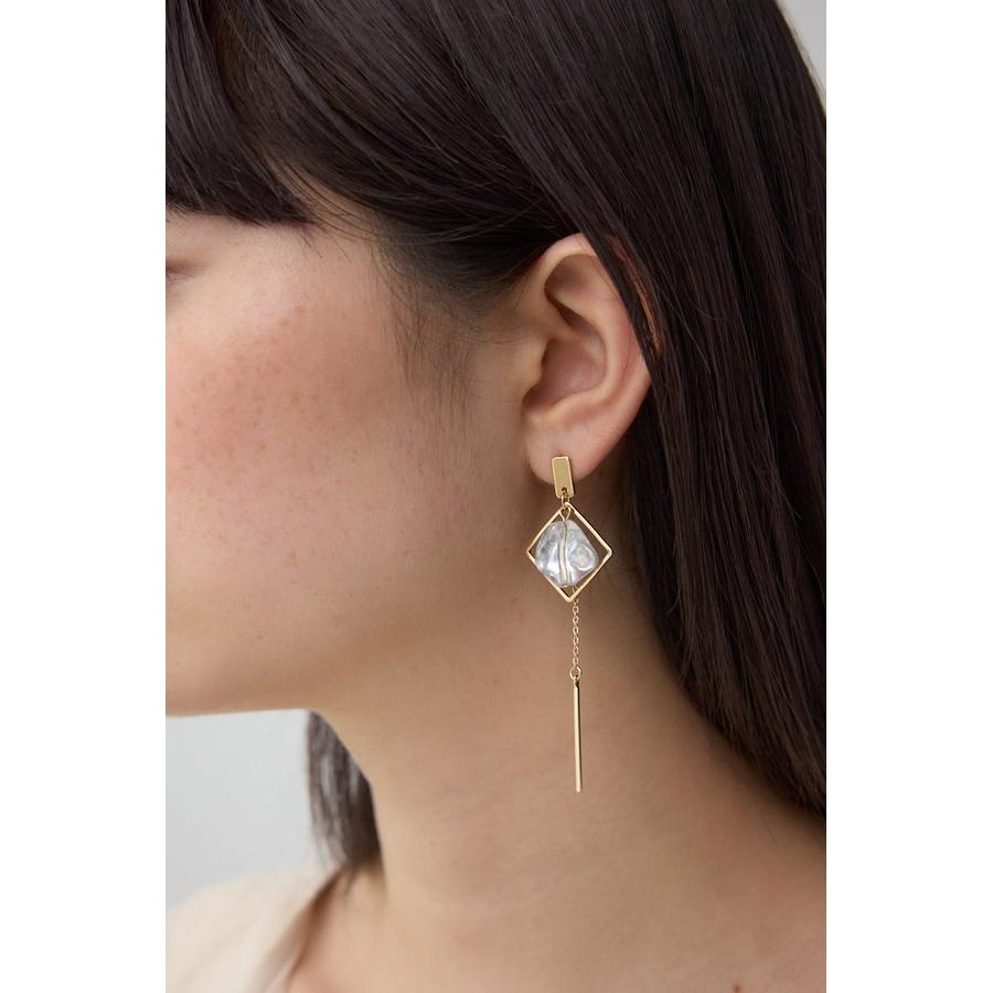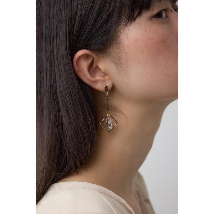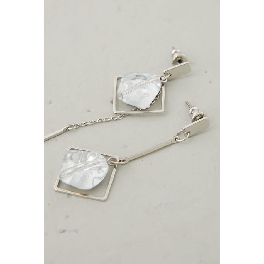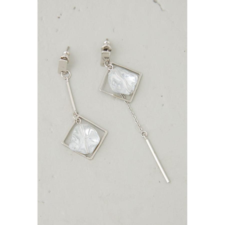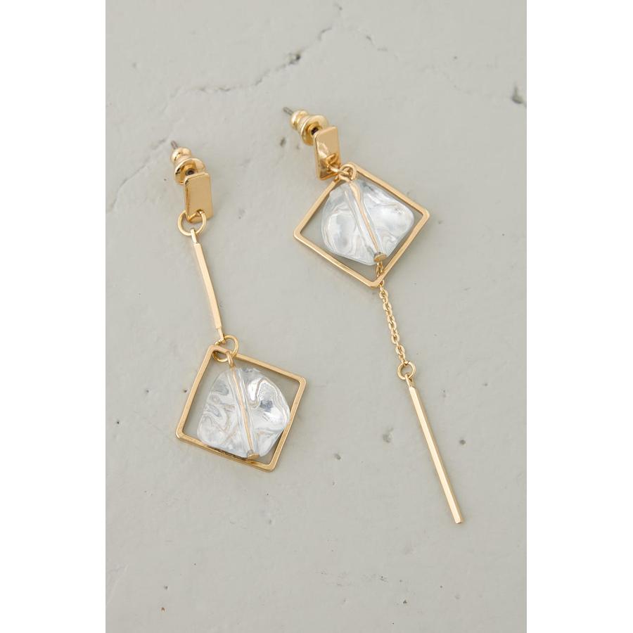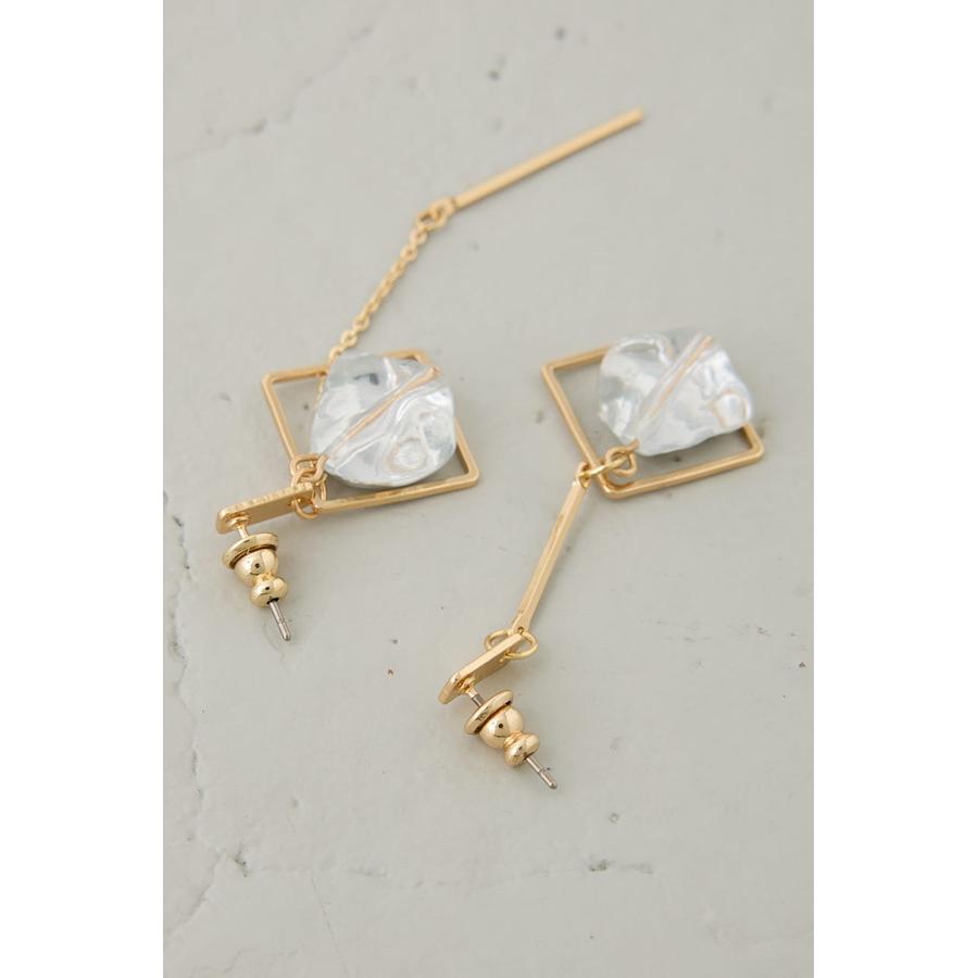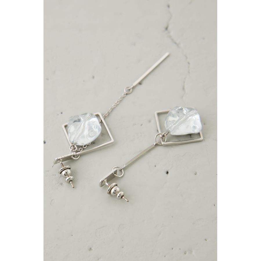 クリア×メタルの異素材ミックスが夏らしく涼しげな印象を演出する、アシンメトリーデザインのピアス。