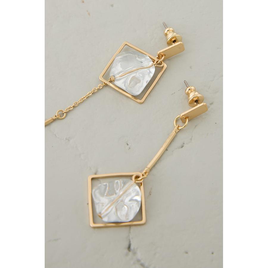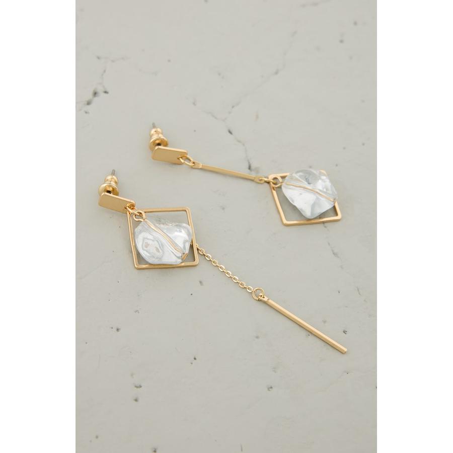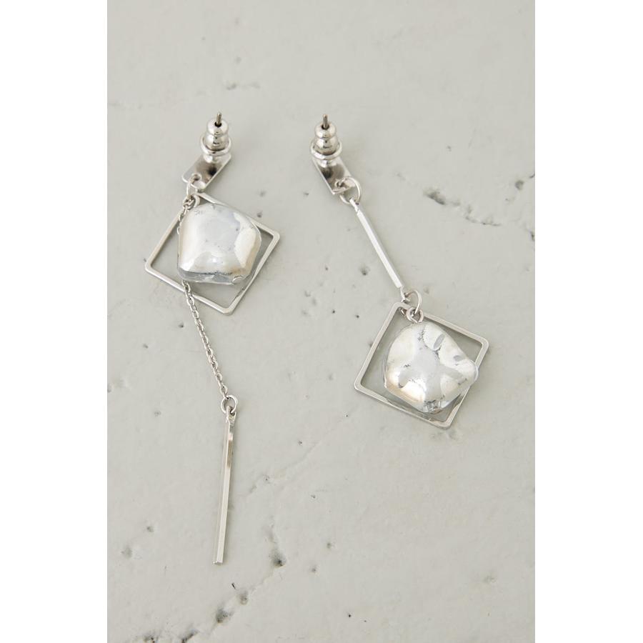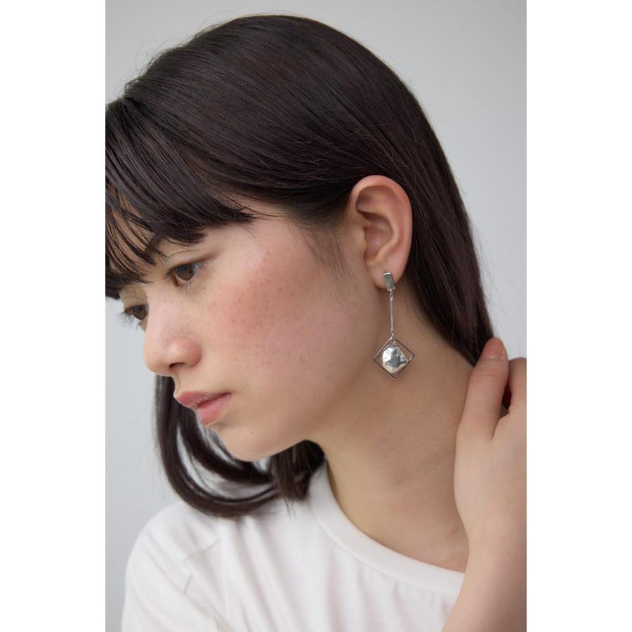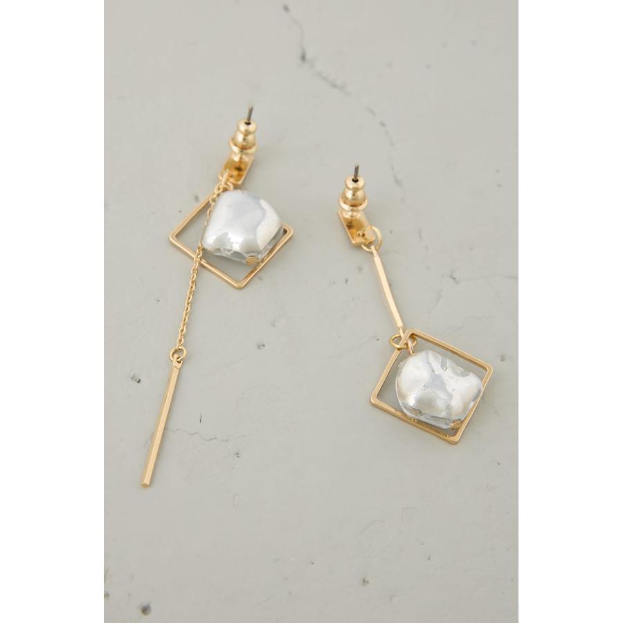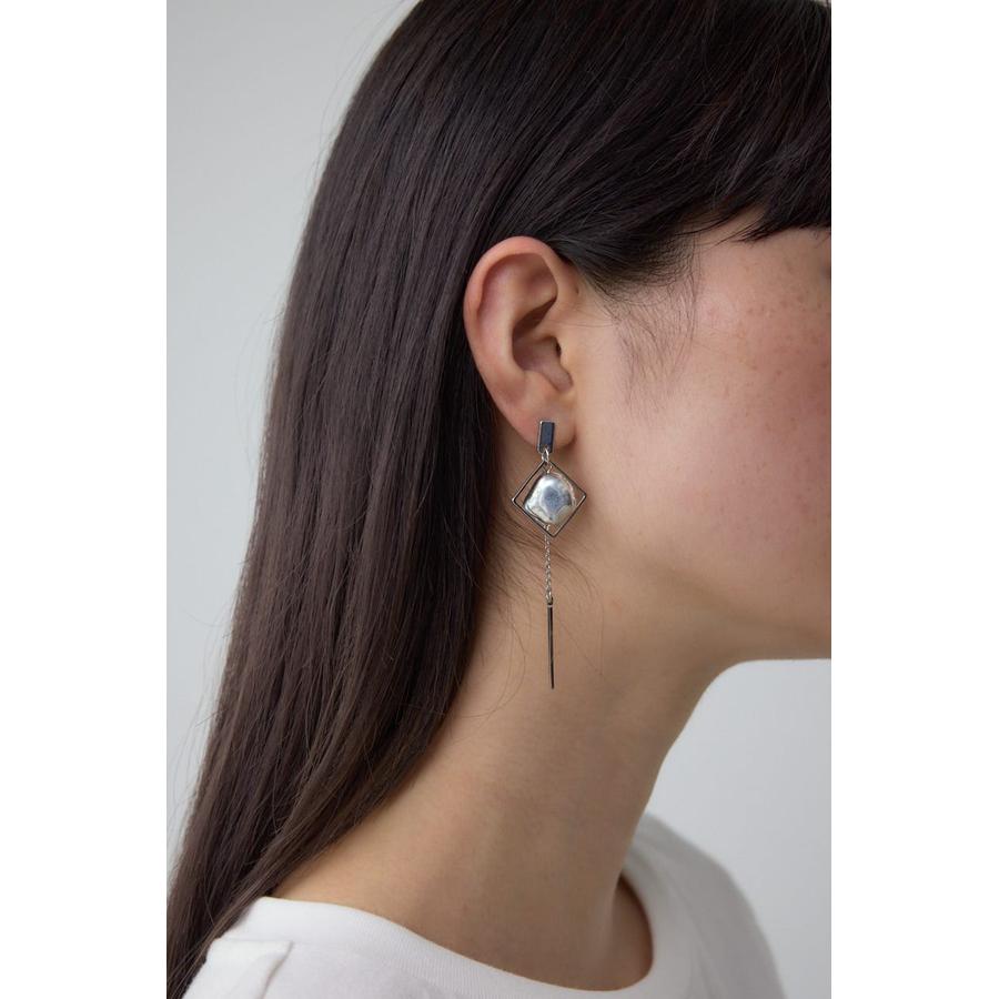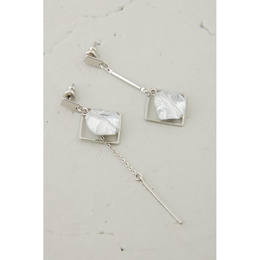 クリア×メタルの異素材ミックスが夏らしく涼しげな印象を演出する、アシンメトリーデザインのピアス。