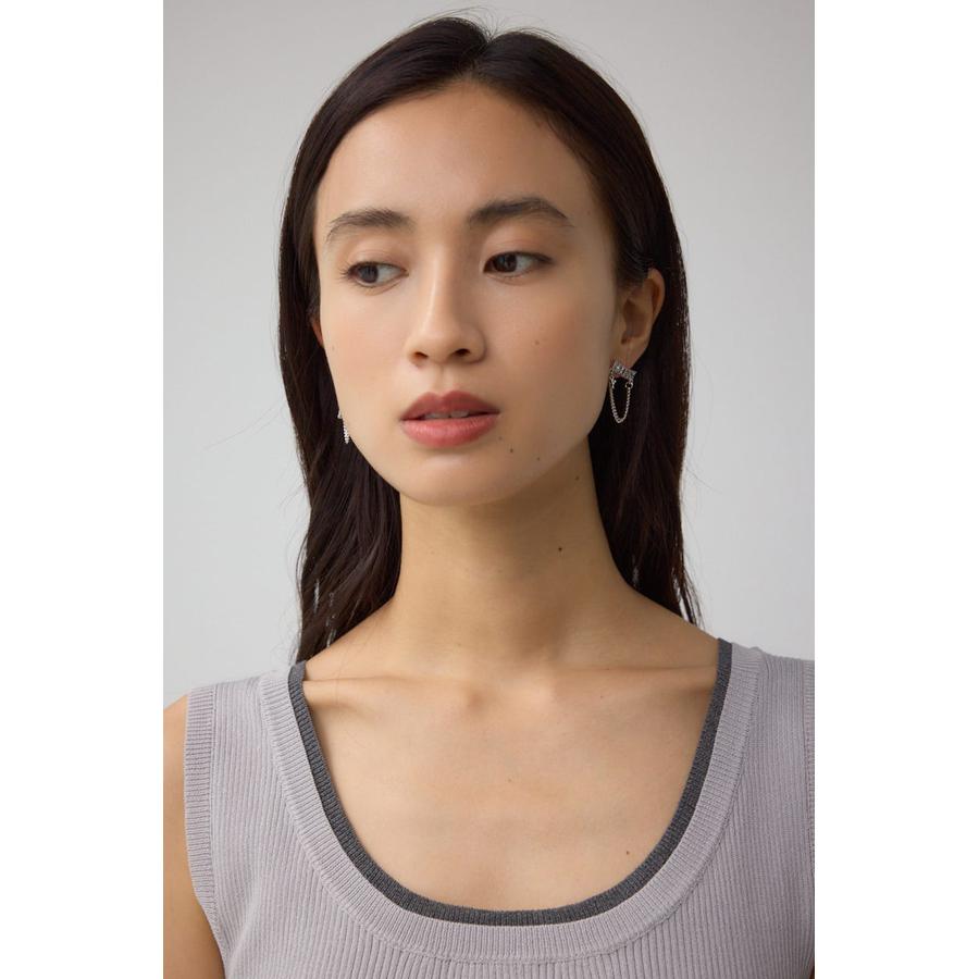片耳ずつ違うチェーンの長さやレイアウトでアシンメトリーなバランスを楽しめるのもポイント。