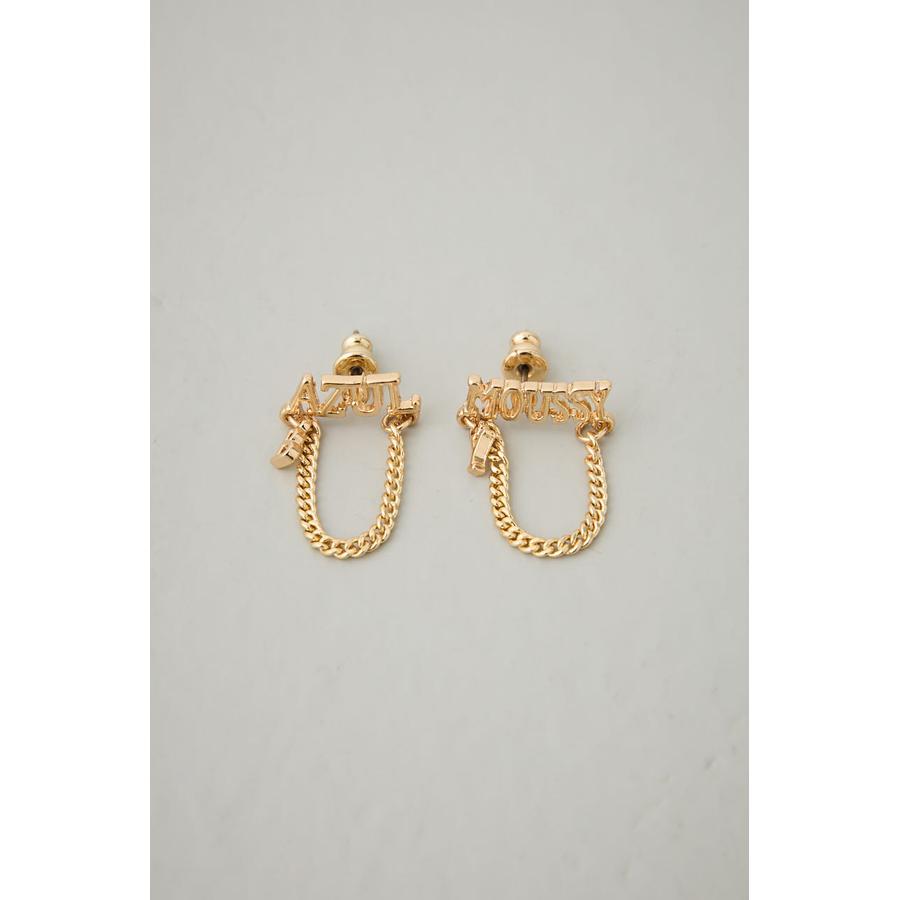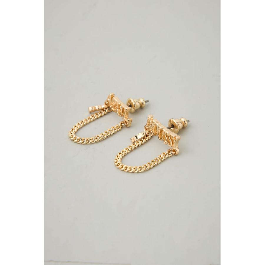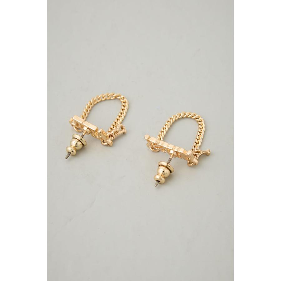 ブランドロゴ×チェーンの組み合わせが目を引く、存在感たっぷりのキャッチーなピアス。