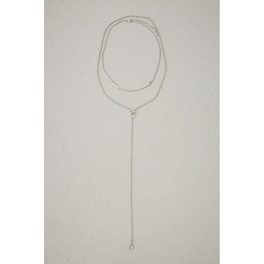 2連風の華奢なチェーンに、胸元で揺れるロングチェーンを組み合わせたY字ネックレス。