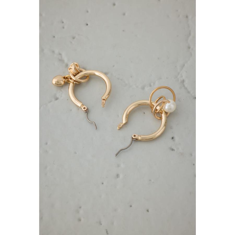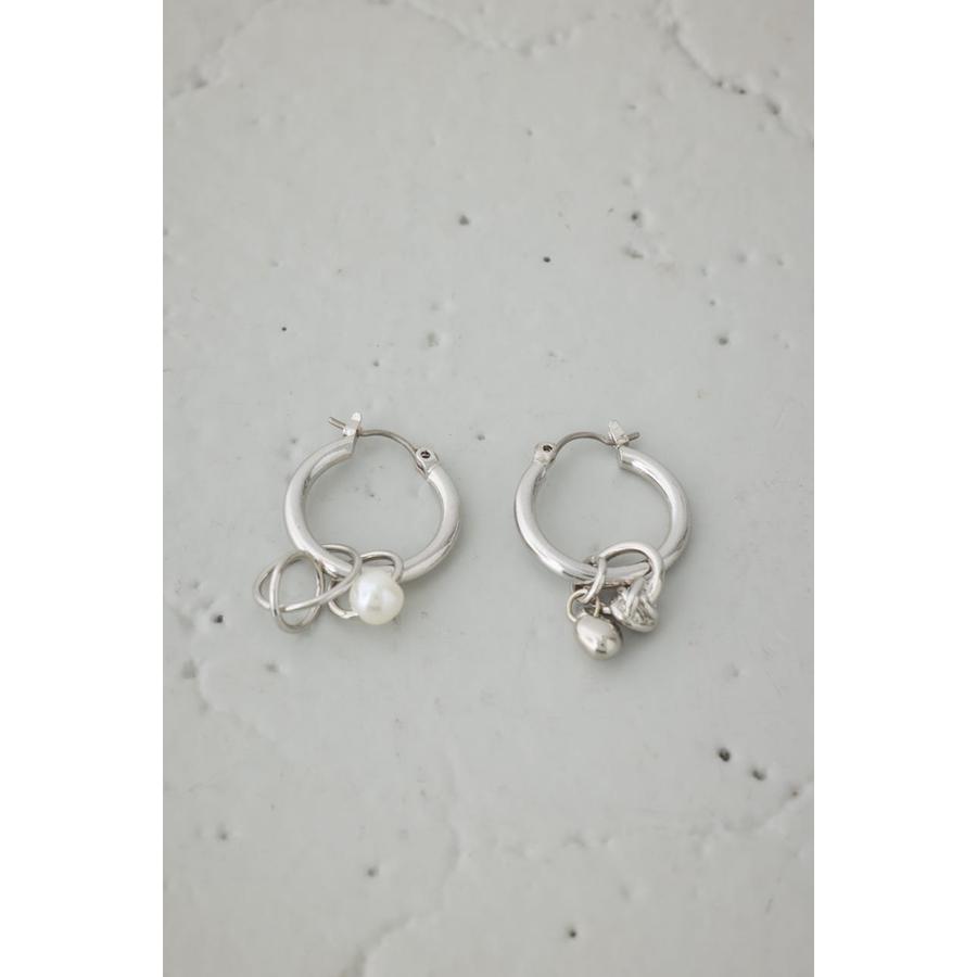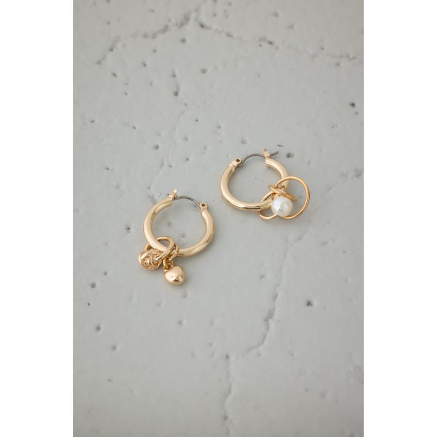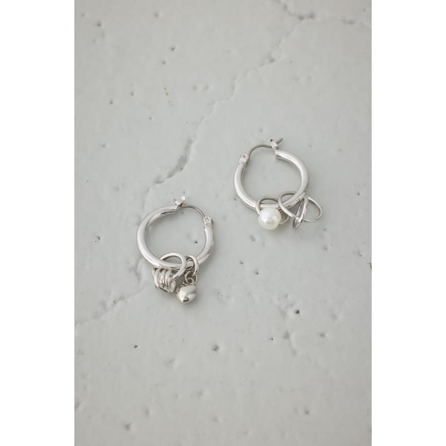 小ぶりなフープに、パールやメタルパーツなど異なるモチーフをミックス。