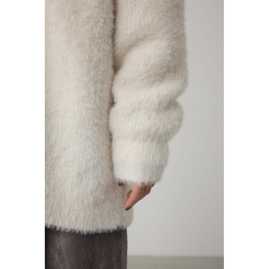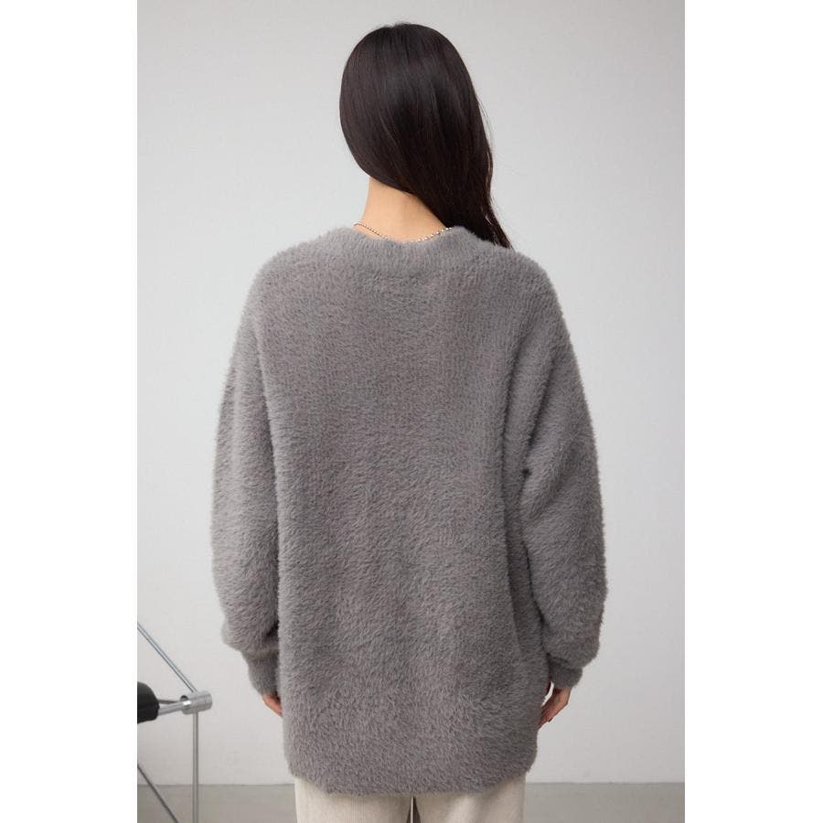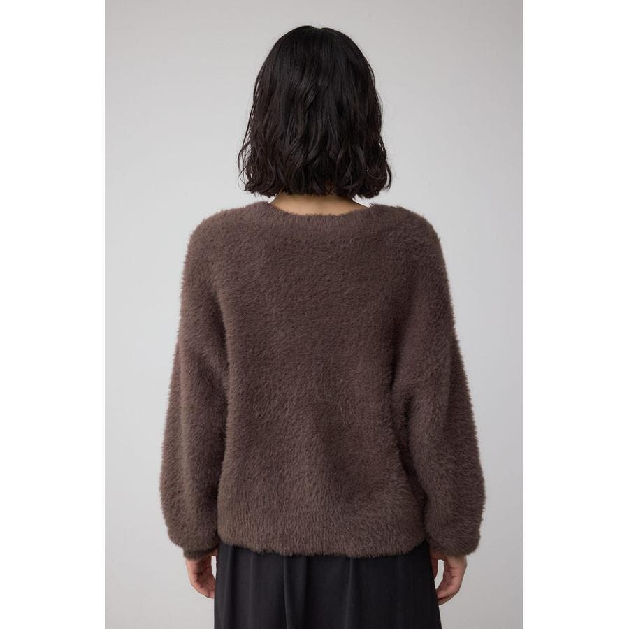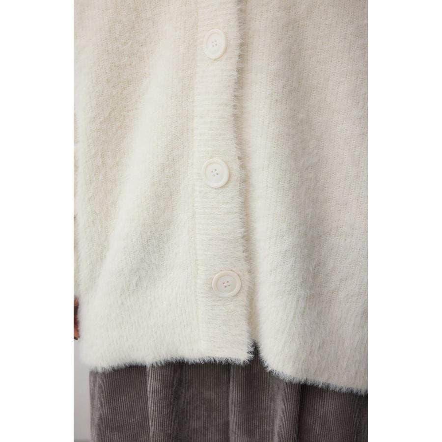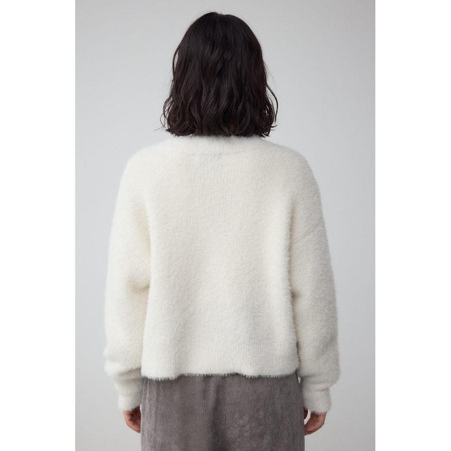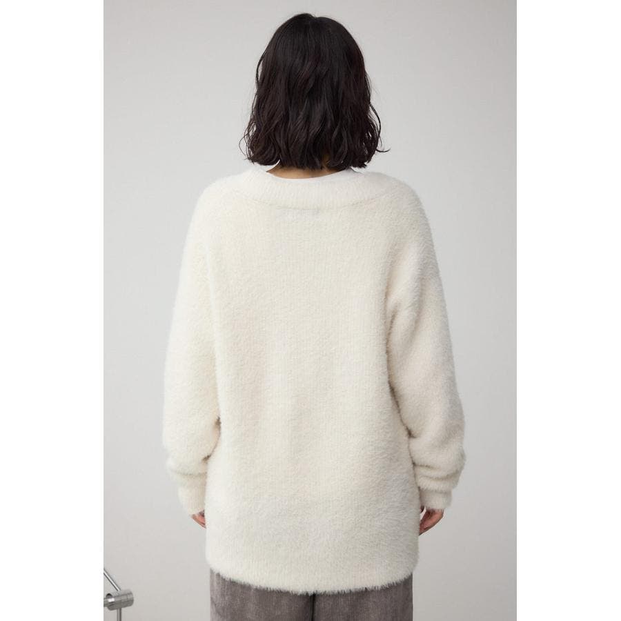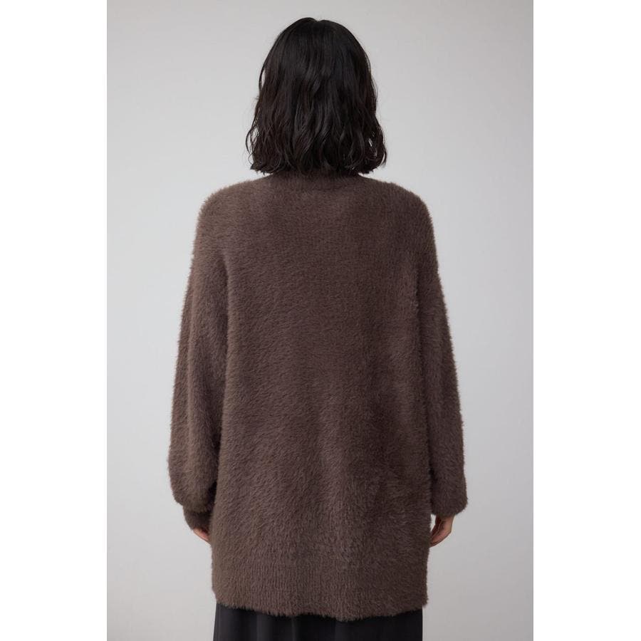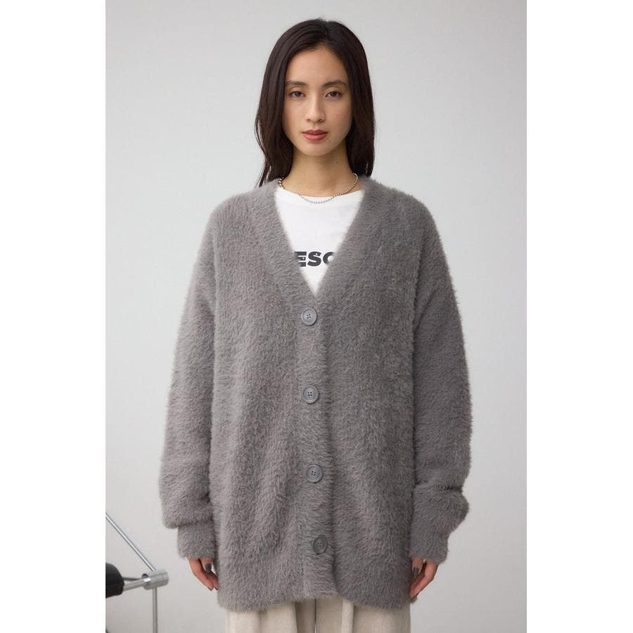 伸縮性のある柔らかなモヘアライクなシャギーニットが女性らしさを演出してくれるニットカーディガンです。