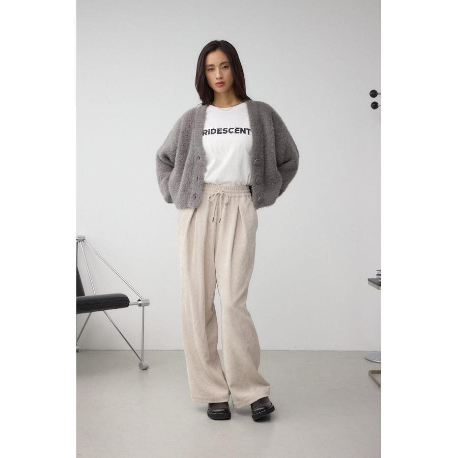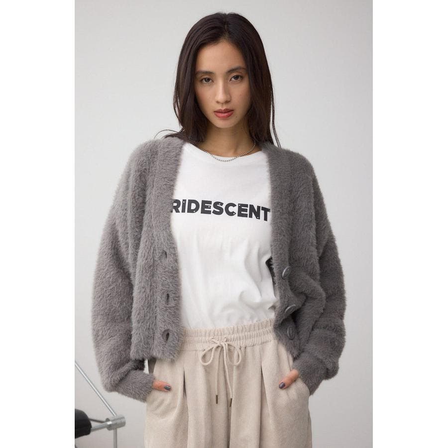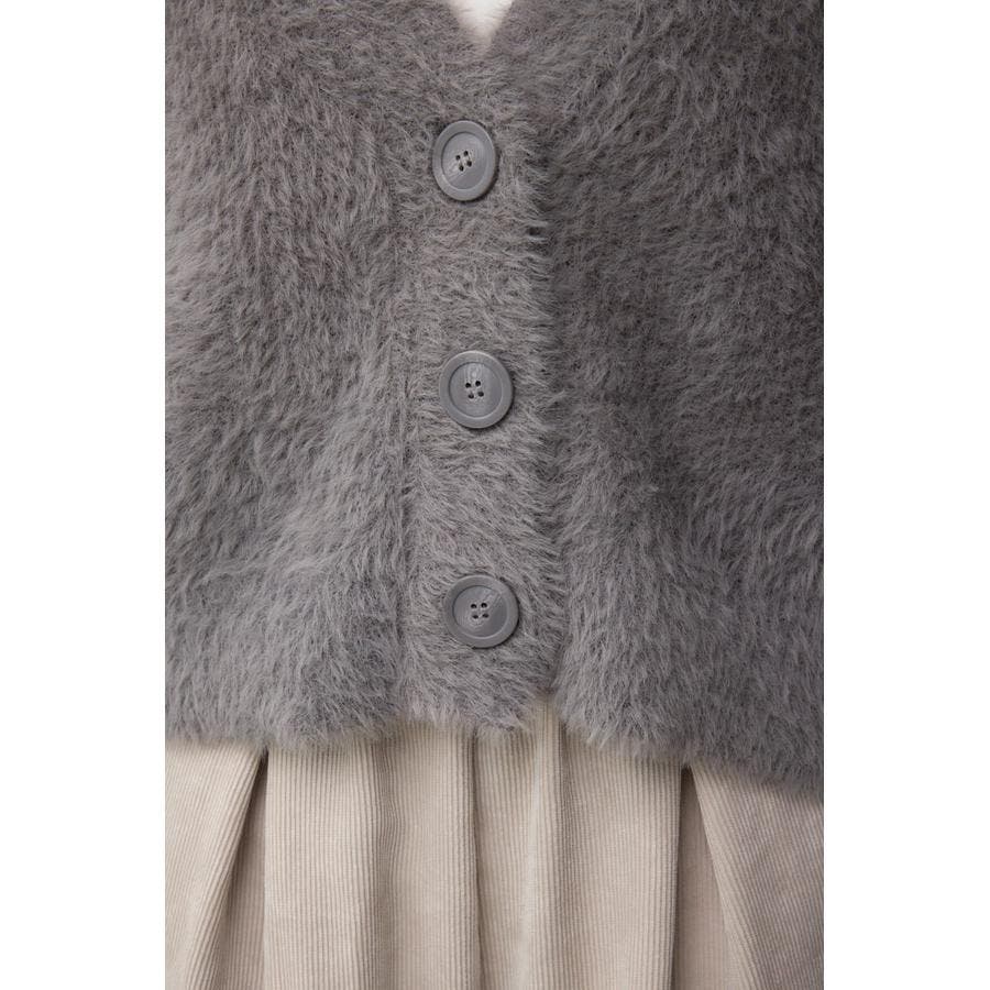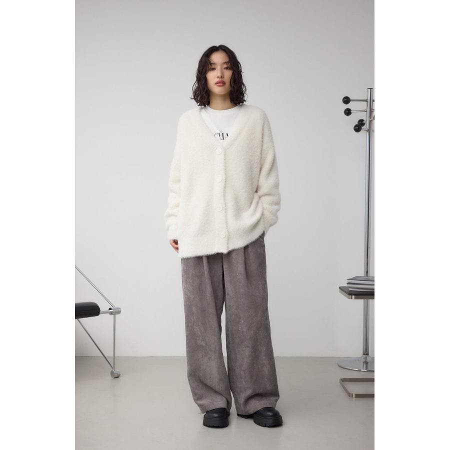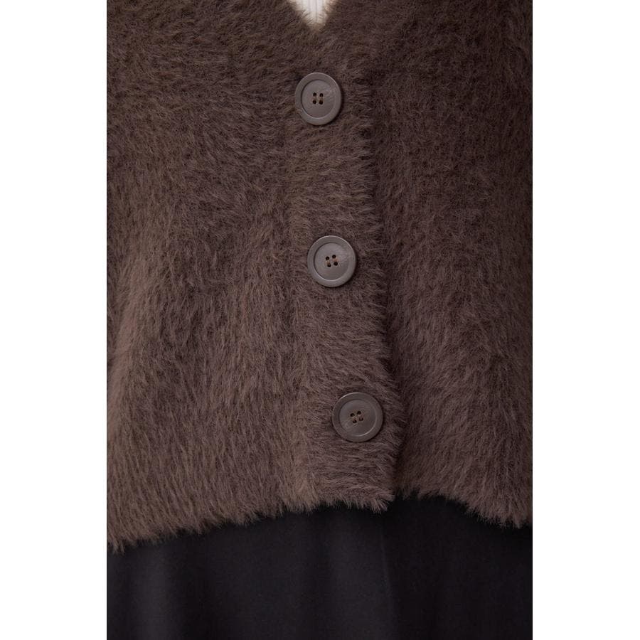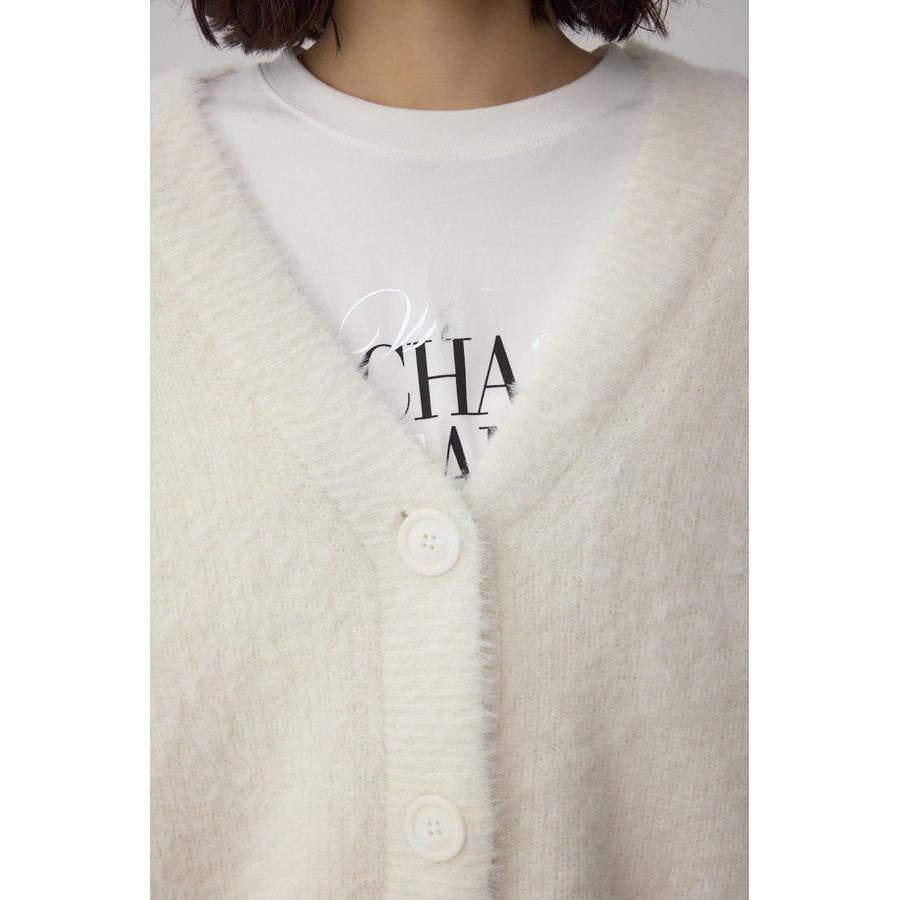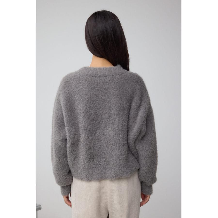 伸縮性のある柔らかなモヘアライクなシャギーニットが女性らしさを演出してくれるニットカーディガンです。