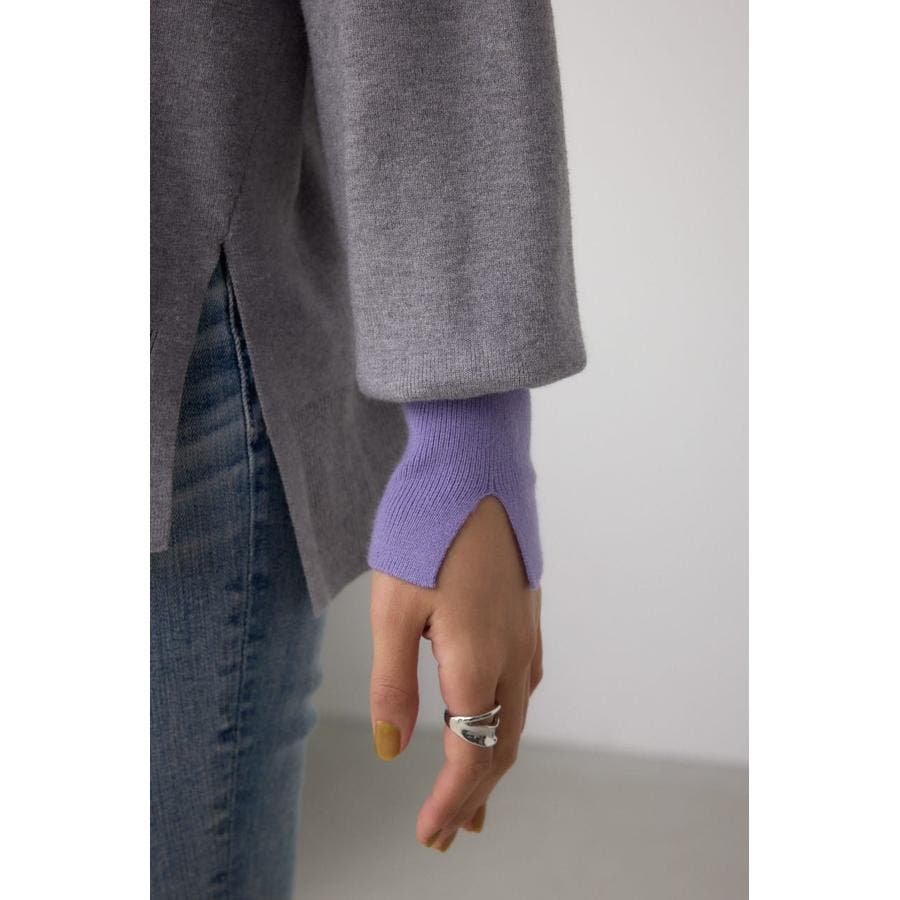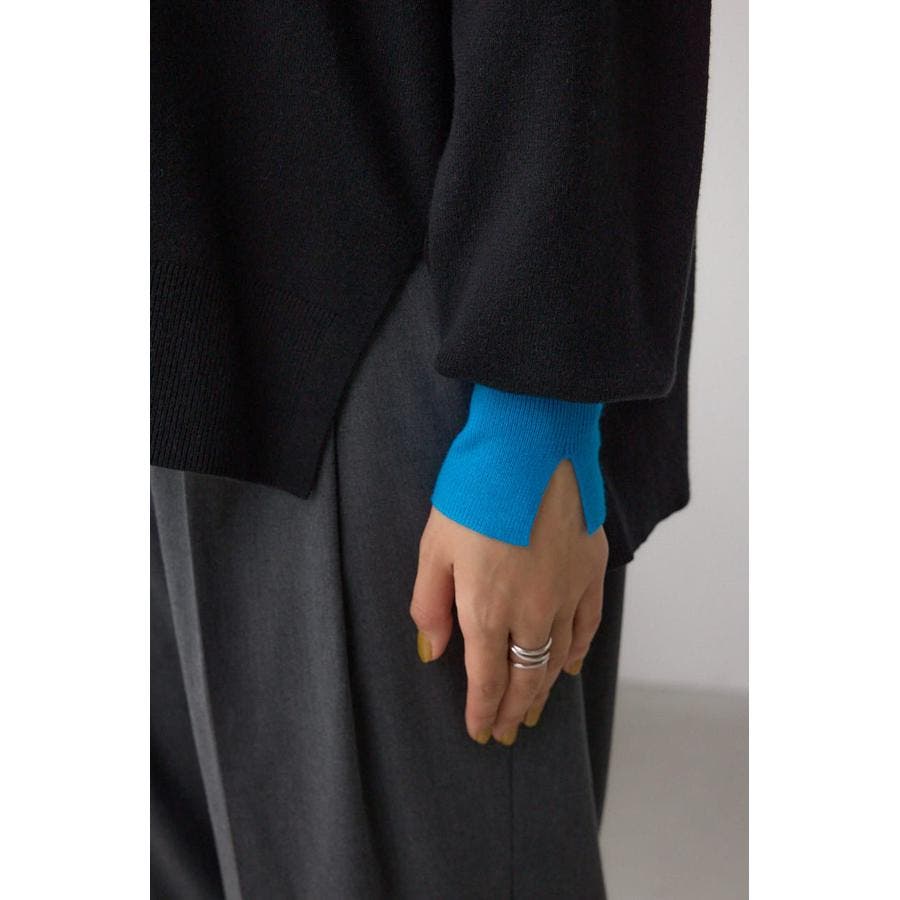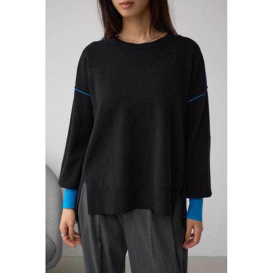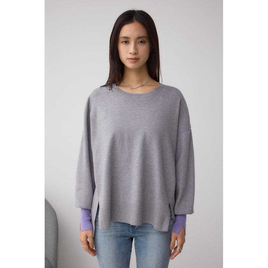 バイカラーとカフスデザインがポイントのニットプルオーバー。