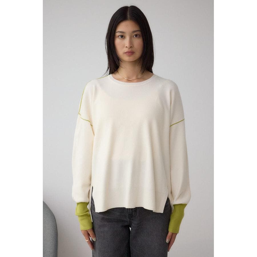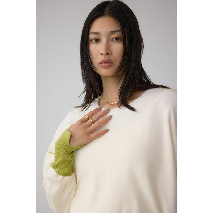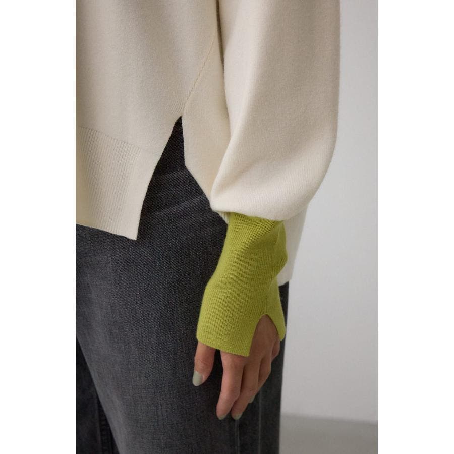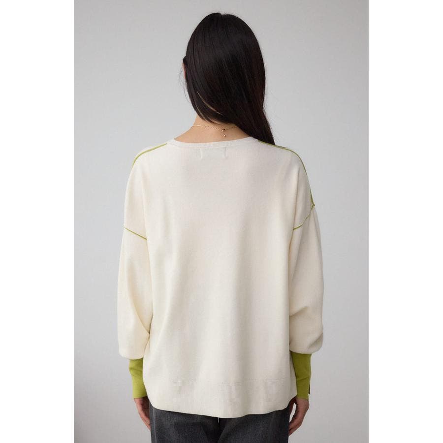 バイカラーとカフスデザインがポイントのニットプルオーバー。