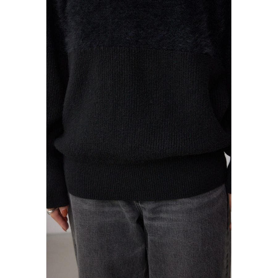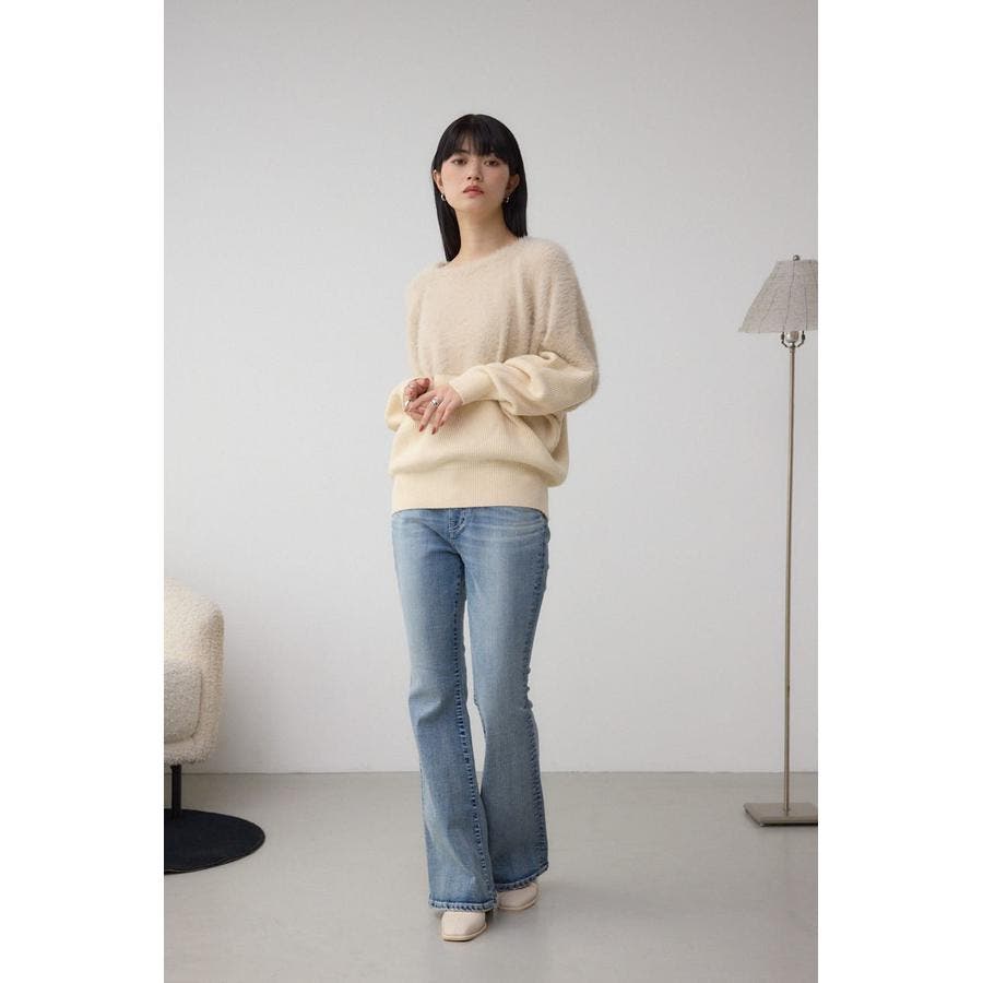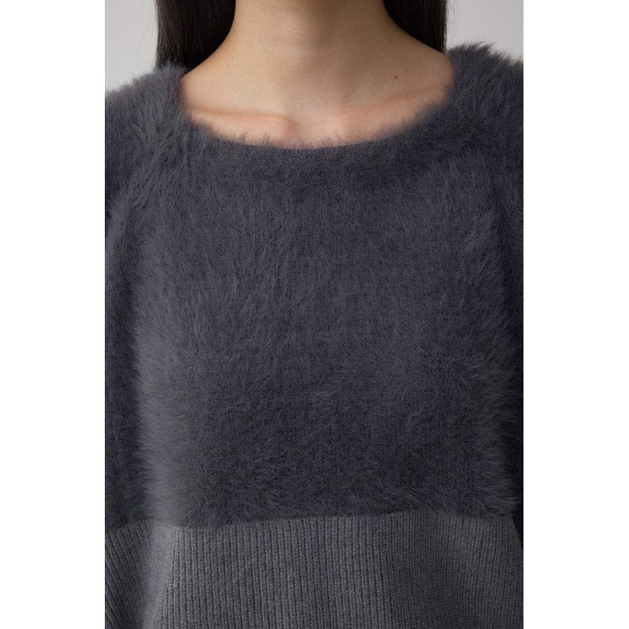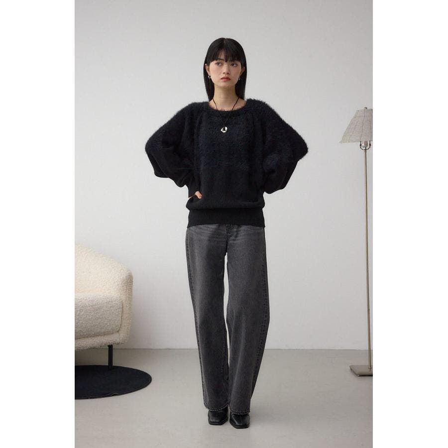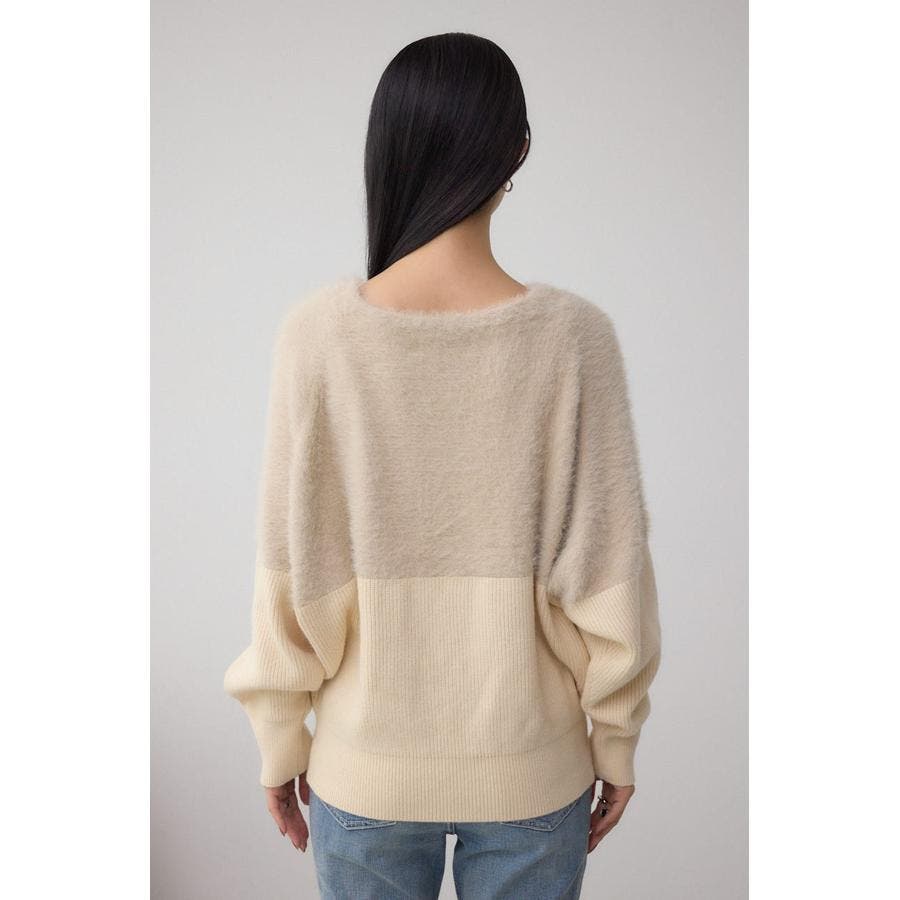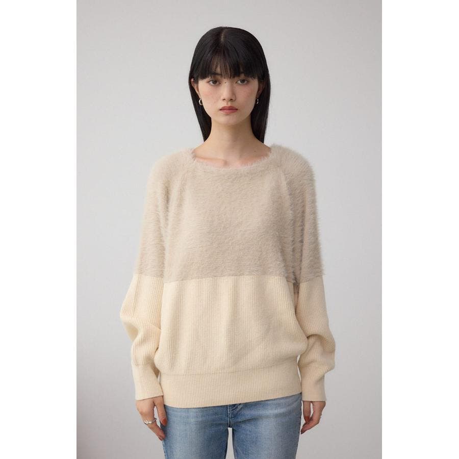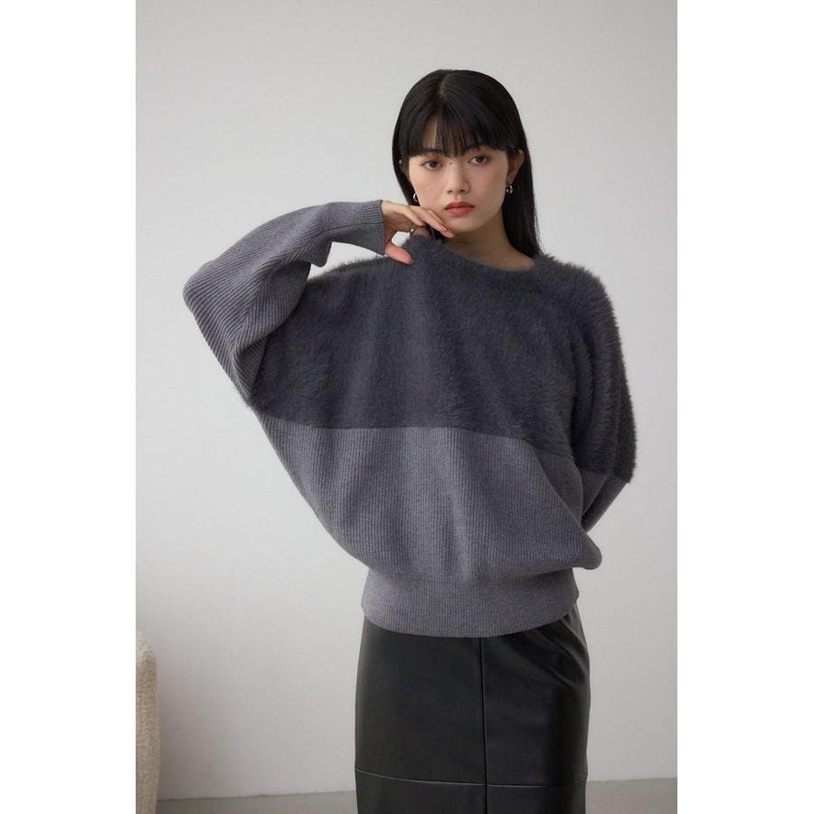 シャギーニットとソリット糸を切り替えた、こなれた印象のドルマンニットです。