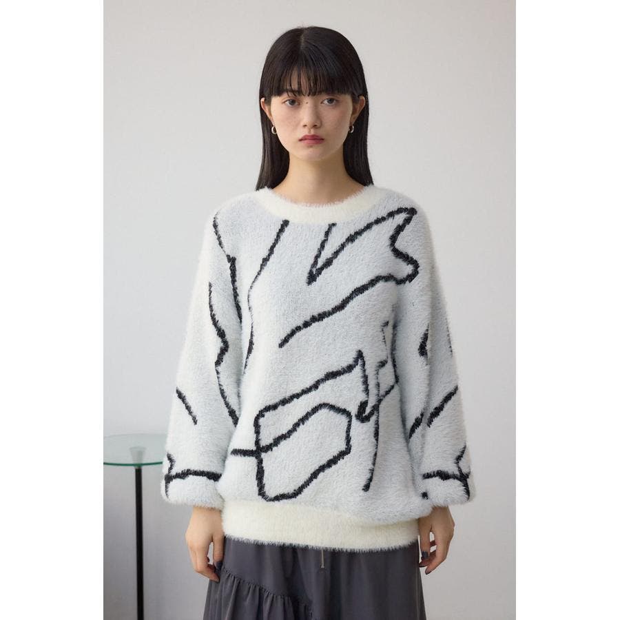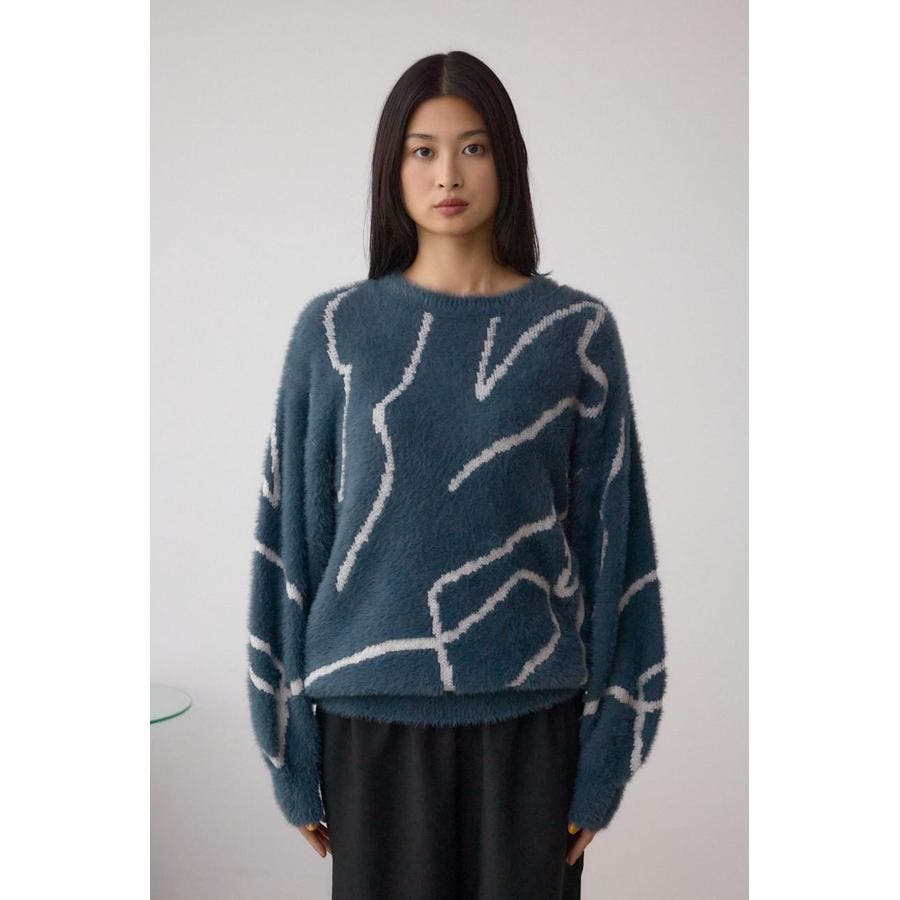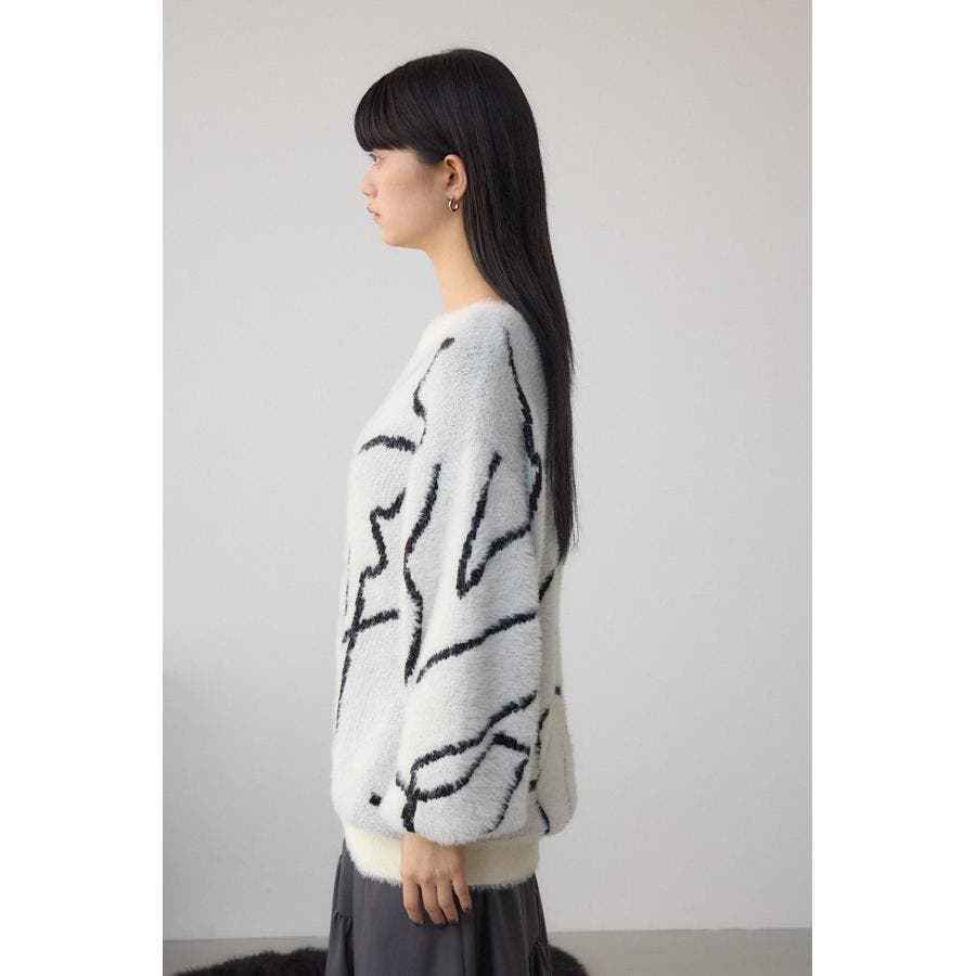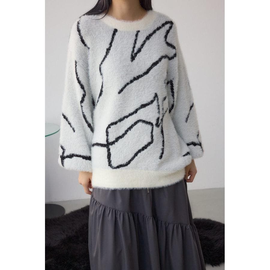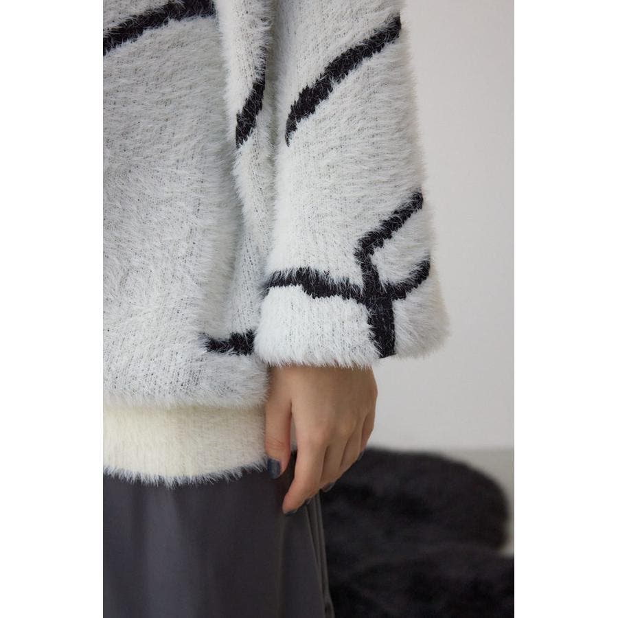 滑らかな肌触りのシャギーニットにニュアンスライン柄をあしらったニット。