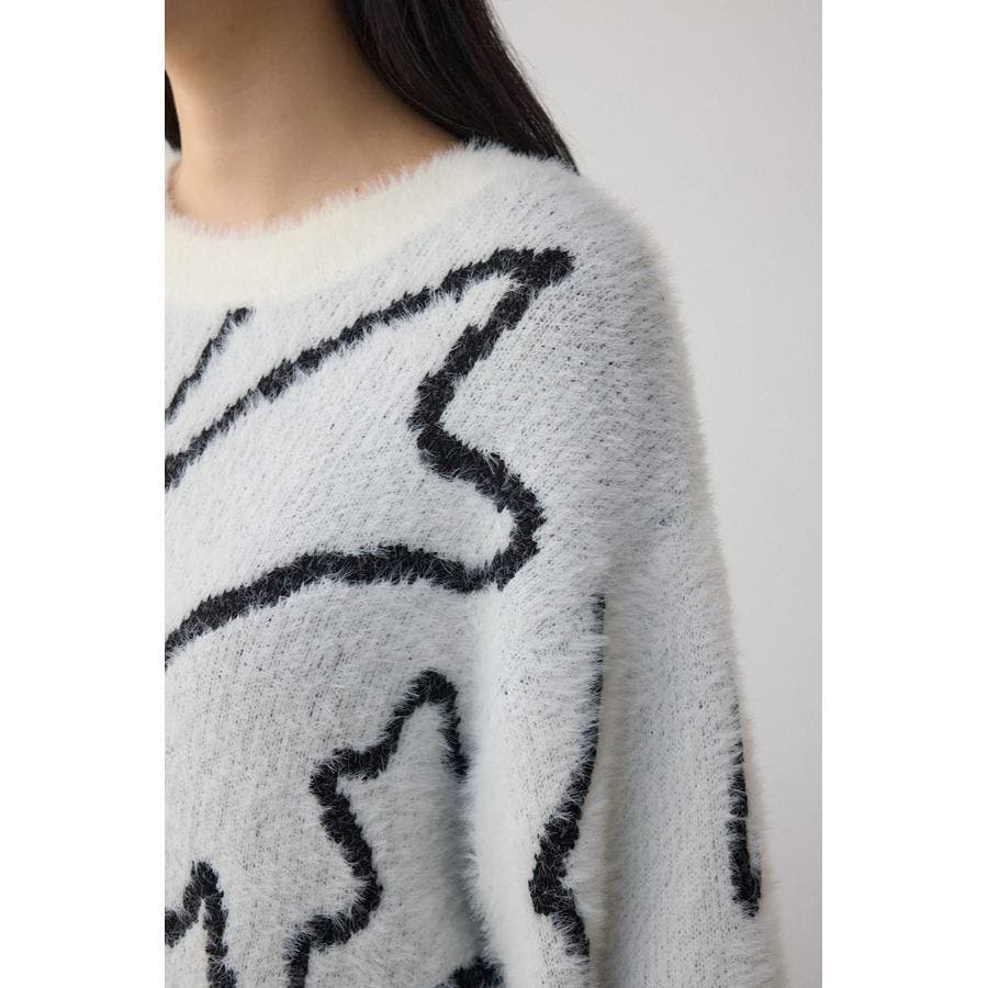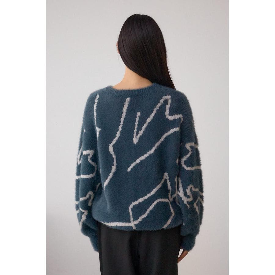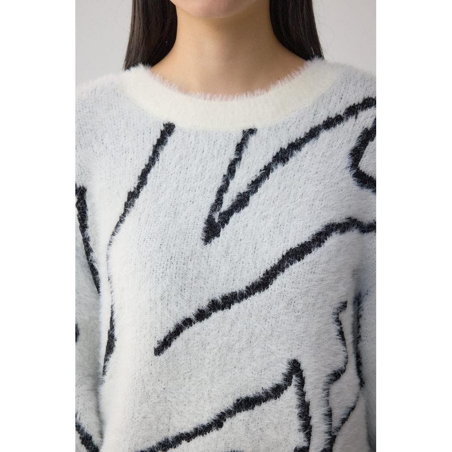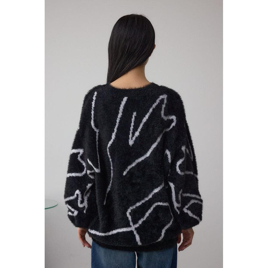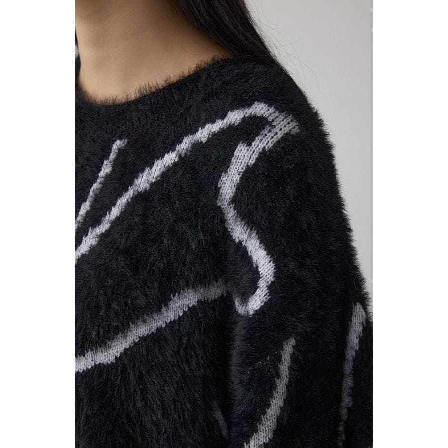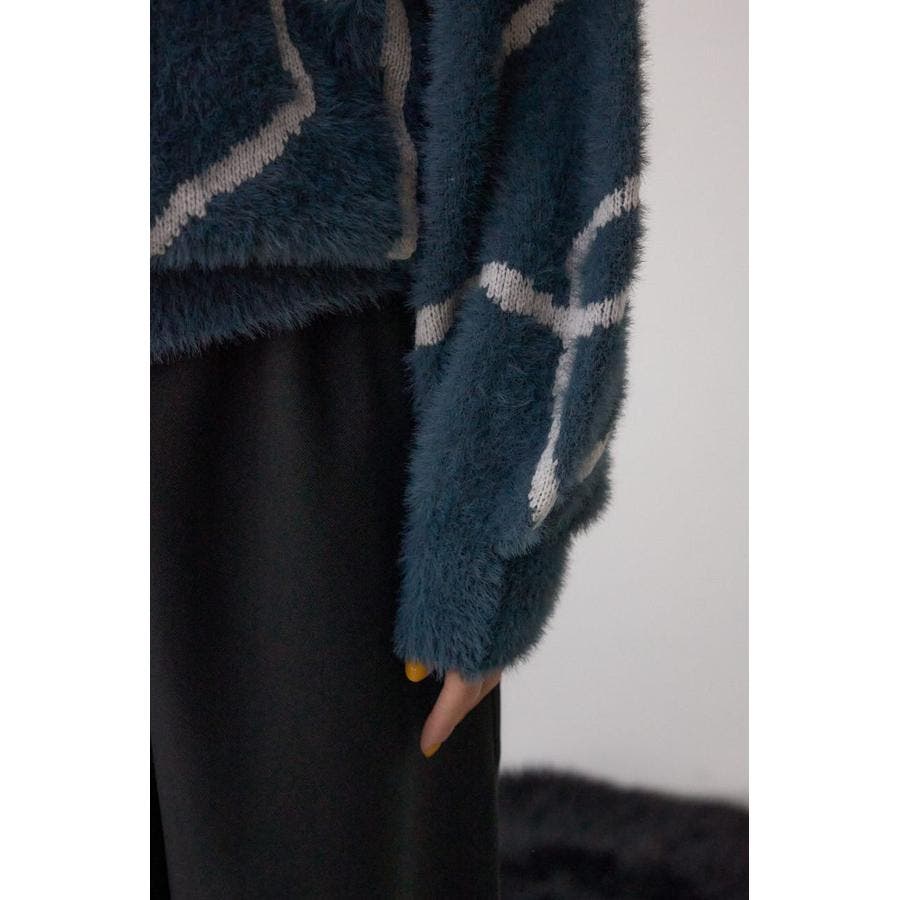 滑らかな肌触りのシャギーニットにニュアンスライン柄をあしらったニット。