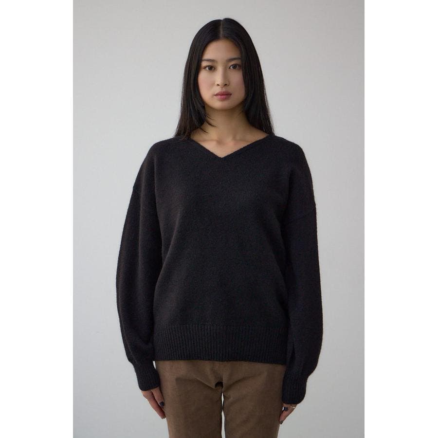 鮮やかなカラーが目を惹く、シンプルながら女性らしい抜け感を演出するVネックニットプルオーバー。