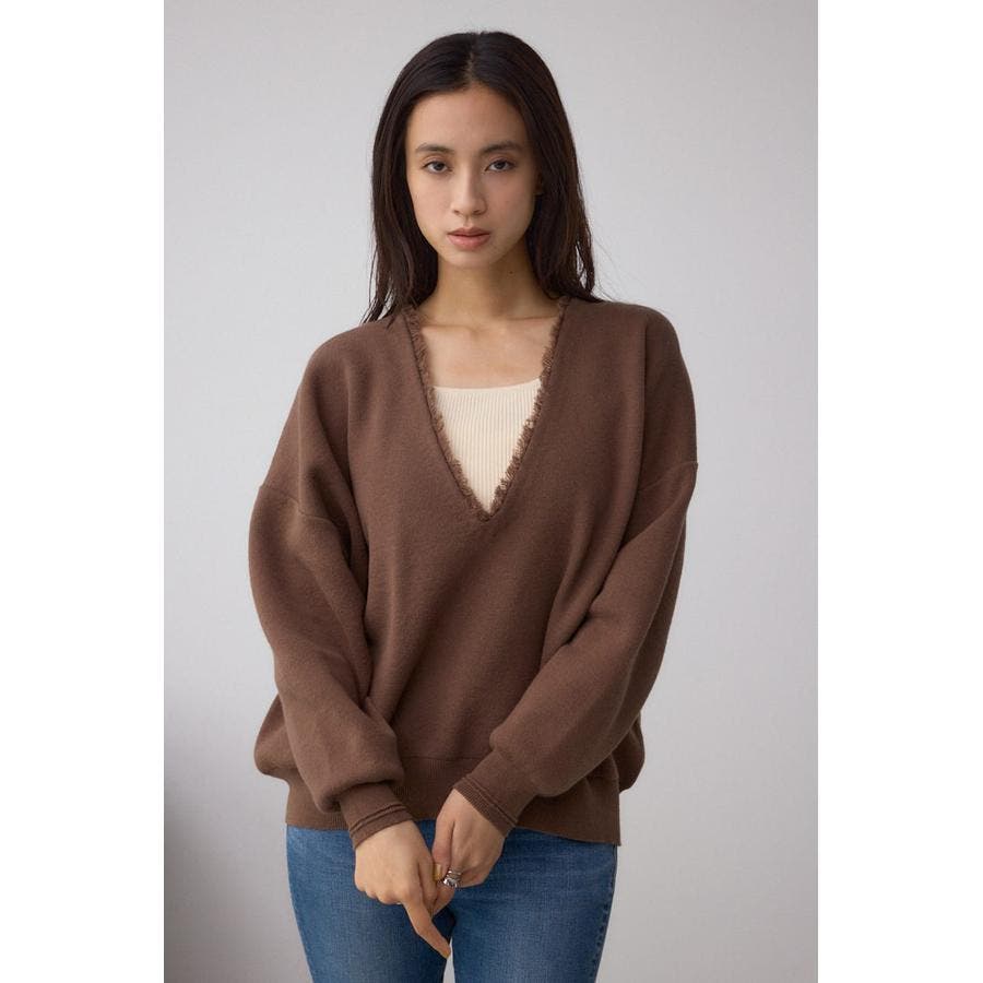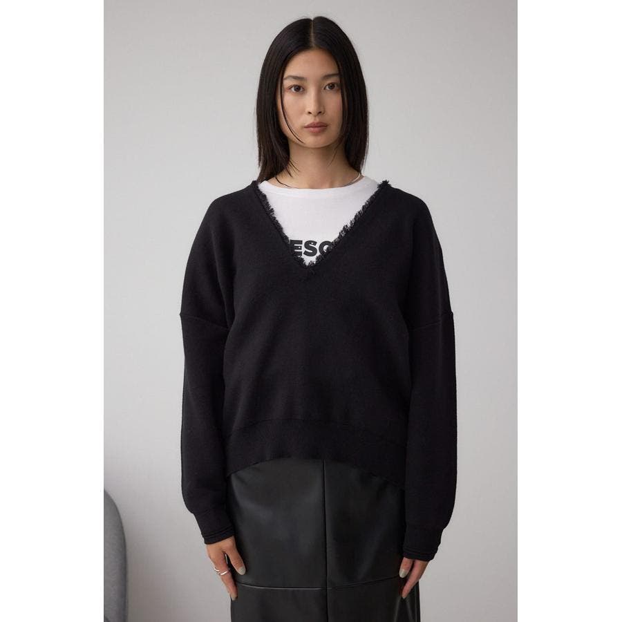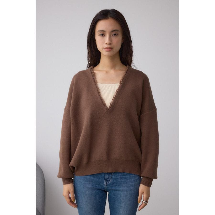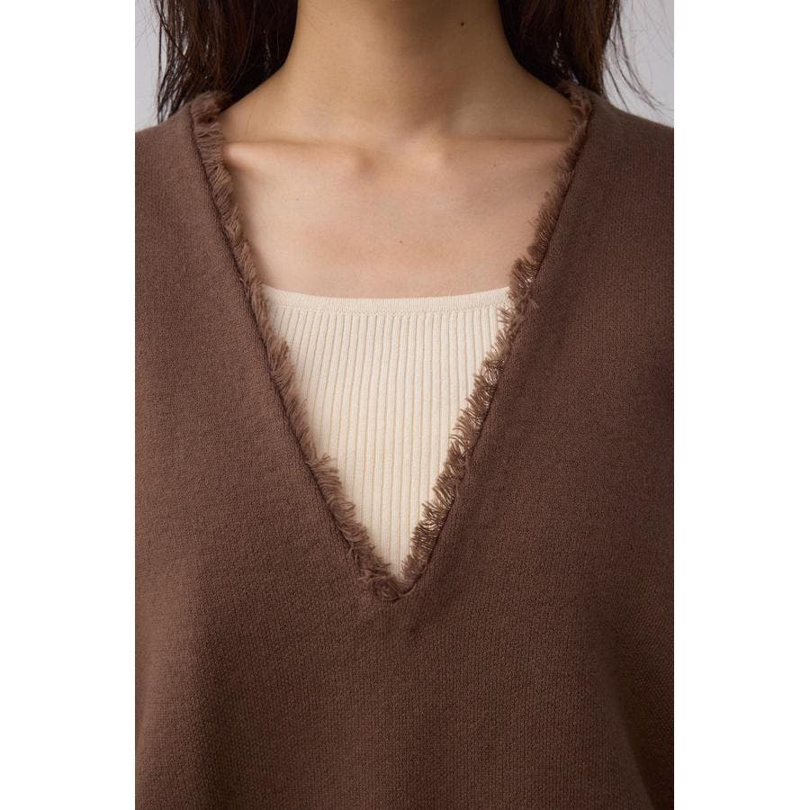 Vネックフリンジスウェッターニット