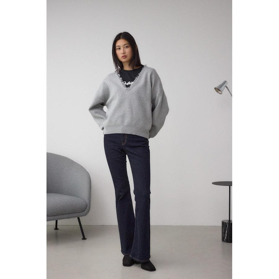 カジュアルな素材感に深めのVネックを入れたプルオーバー。