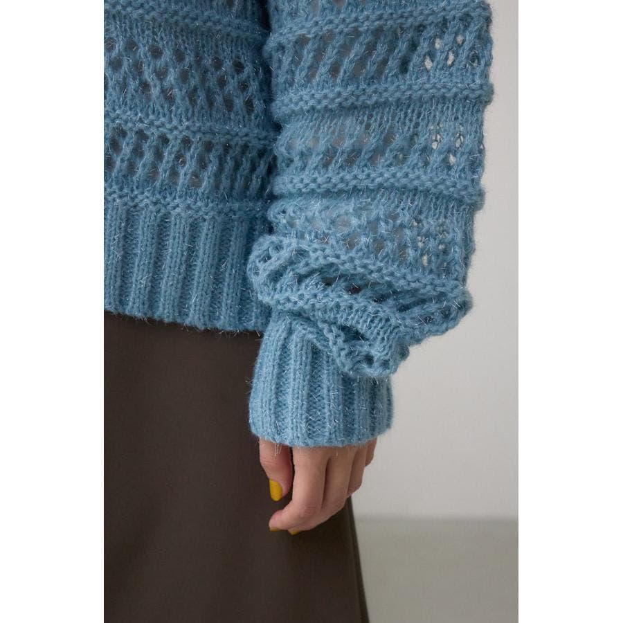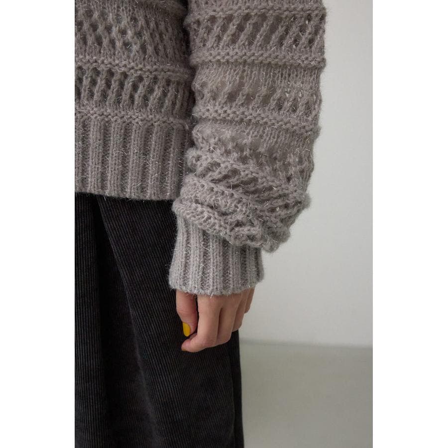 【ニット】クリスタルのようにキラキラした光沢のあるシャギー糸を使用。