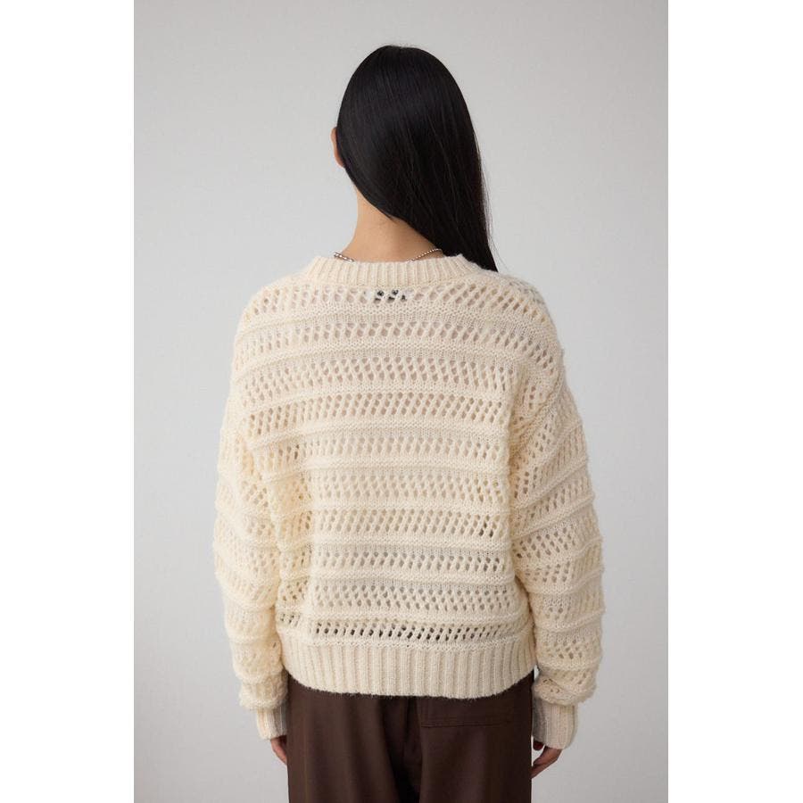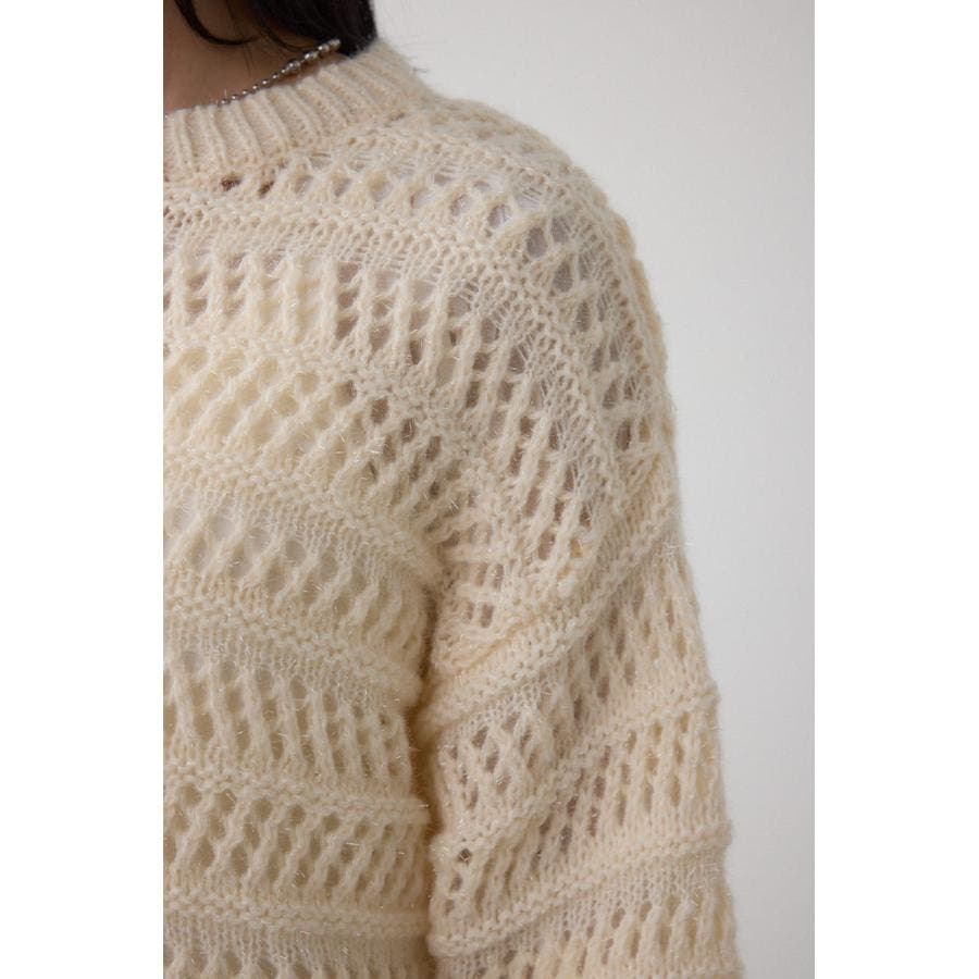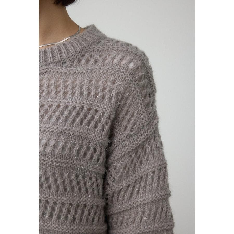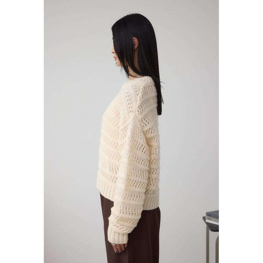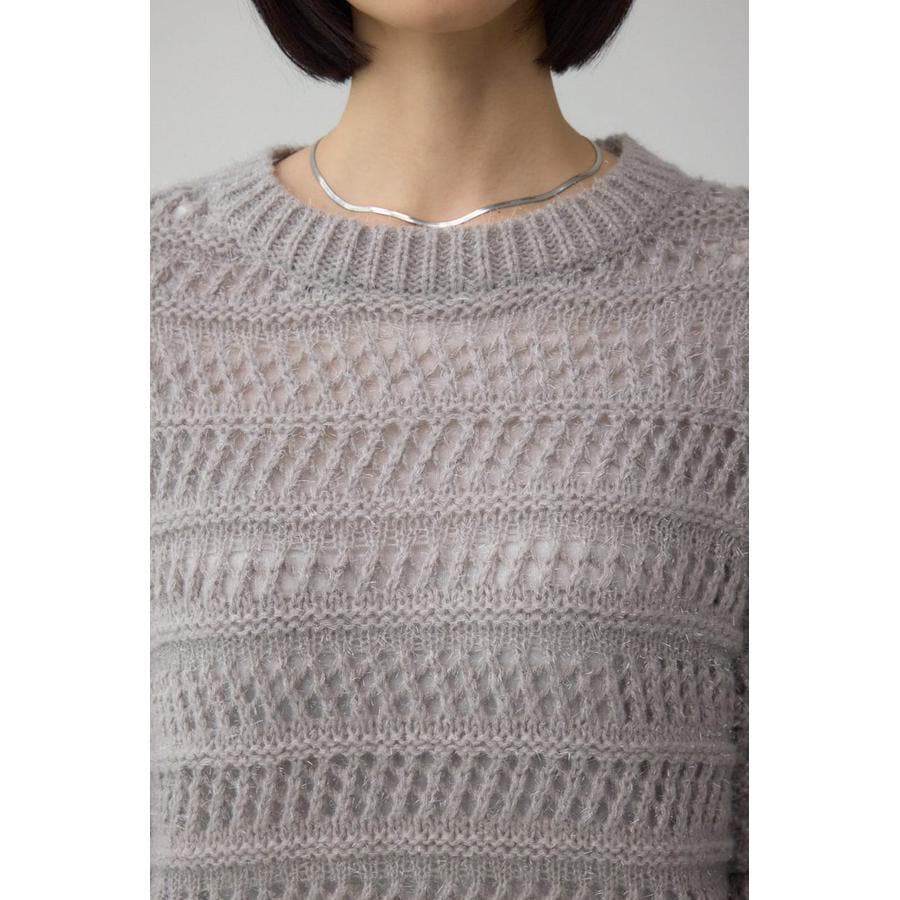 メッシュ柄のボーダー切り替えが印象的なニットトップスです。