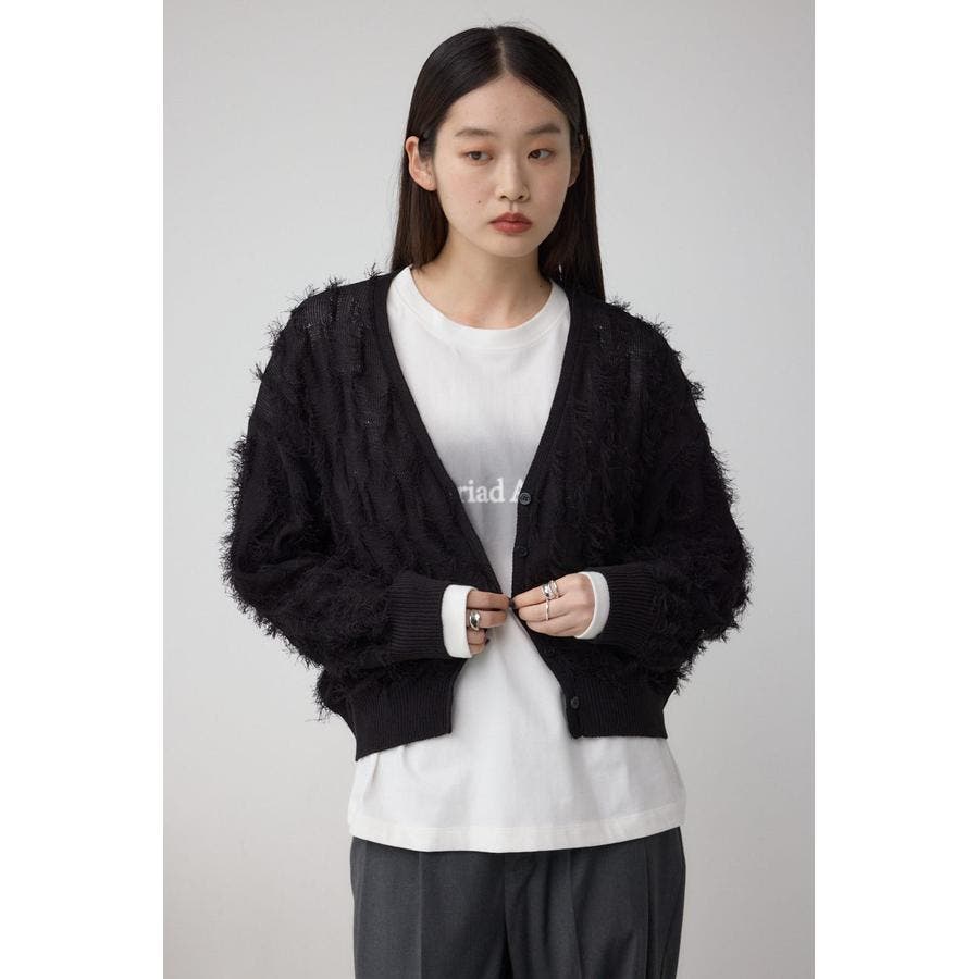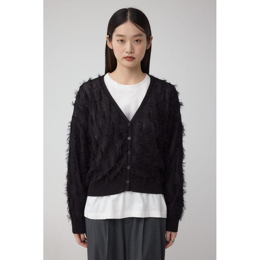 表面感のあるフリンジデザインが特徴的なカーデイガン。