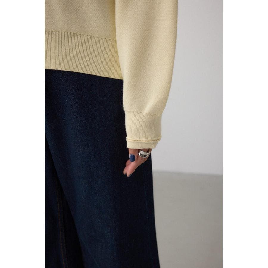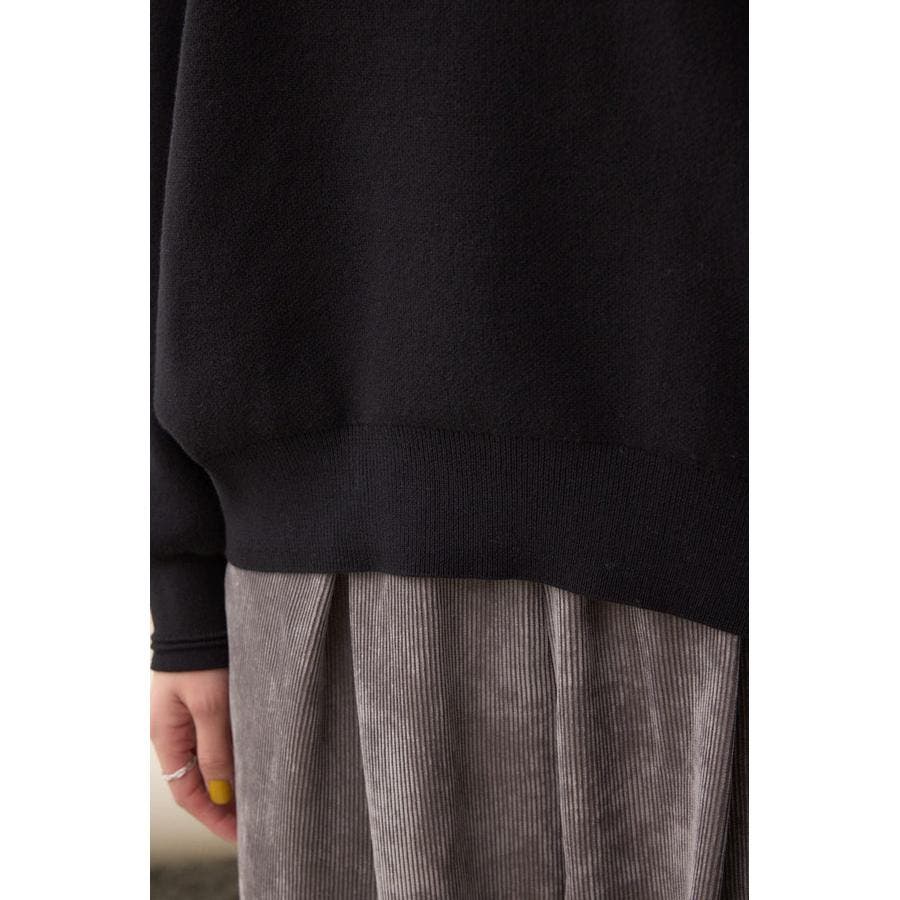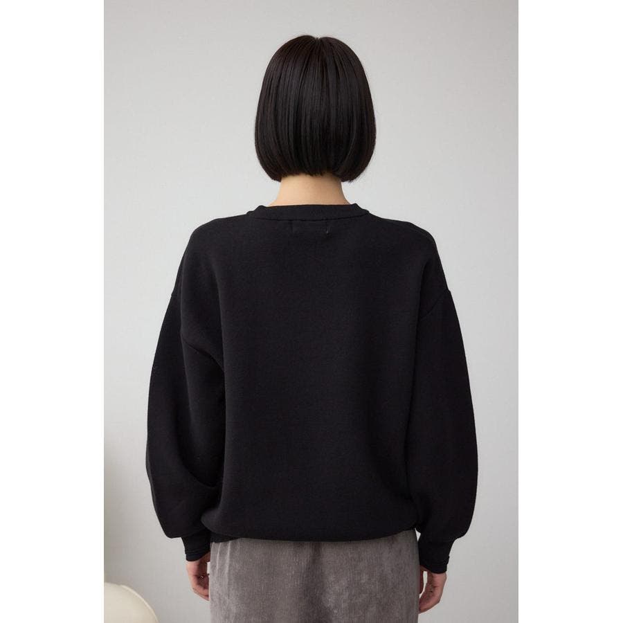 スウェット感覚で着こなせるデザインで、カジュアルなデニムからフェミニンなスカートまで、幅広いボトムスと合わせやすい万能アイテムです。