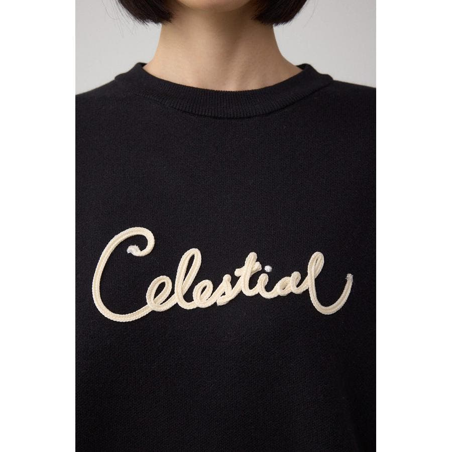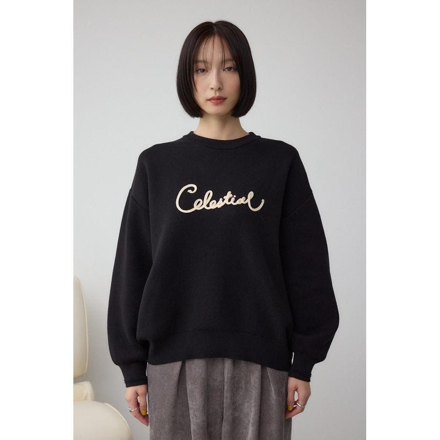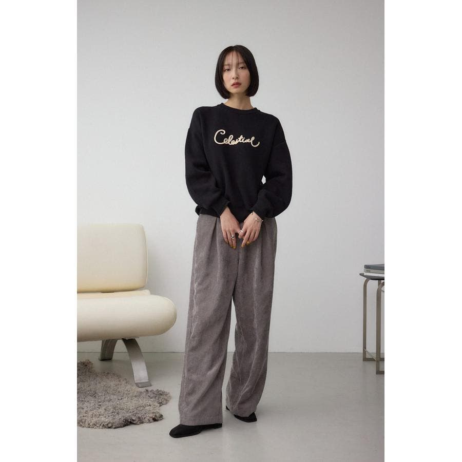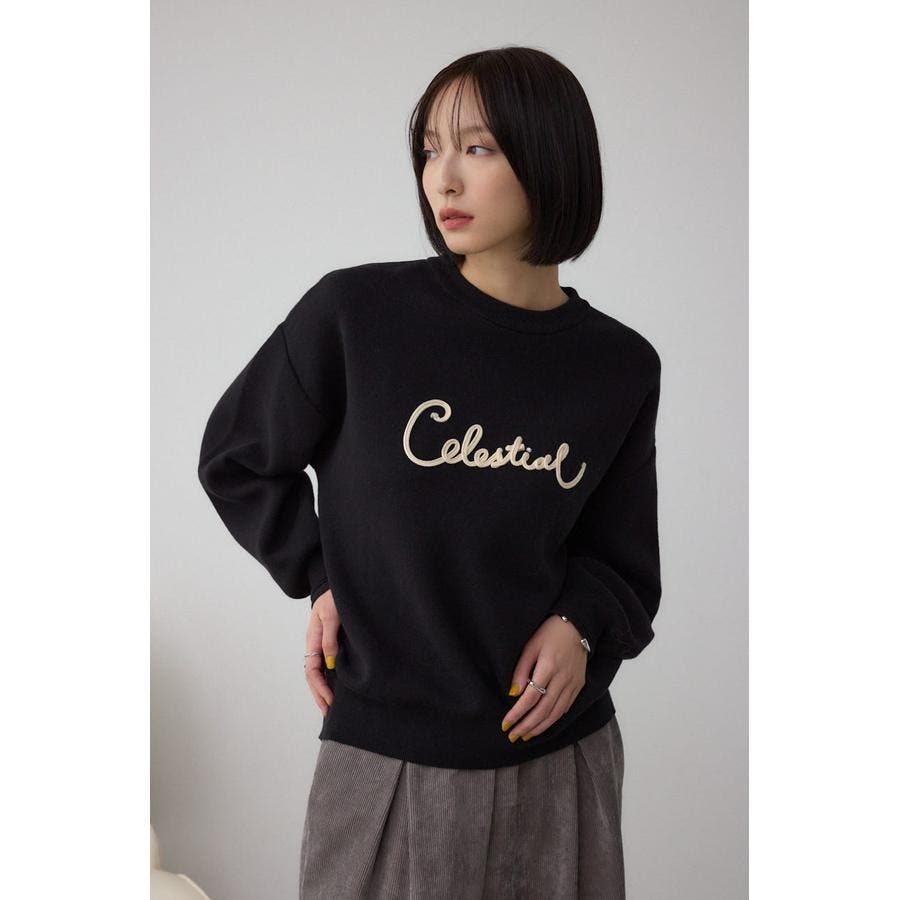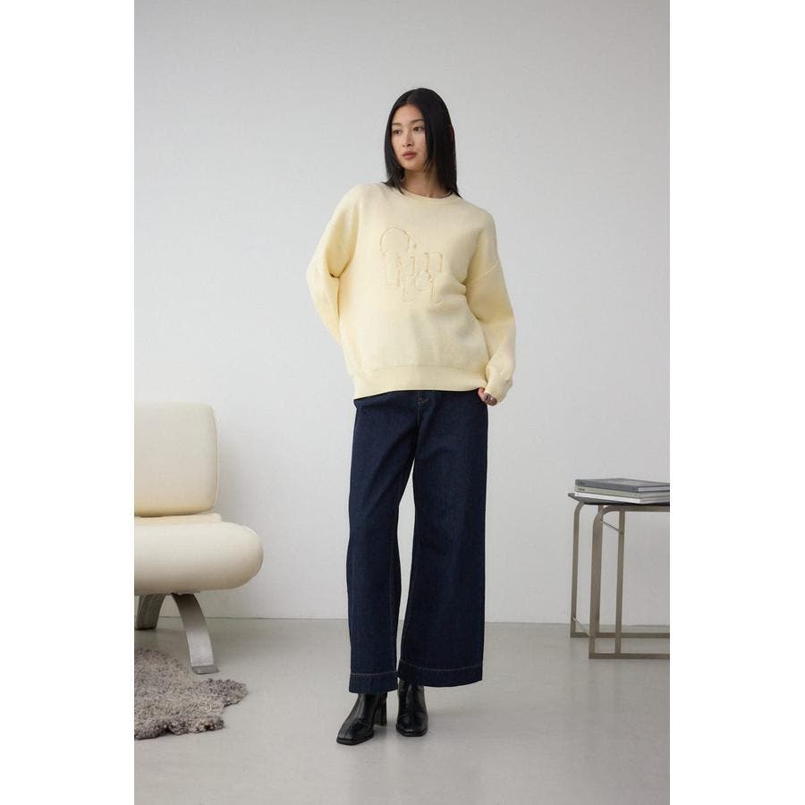 刺繍のアクセントが効いた、スウェットライクに着こなせるニットトップスです。
