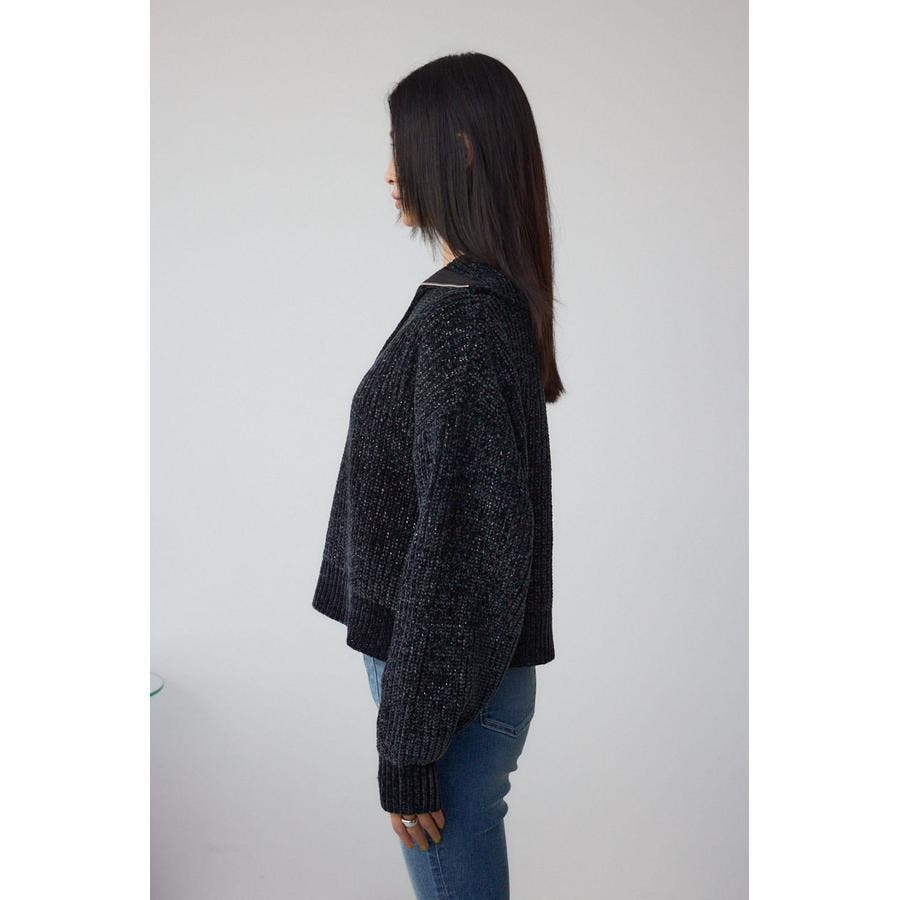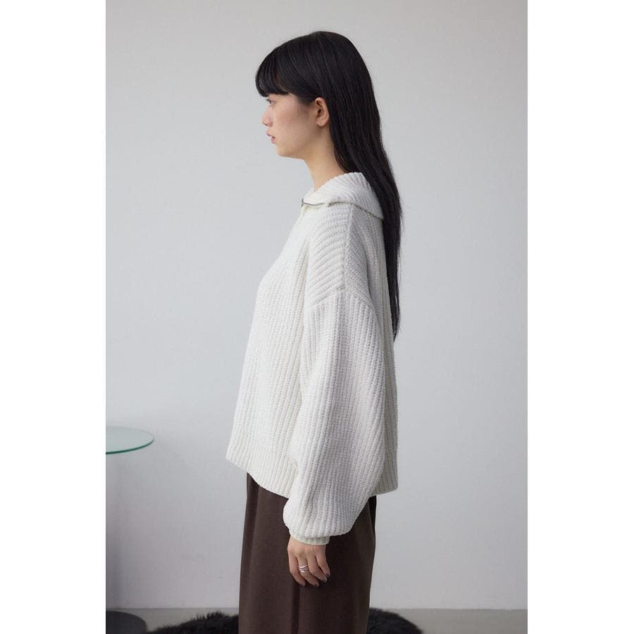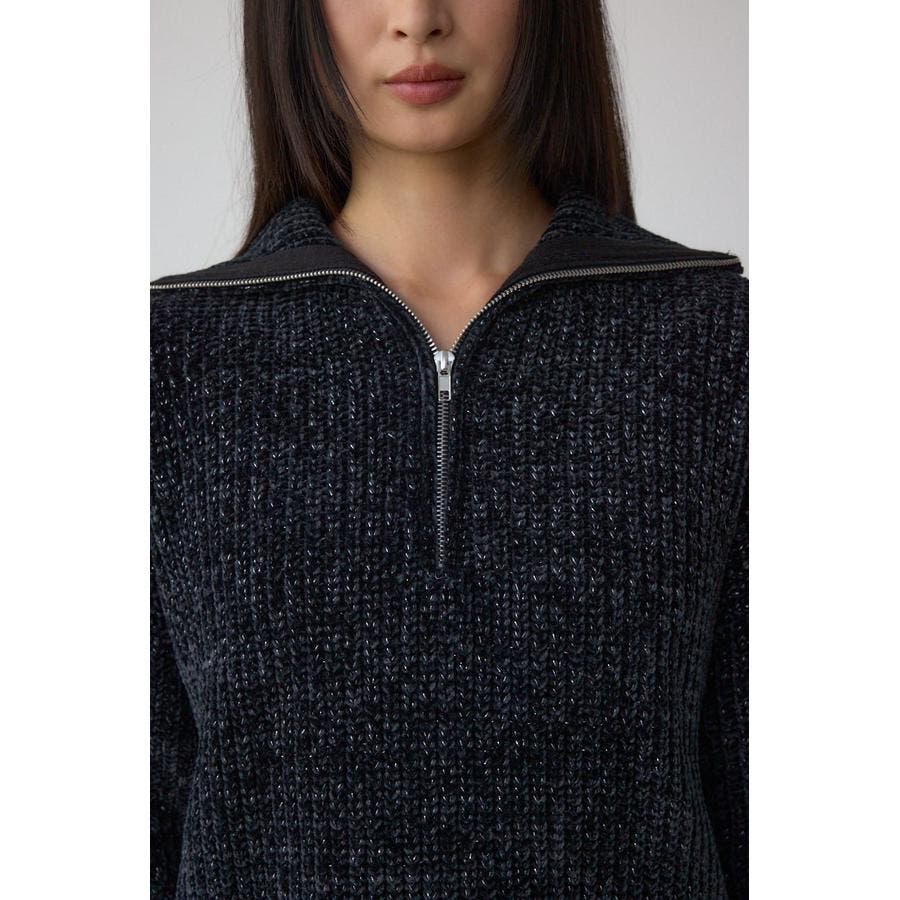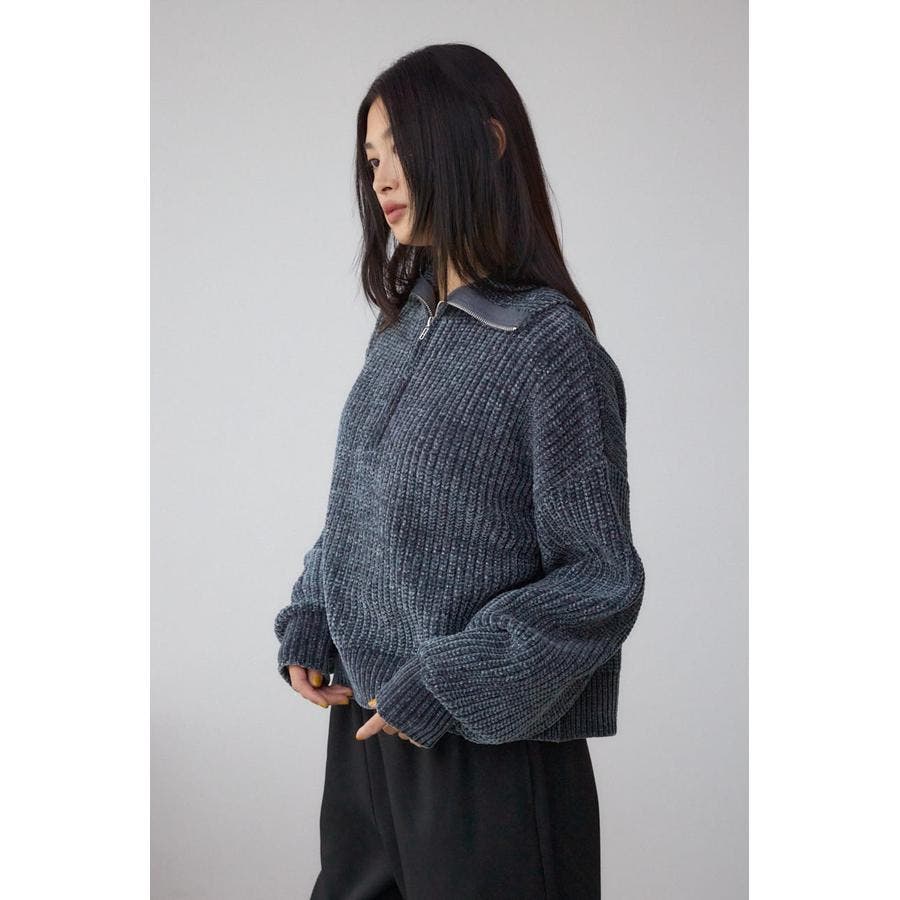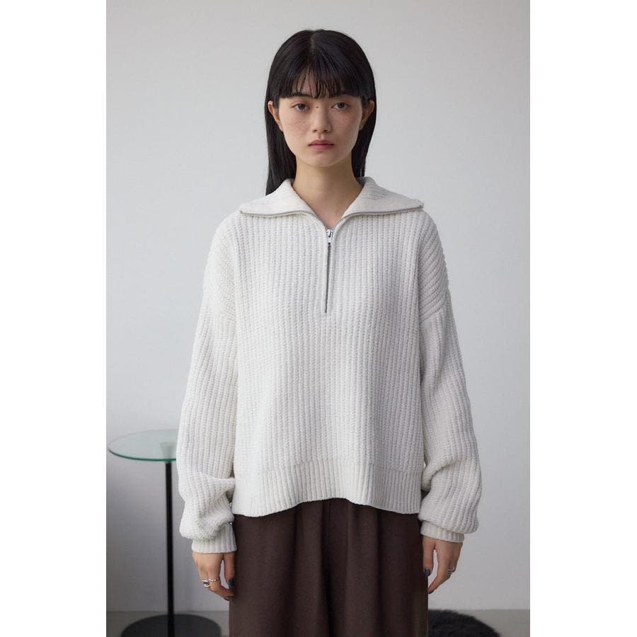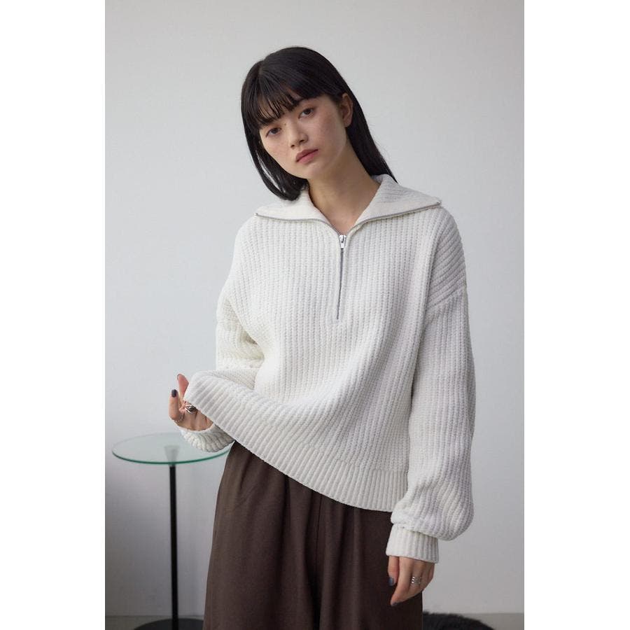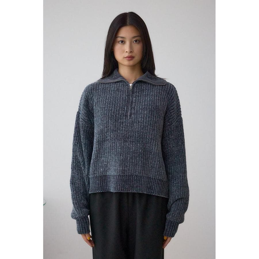 トレンド感のあるベロアタッチのモール素材で、こなれ感を演出するジップアップトップスです。